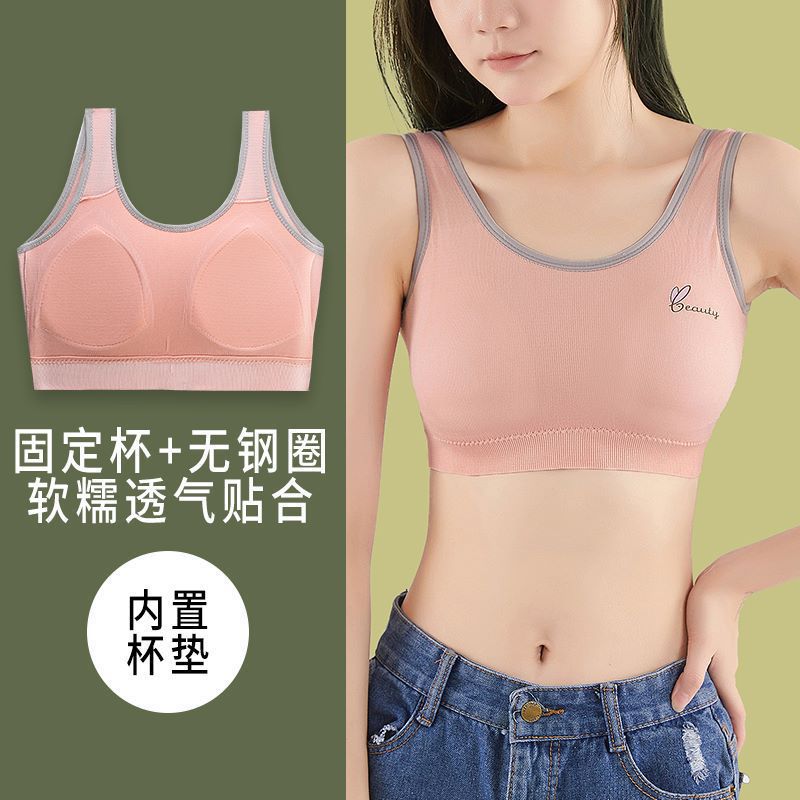 纯棉少女内衣一体式运动背心发育期高初中学生薄款全棉无钢圈文胸