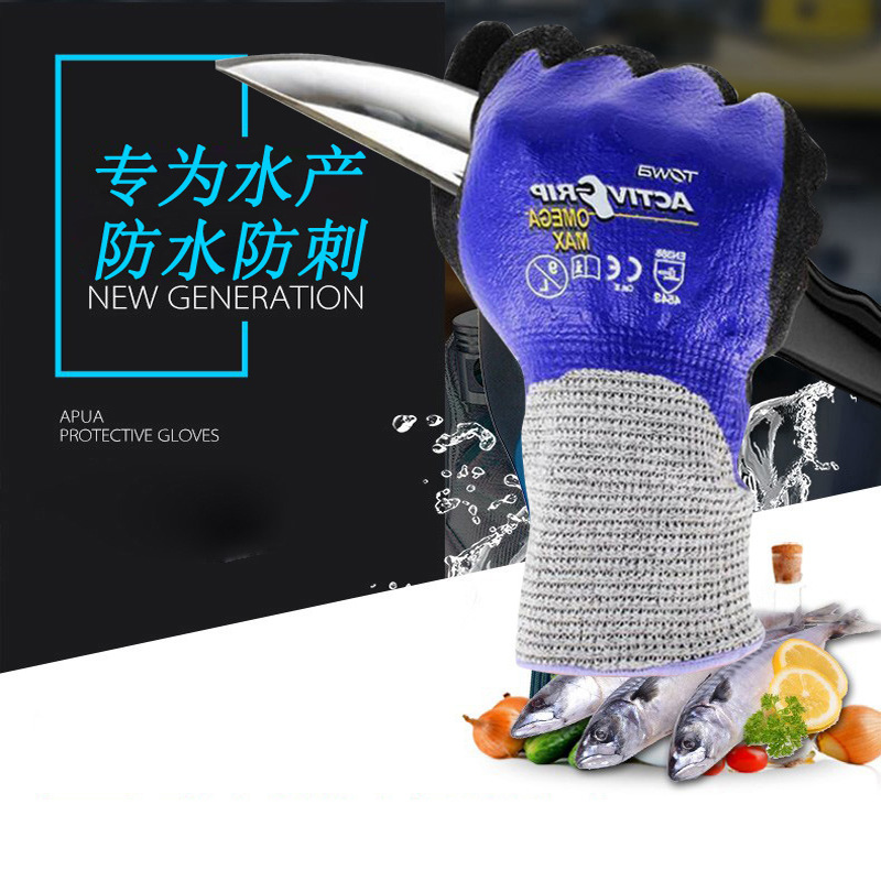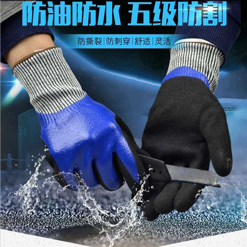 厂家现货5级防切割加厚耐磨劳保手套防刺滑加工杀鱼抓螃蟹小龙虾