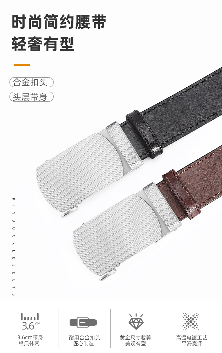 网络新款真皮皮带男士简约百搭商务腰带合金自动扣西裤带厂家批发
