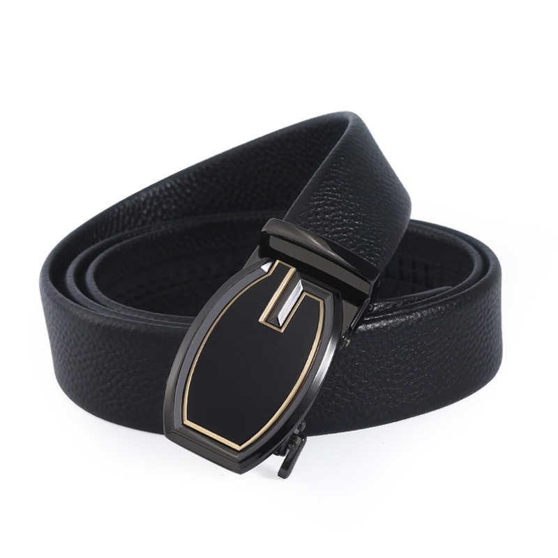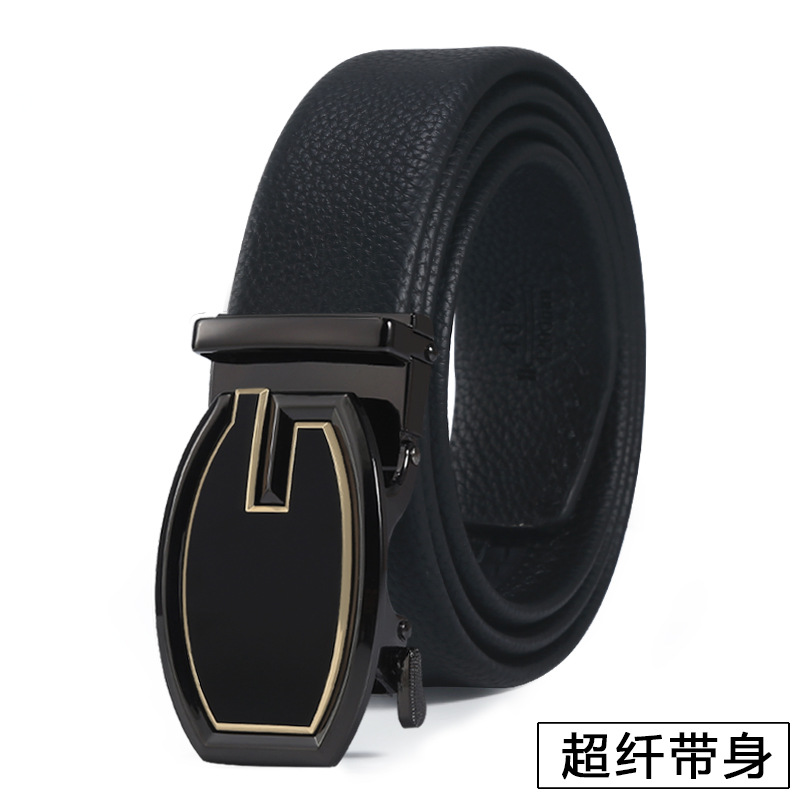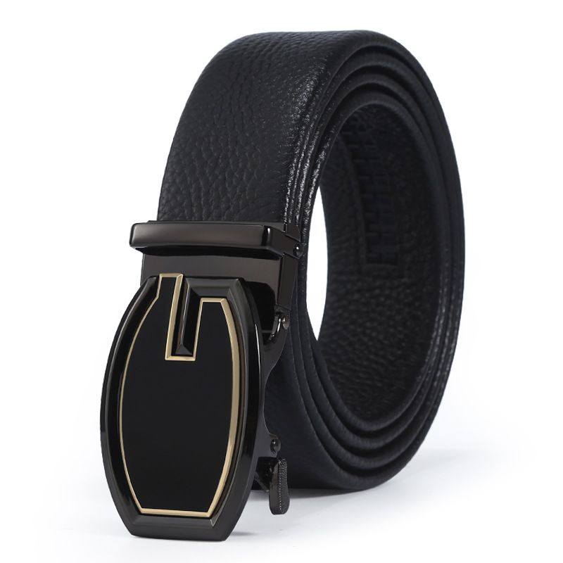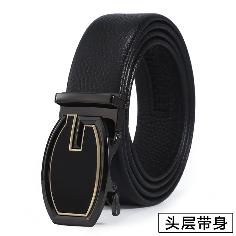 新时尚字母扣皮带男士休闲百搭自动扣腰带头层牛皮荔枝纹裤带批发