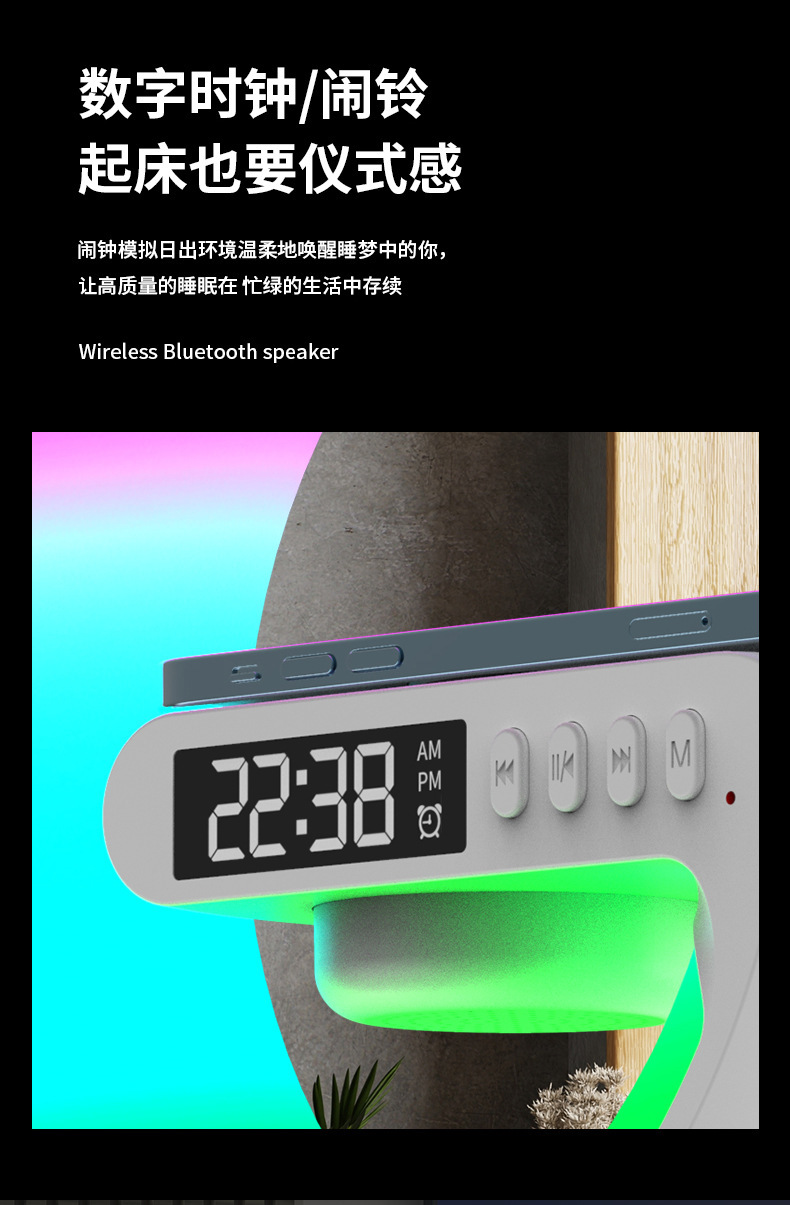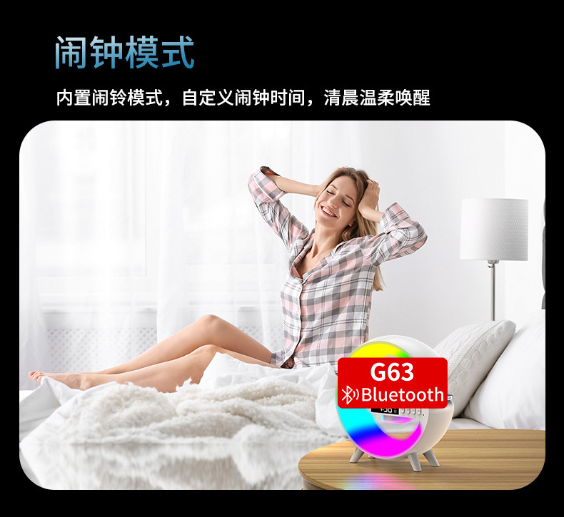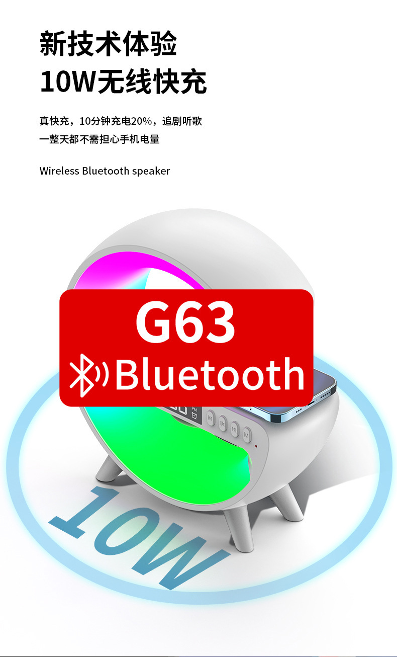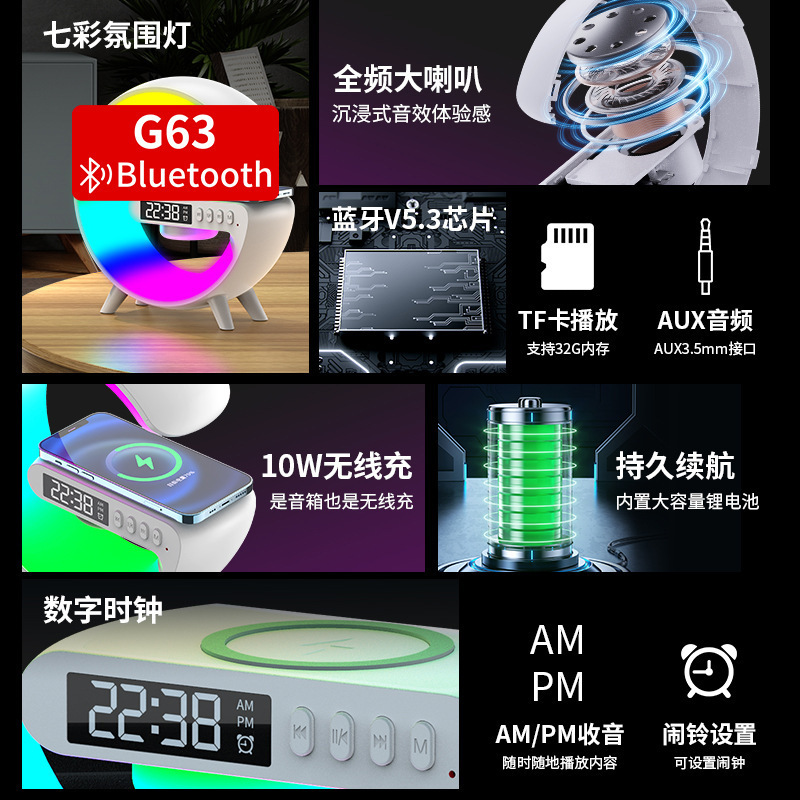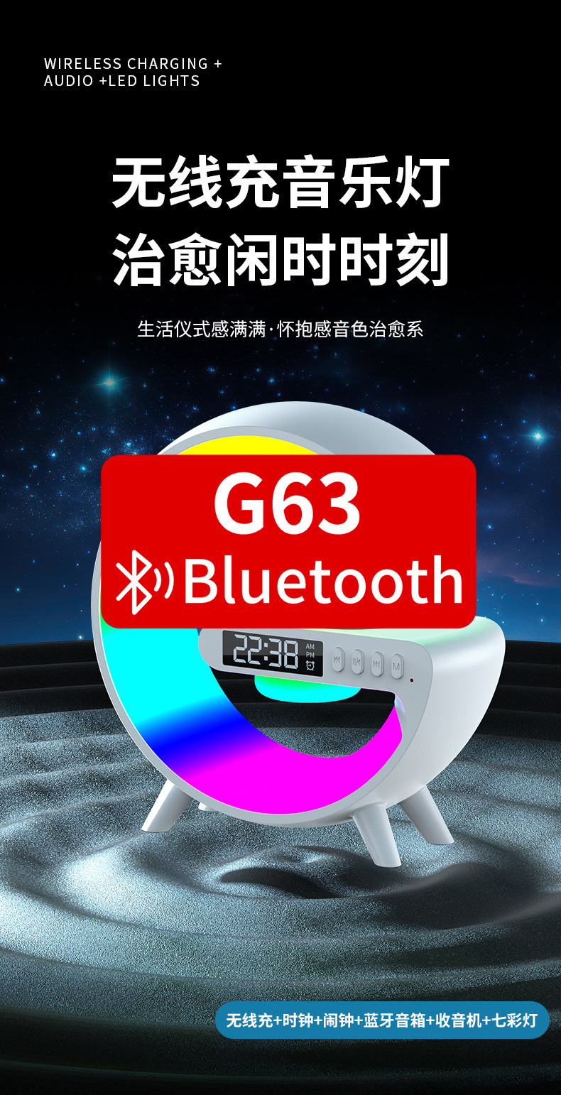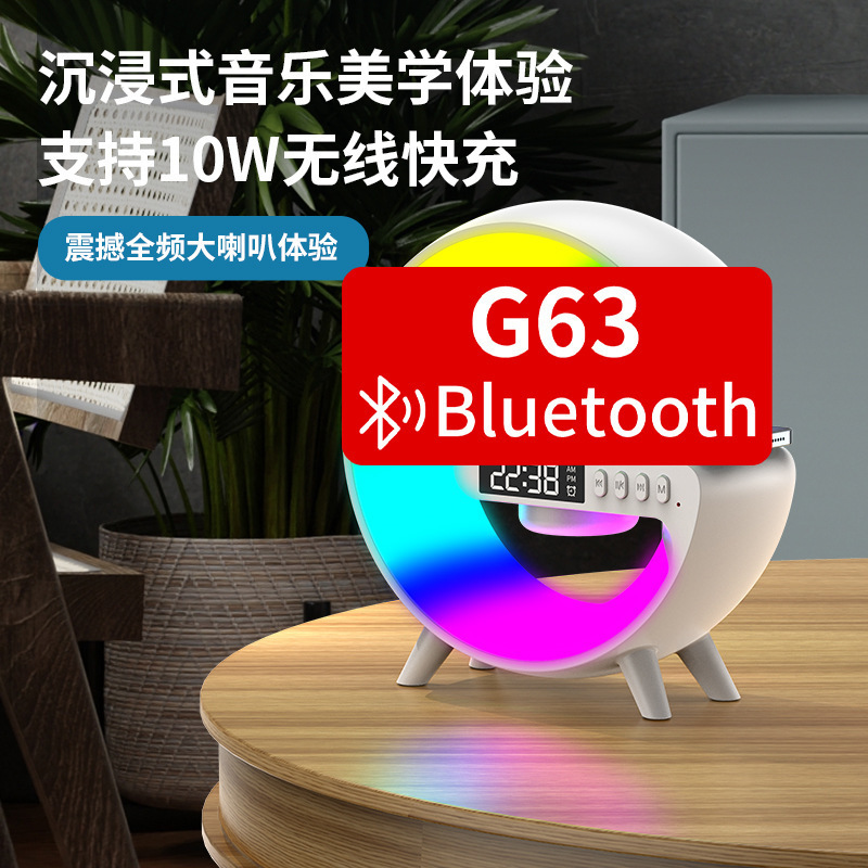 音响蓝牙 爆款小G63炫彩带时钟灯床头无线充蓝牙音箱多功能蓝牙音
