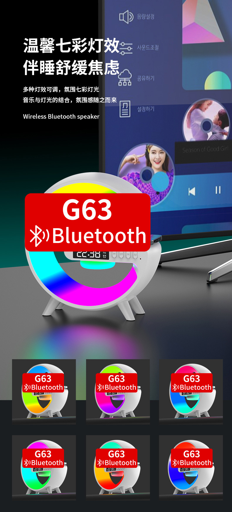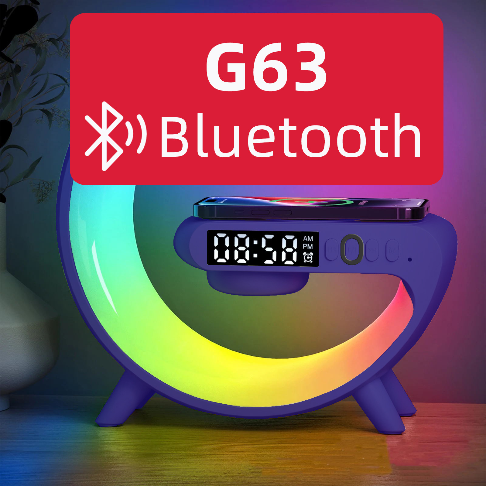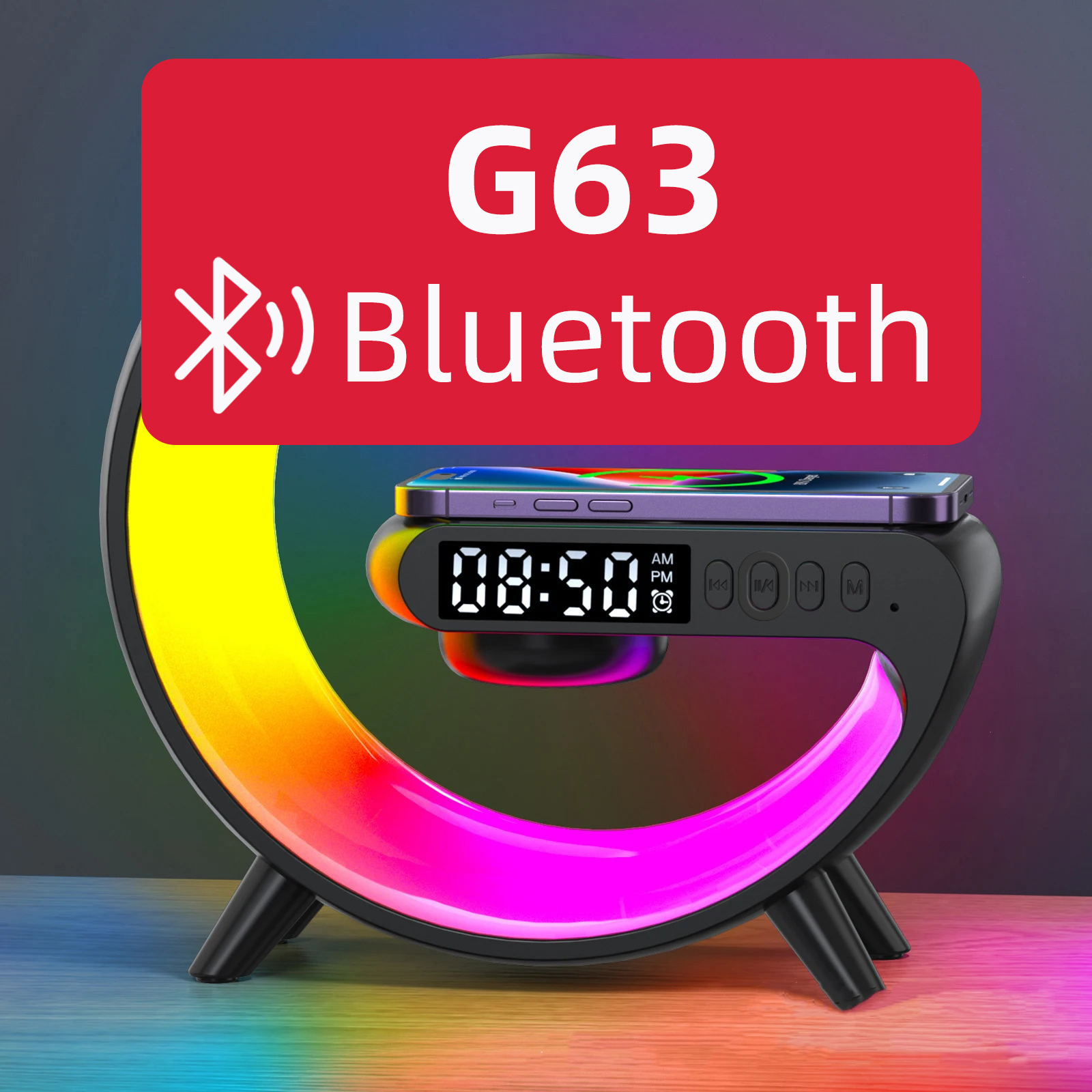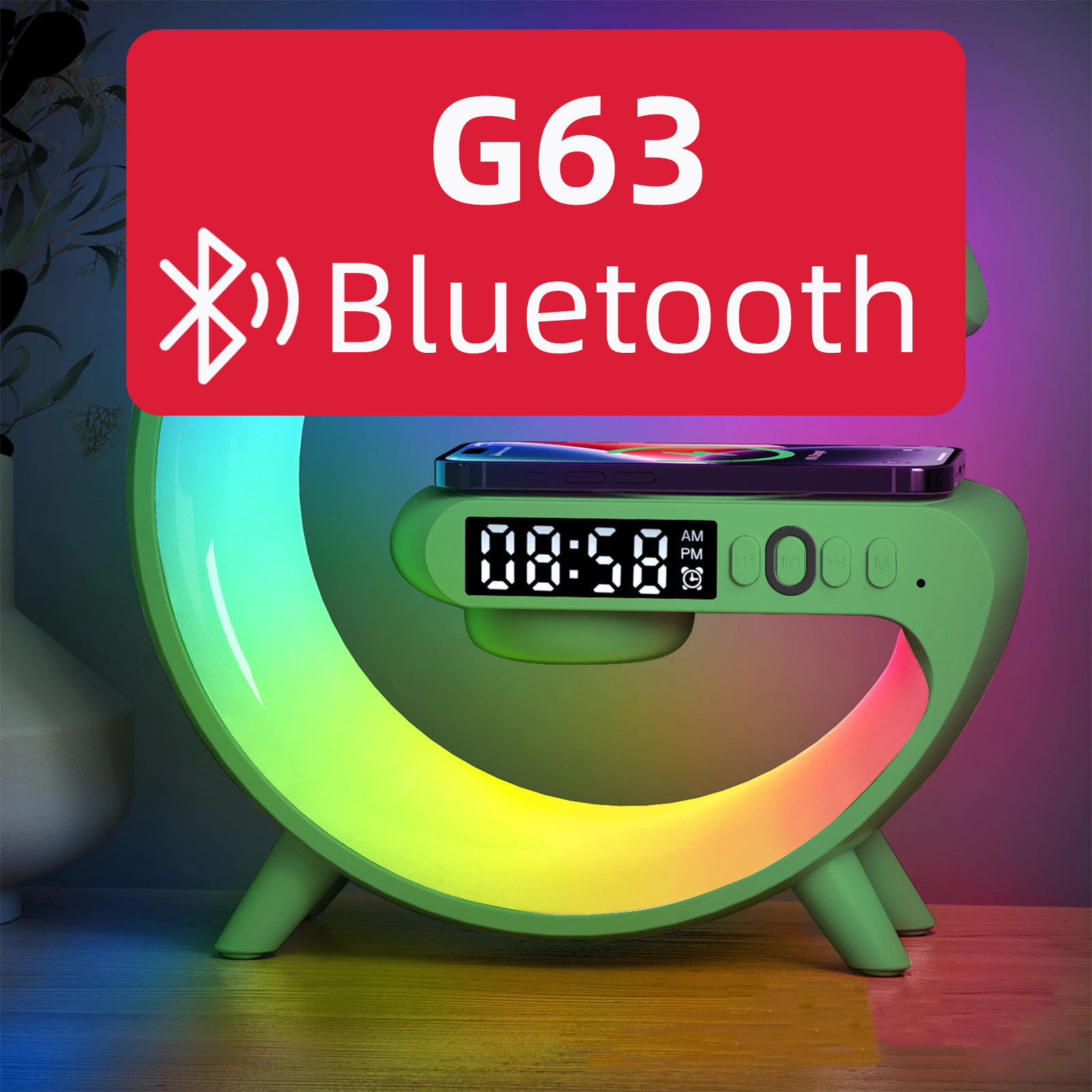 音响蓝牙 爆款小G63炫彩带时钟灯床头无线充蓝牙音箱多功能蓝牙音