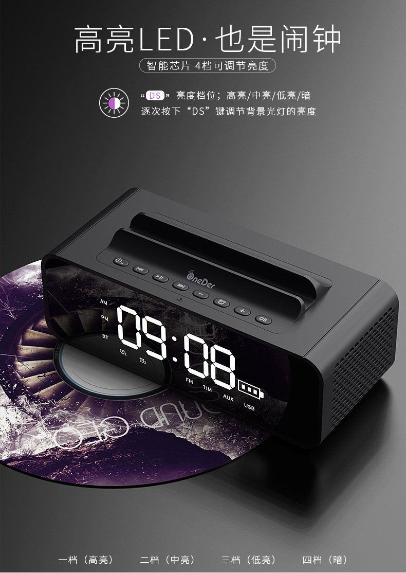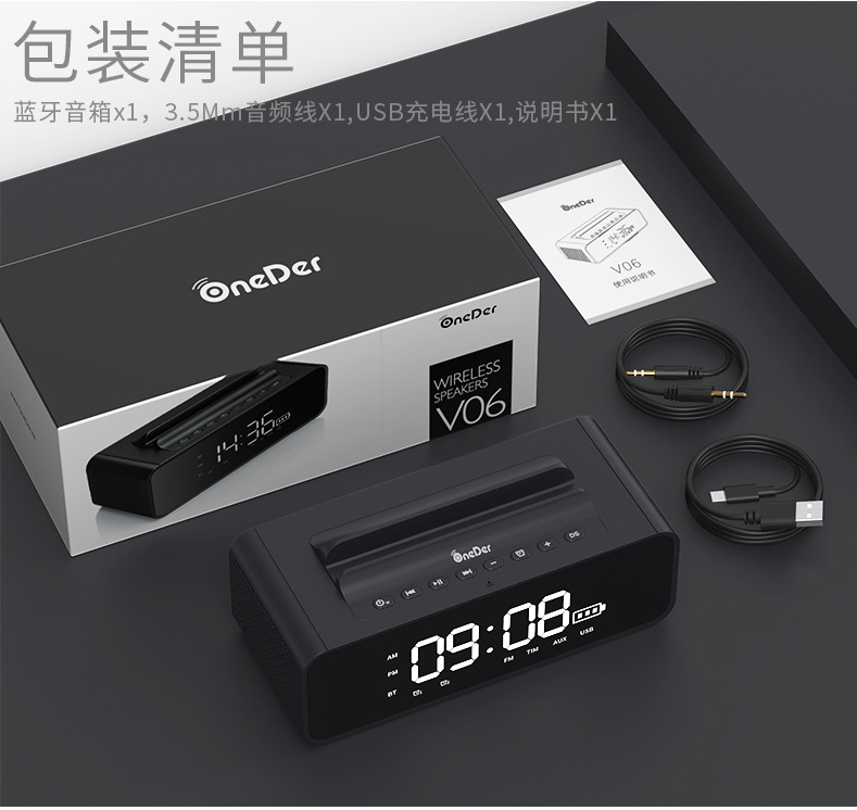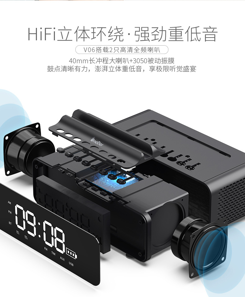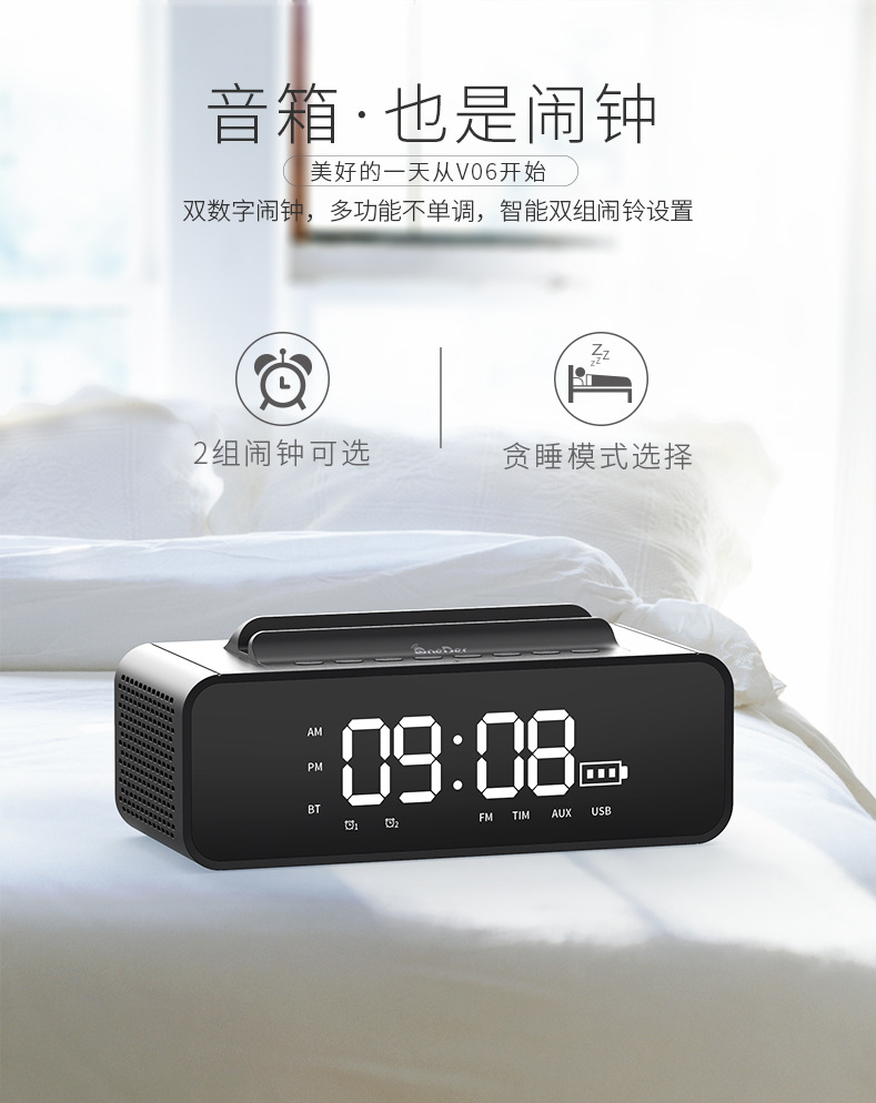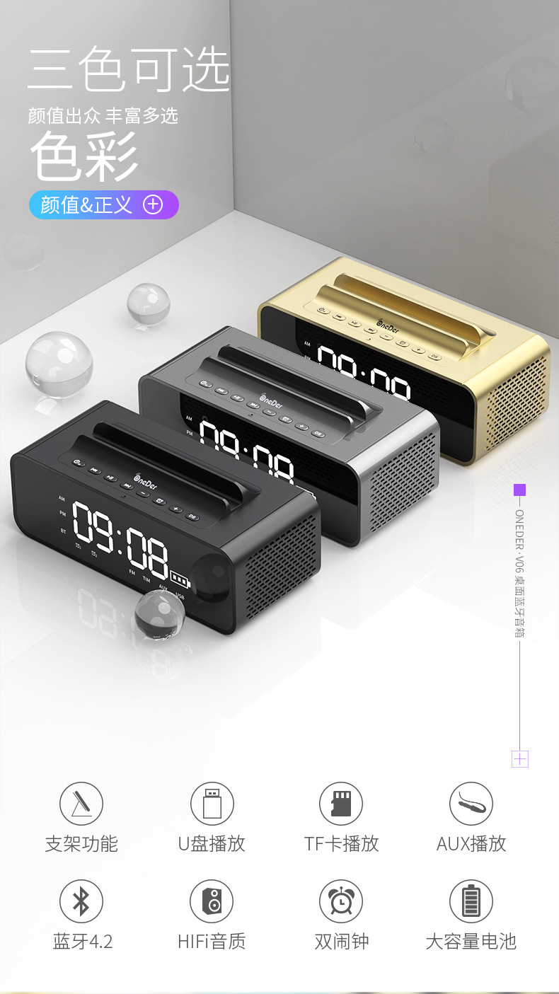 V06 跨境支架蓝牙音箱 FM收音机礼品音箱 低音炮插卡显示屏音响