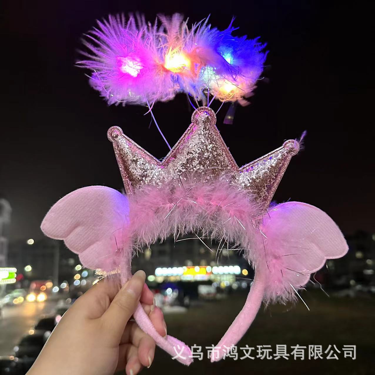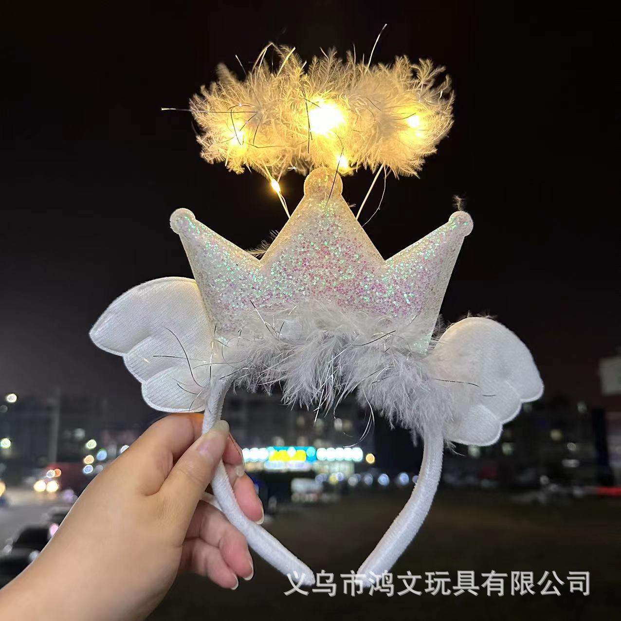 天使翅膀羽毛发箍舞台节日头饰 仙女头环led头扣发光玩具批发夜市