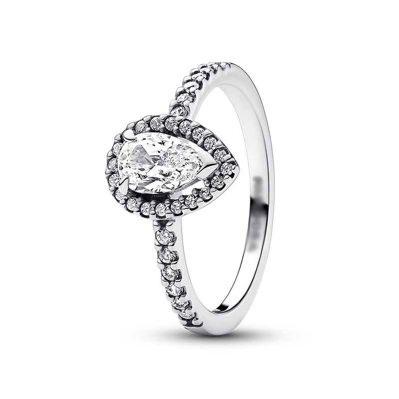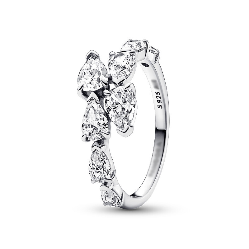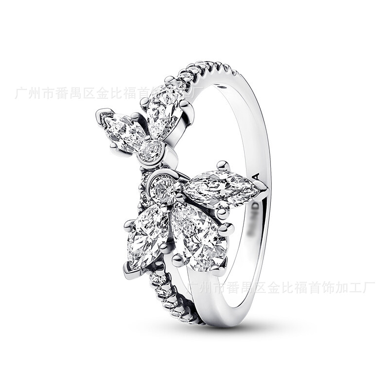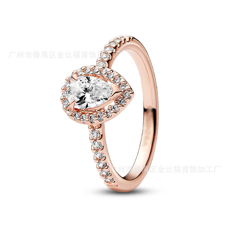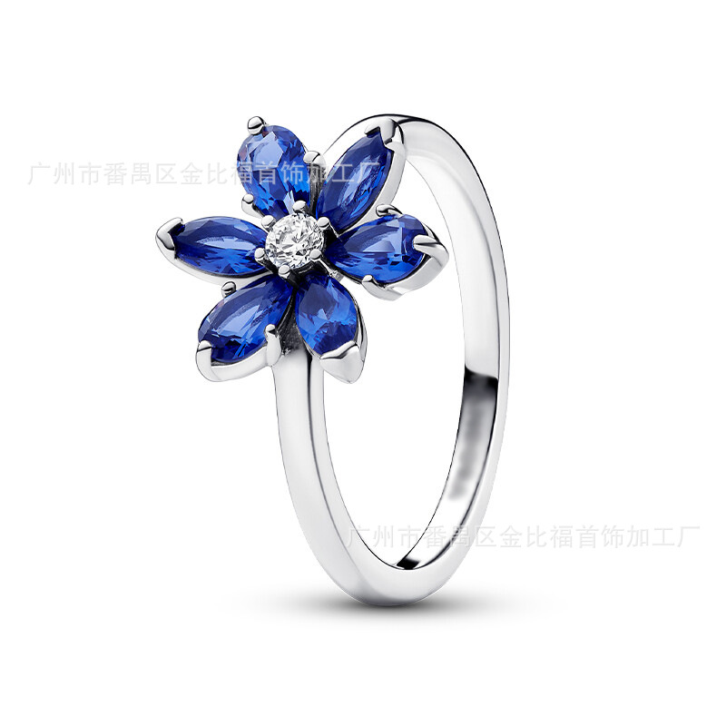 潘家多拉S925银戒指闪耀梨形光环系列蓝色拼花戒指时尚情侣对戒女