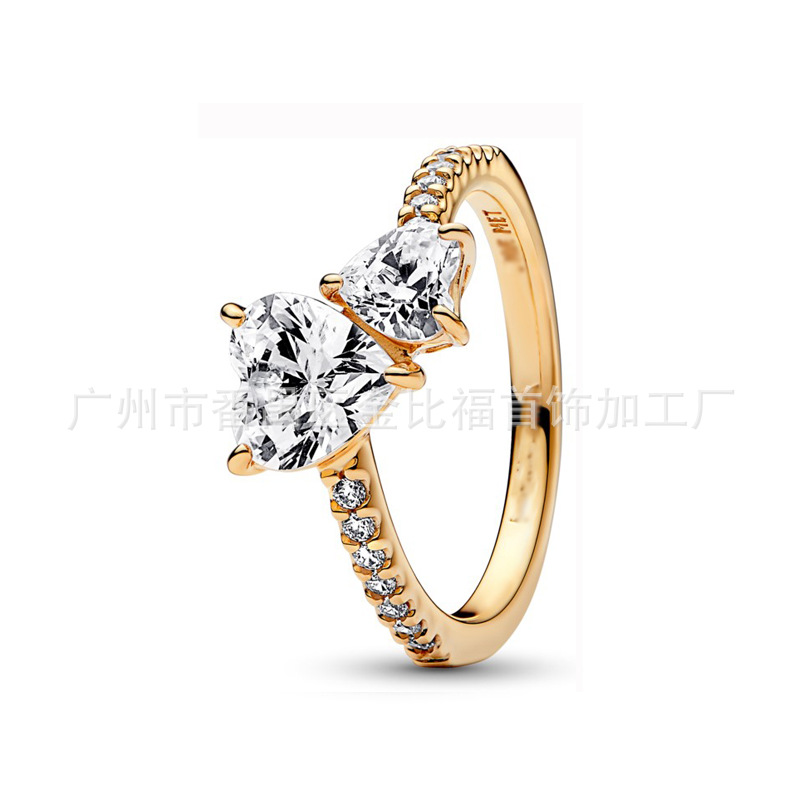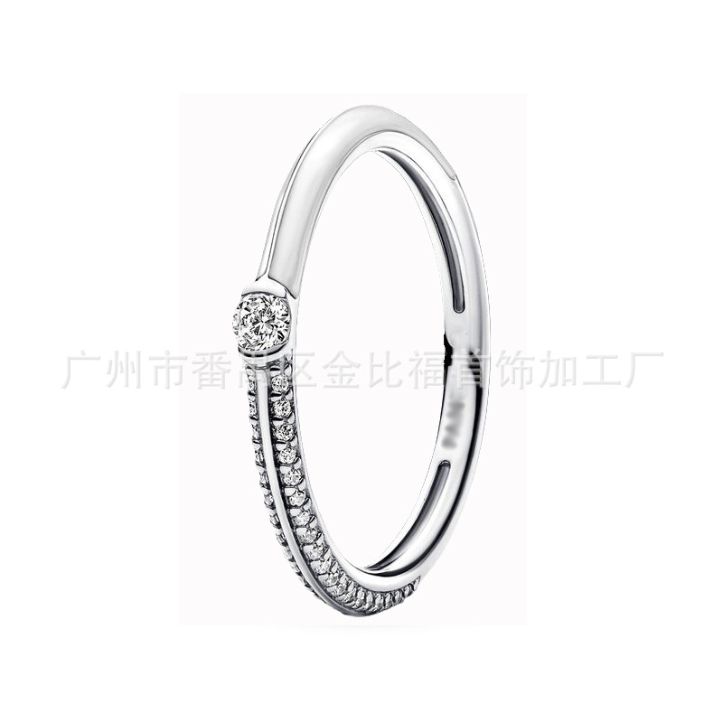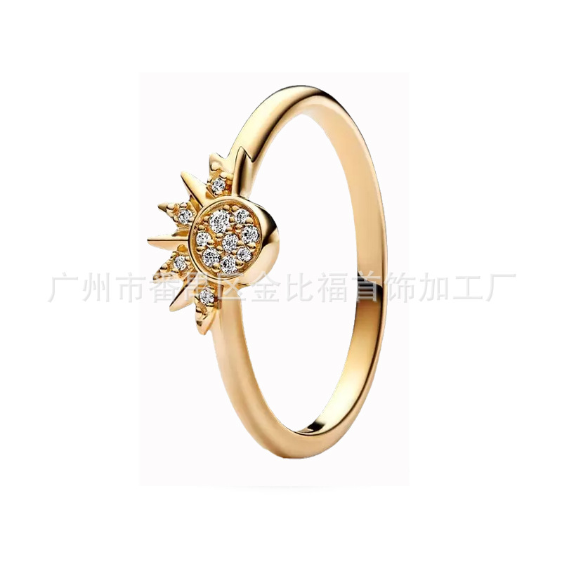 潘家多拉S925银戒指新款日月叠戴戒指IU满钻款式时尚气质情侣对戒