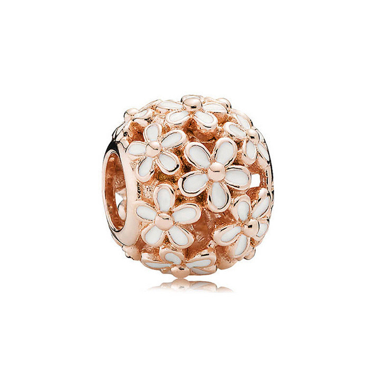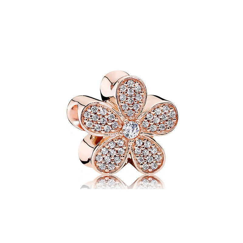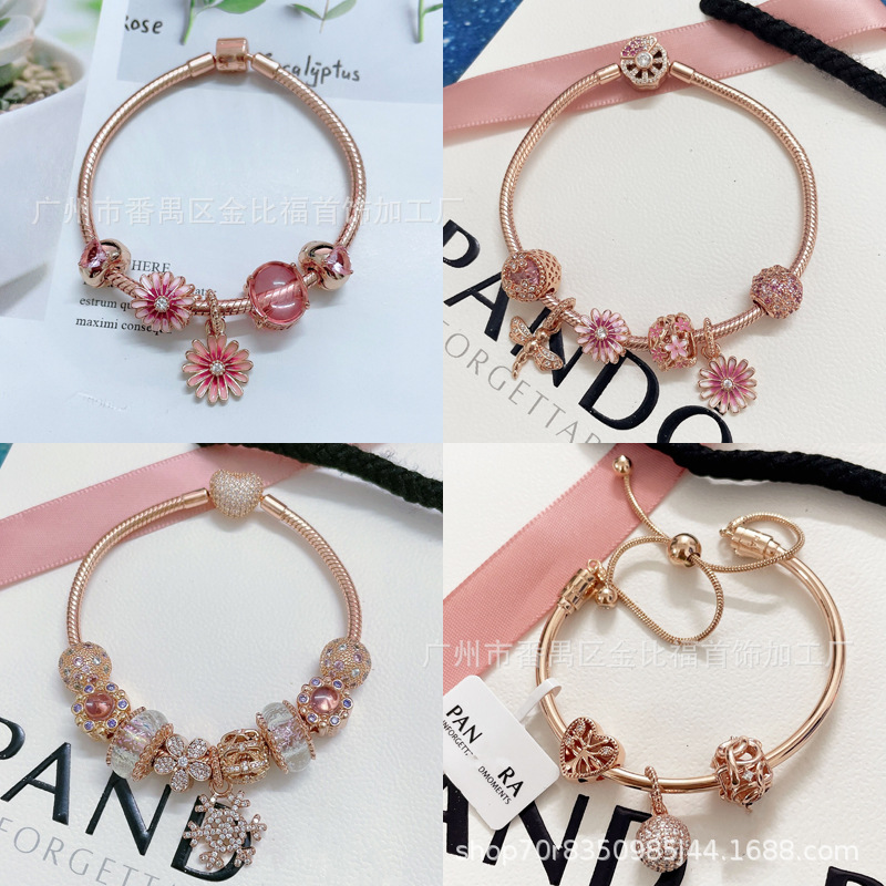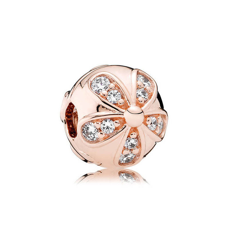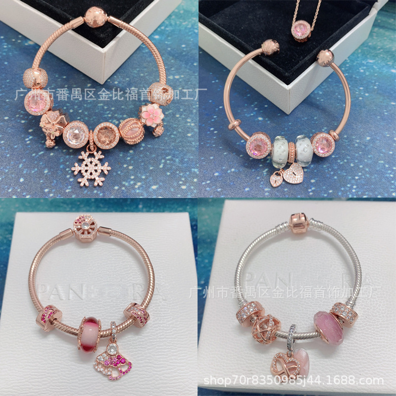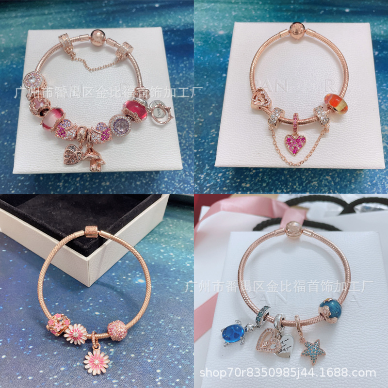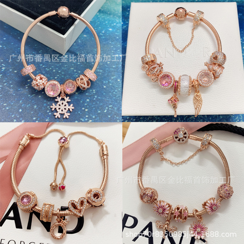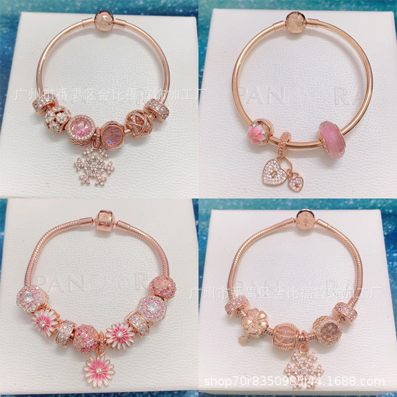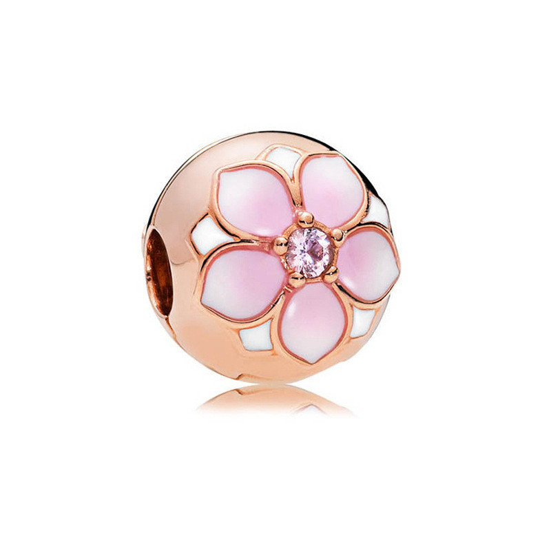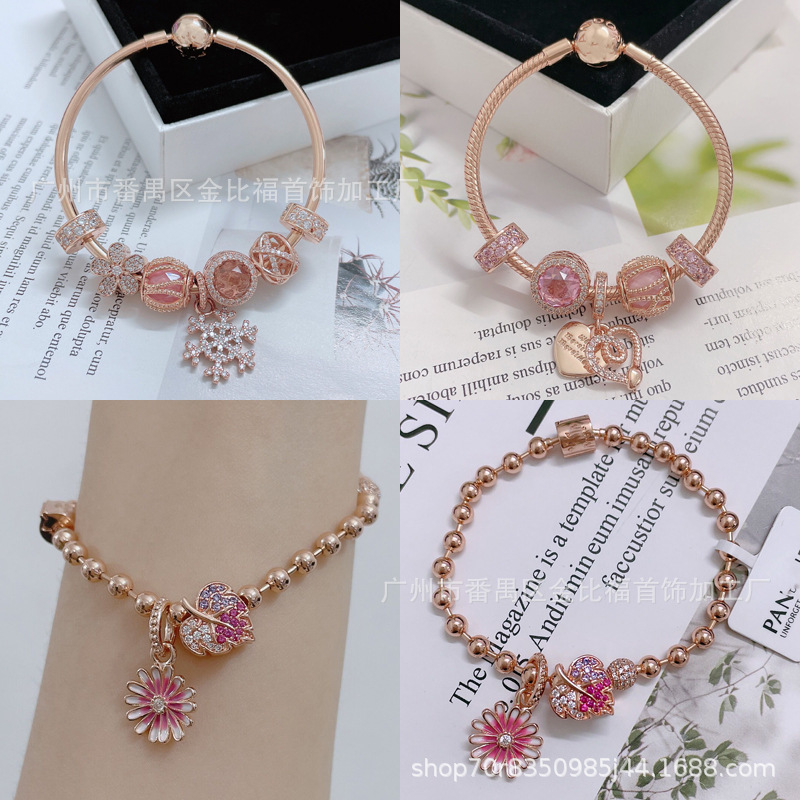 潘家多拉S925银玫瑰金色木兰花爱心串珠手镯手链吊串珠子DIY配件