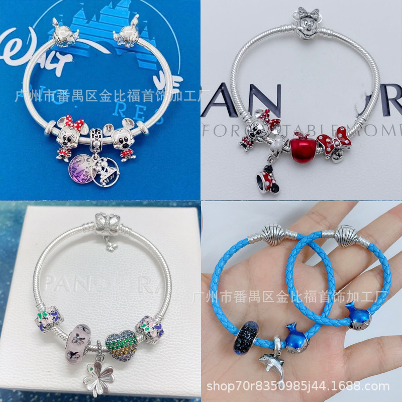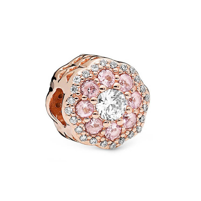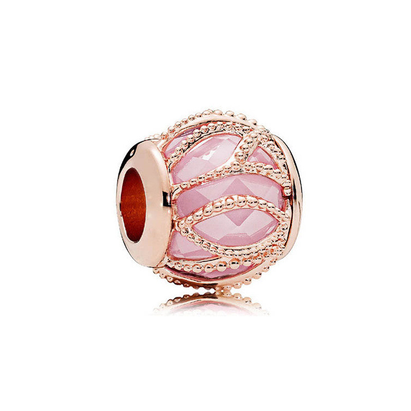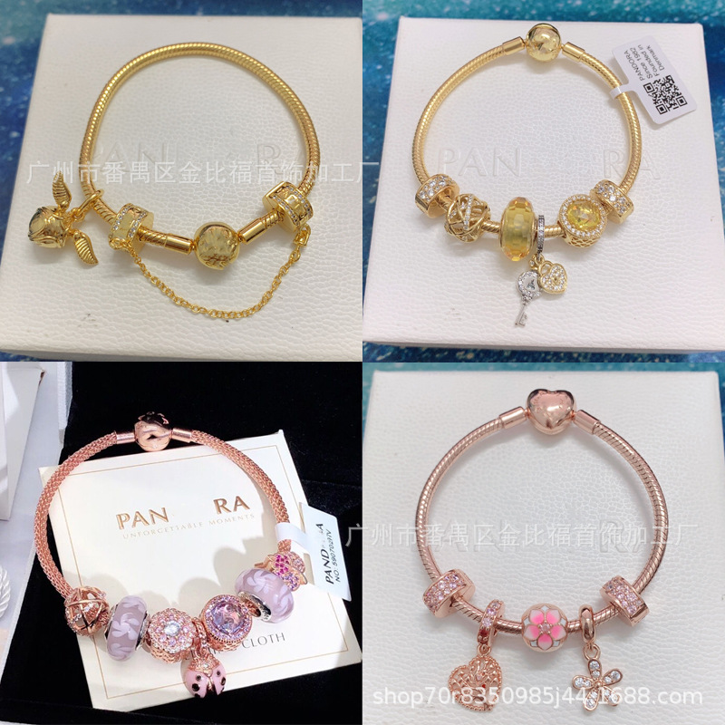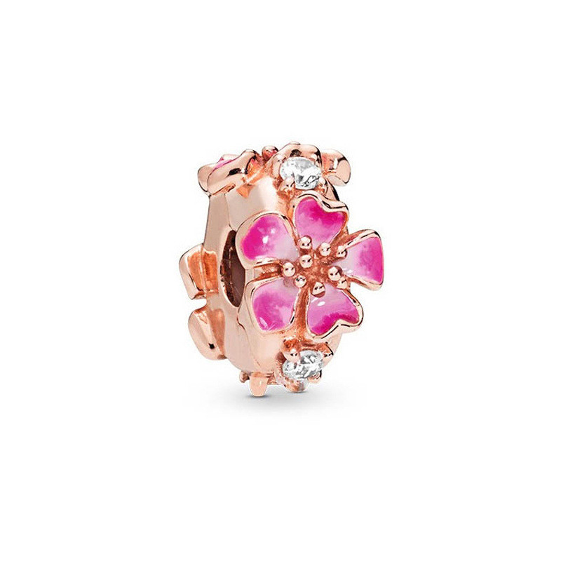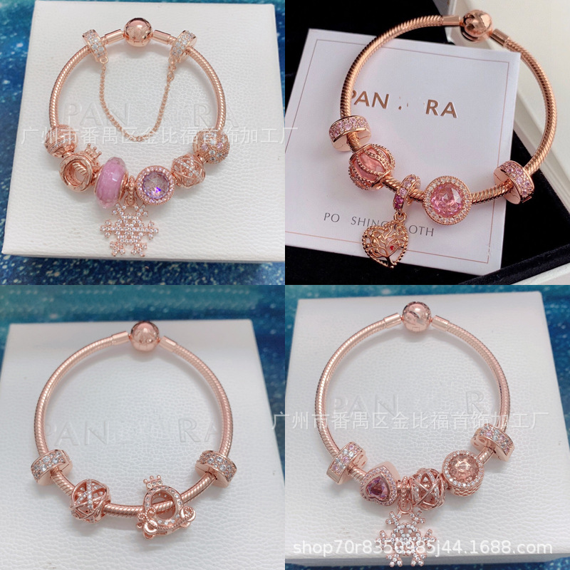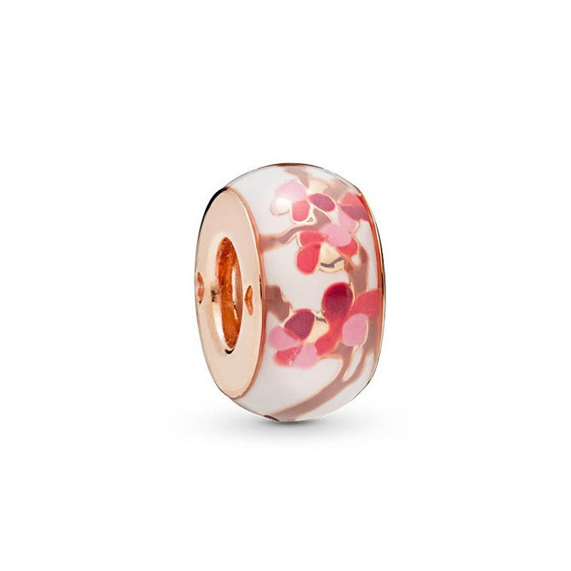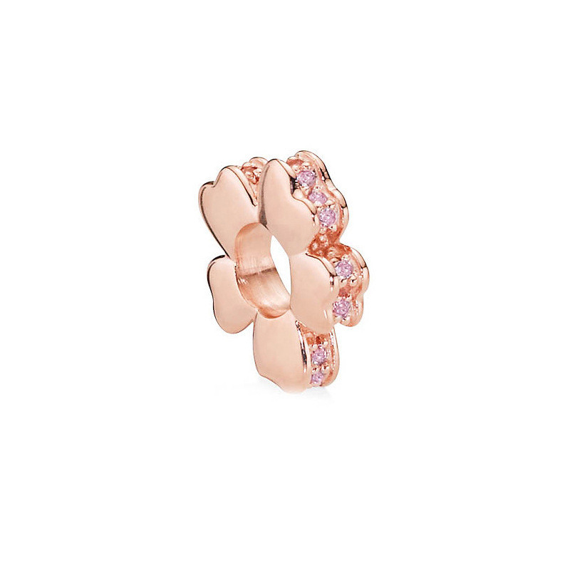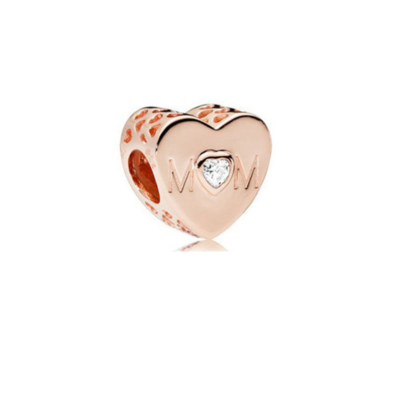 潘家多拉S925银玫瑰金色木兰花爱心串珠手镯手链吊串珠子DIY配件