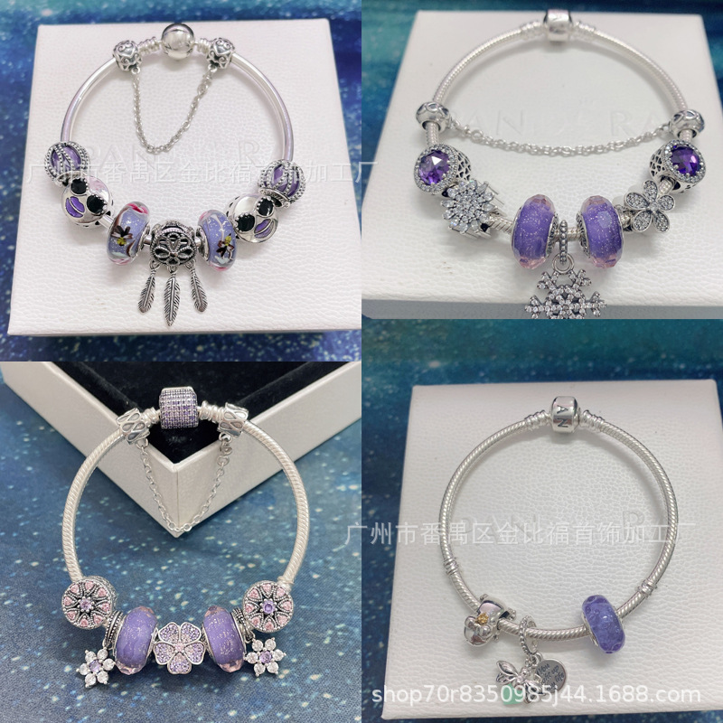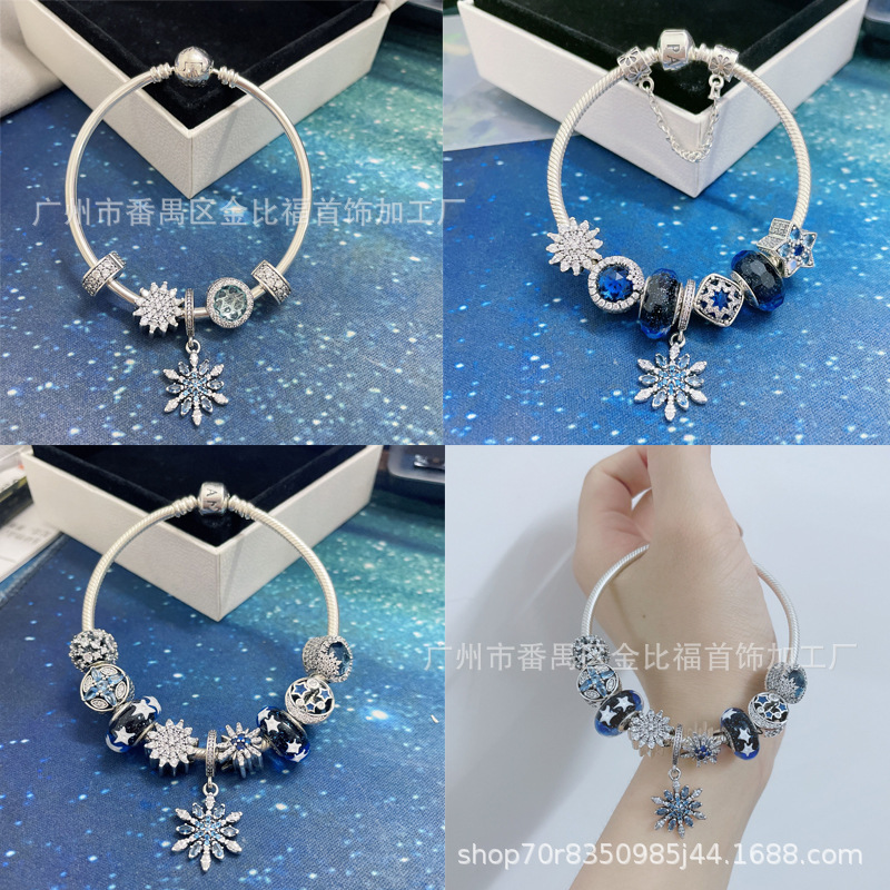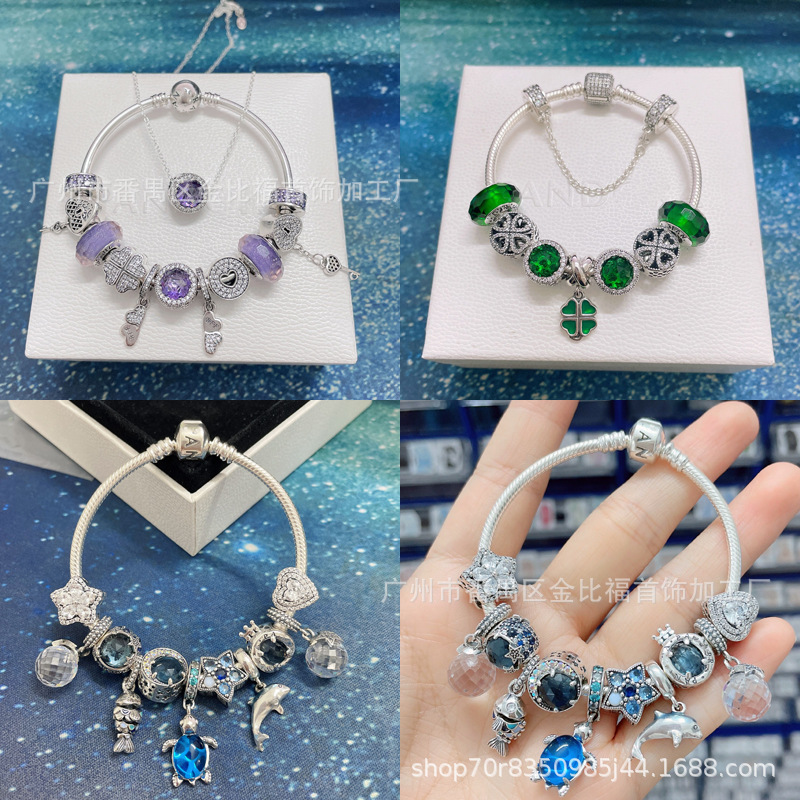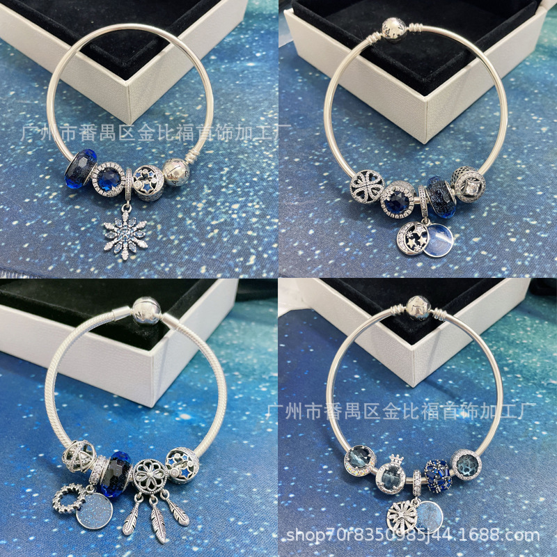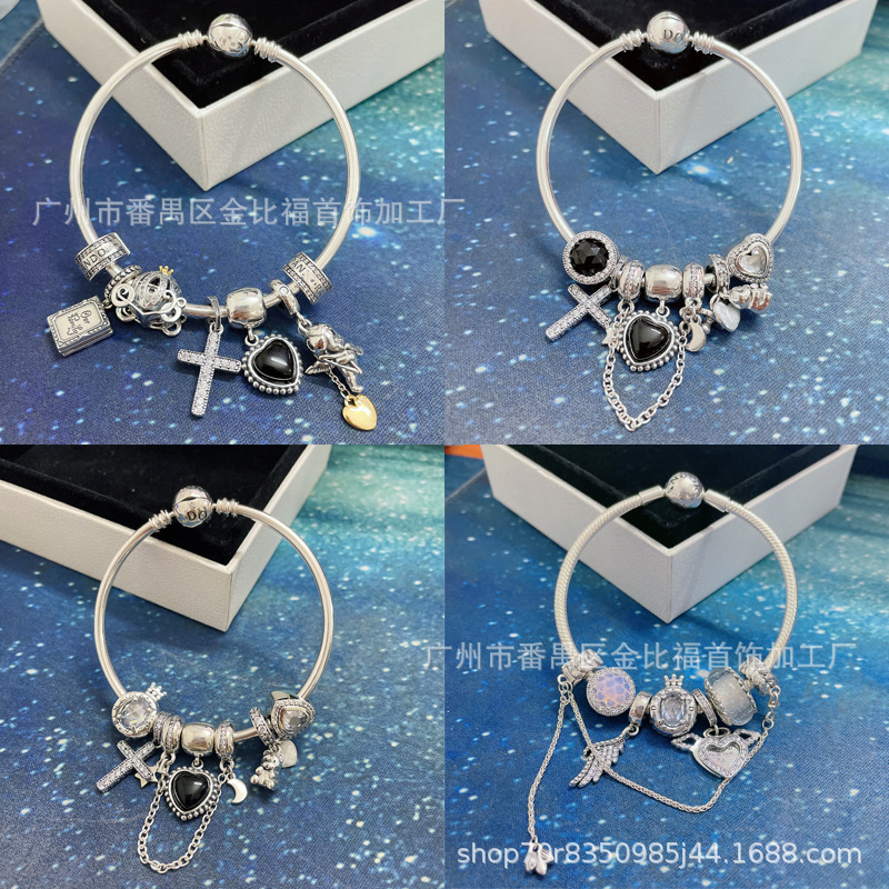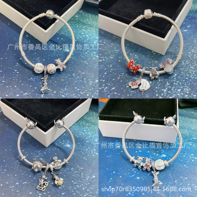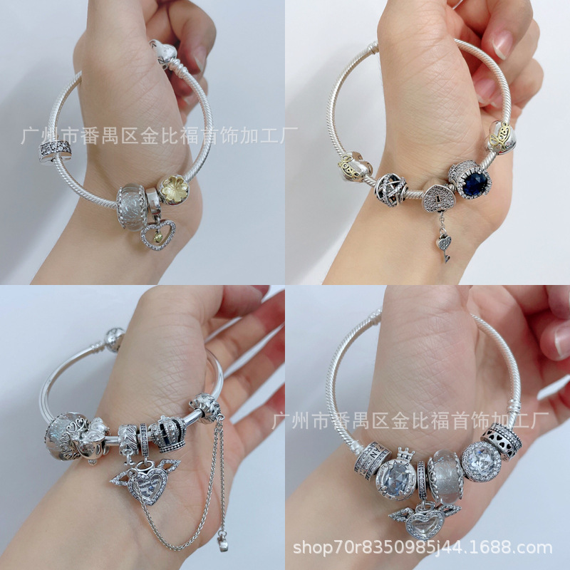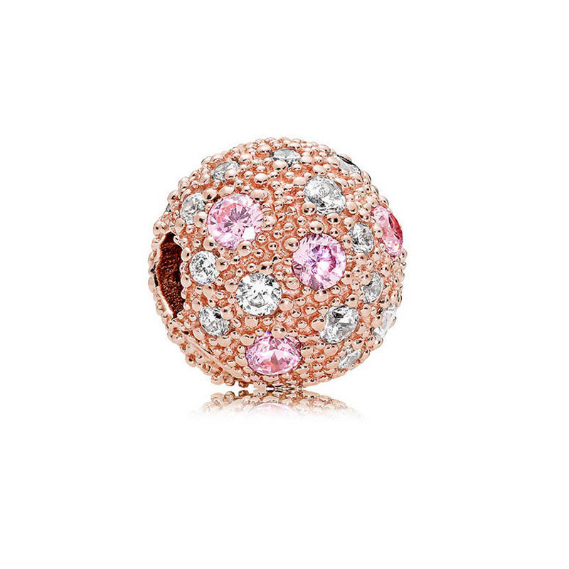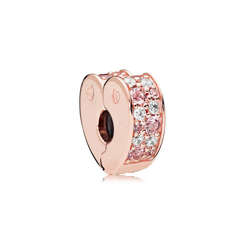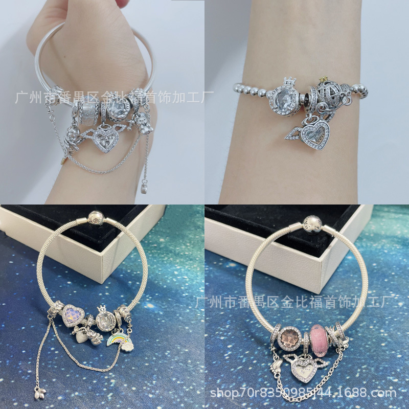 潘家多拉S925银玫瑰金色木兰花爱心串珠手镯手链吊串珠子DIY配件