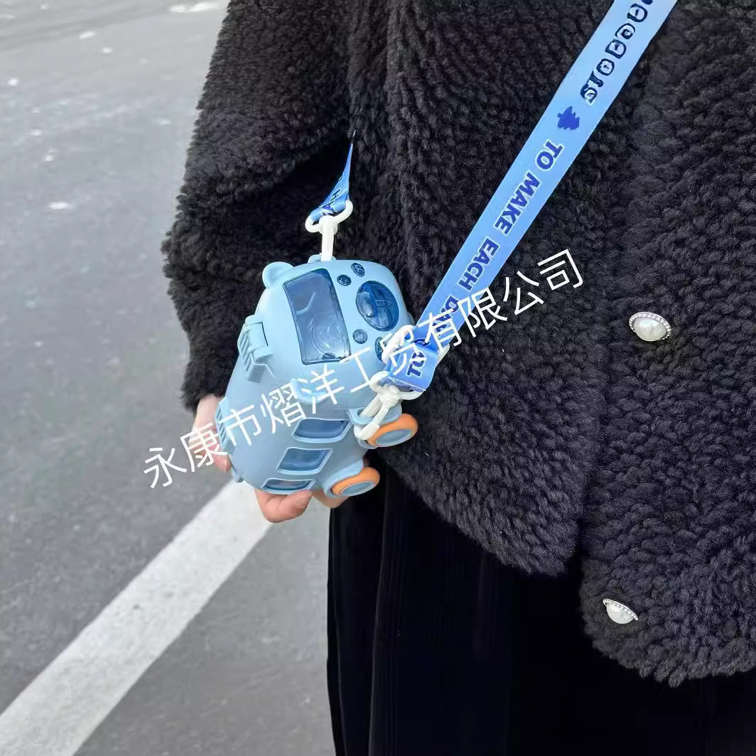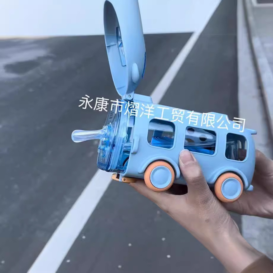 巴士小汽车吸管杯儿童创意塑料杯便携户外弹跳盖水杯汽车网红水杯