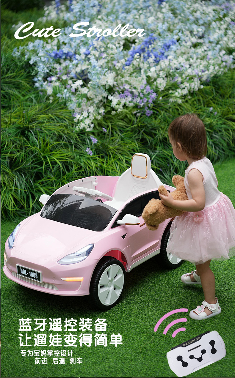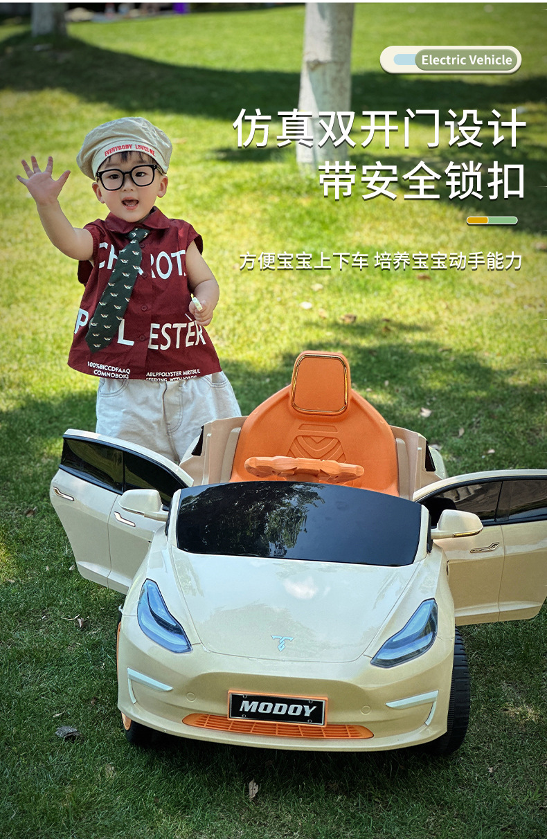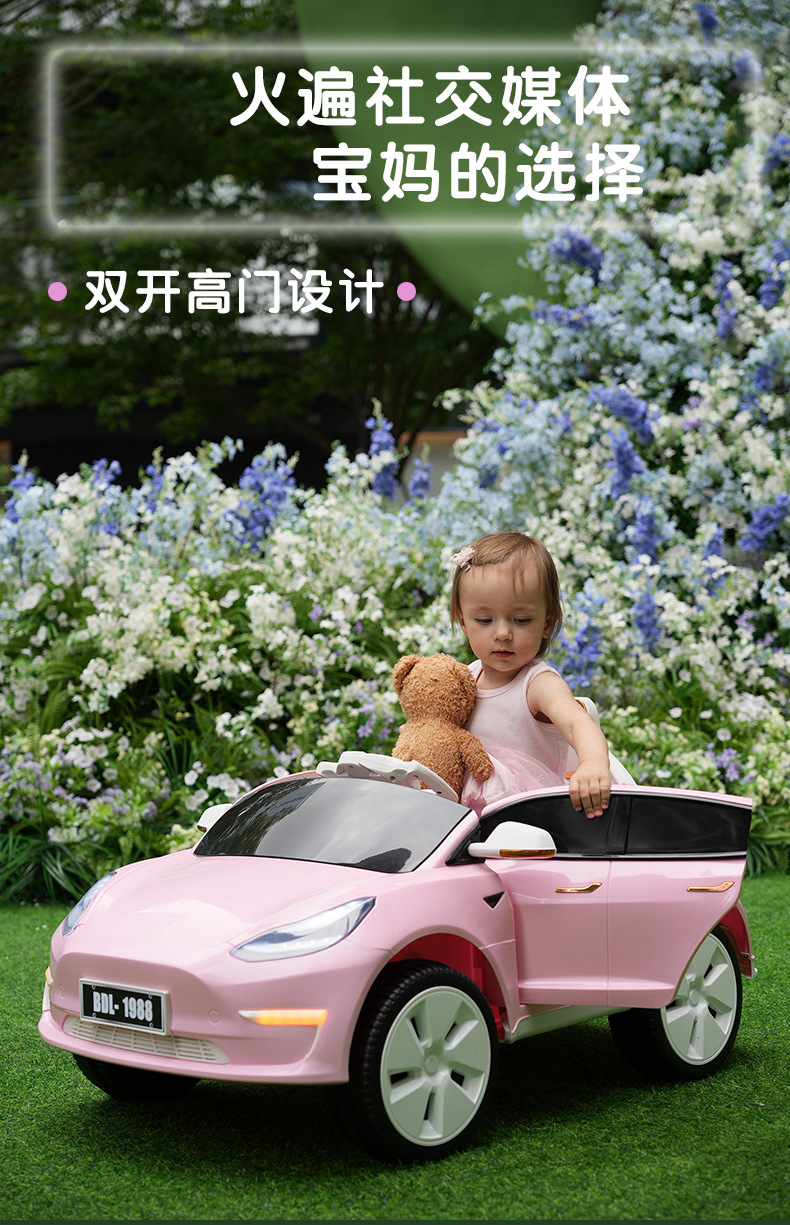 特斯拉儿童电动车四轮遥控汽车宝宝儿玩具可坐人男女小孩四驱童车