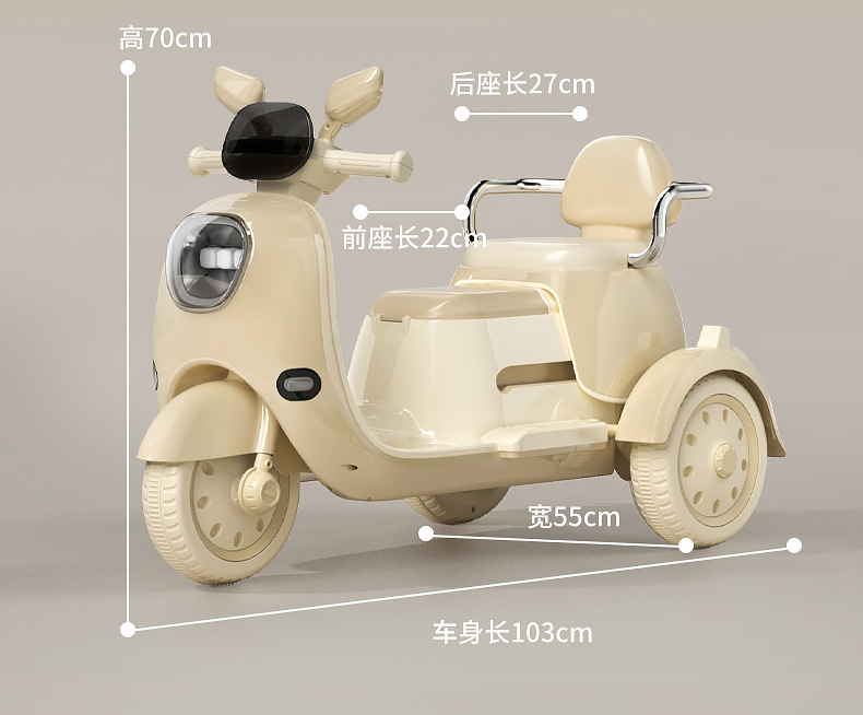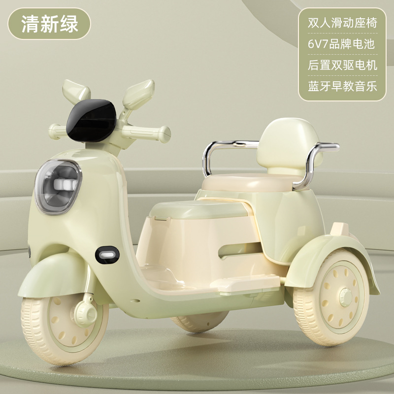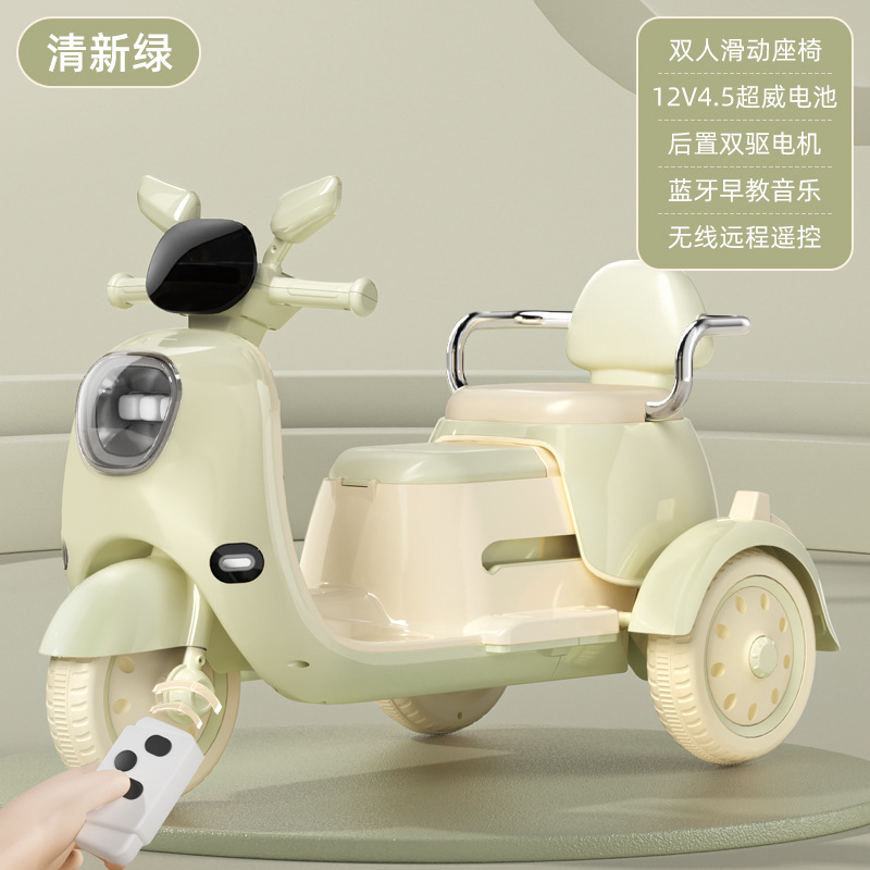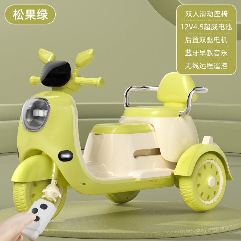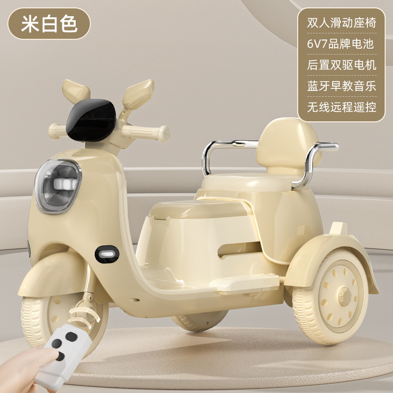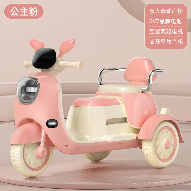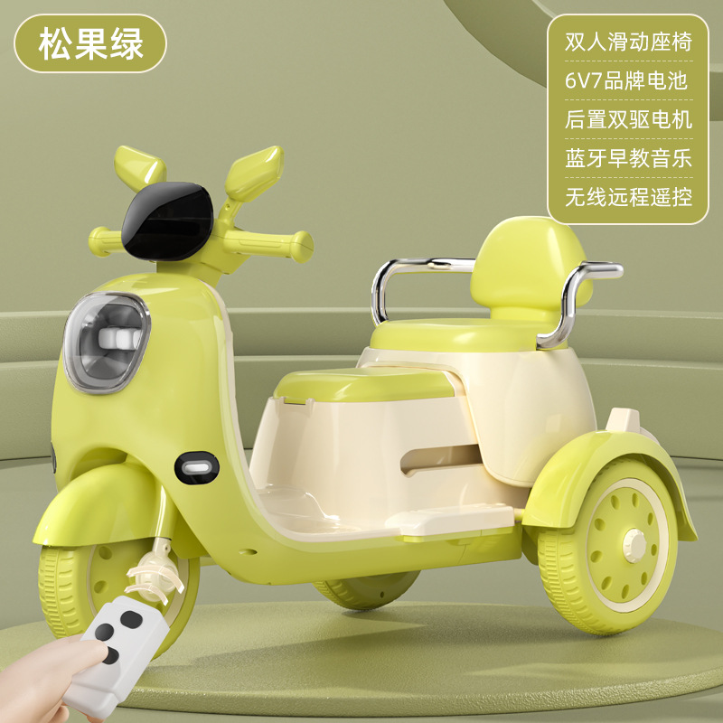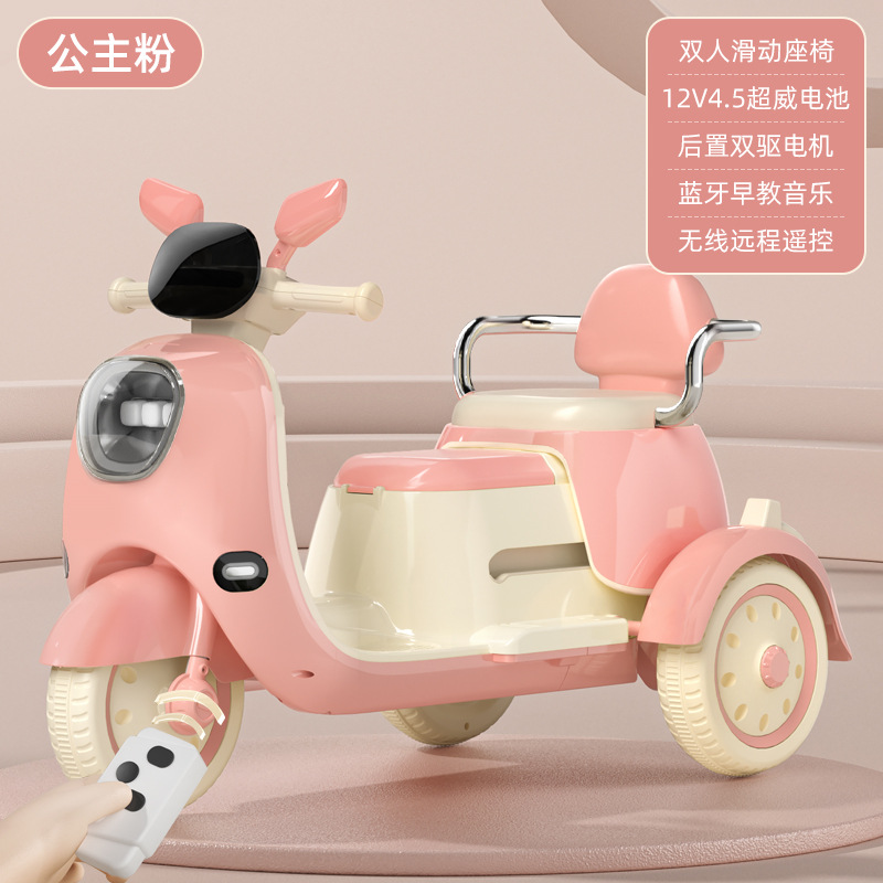 双人儿童电动摩托车三轮车男女孩宝宝车小孩可坐人充电遥控玩具车