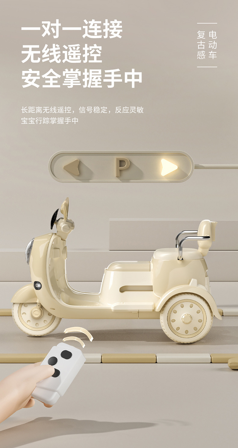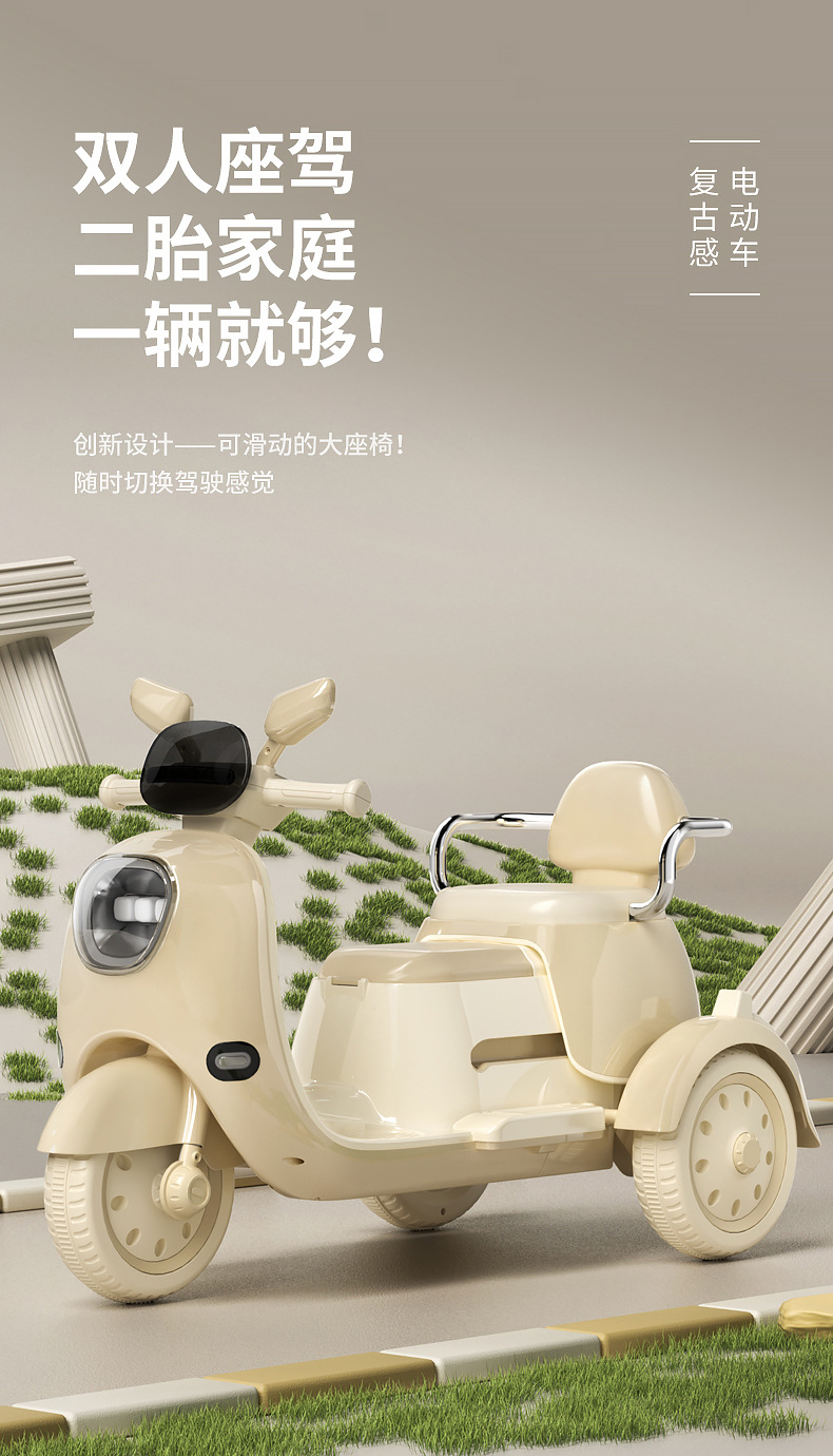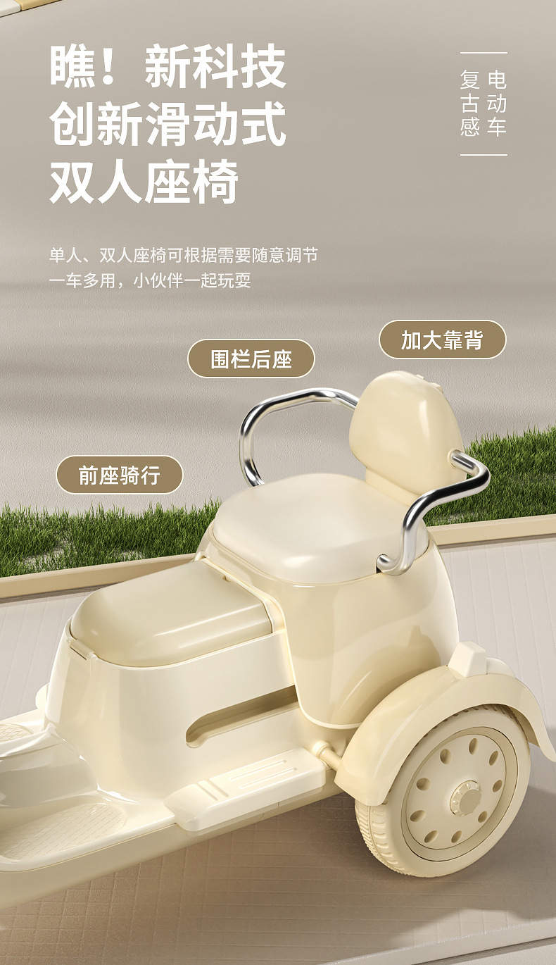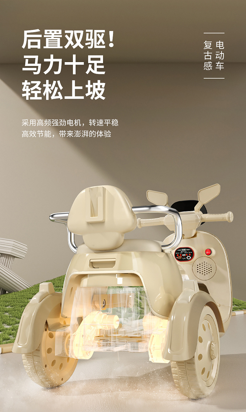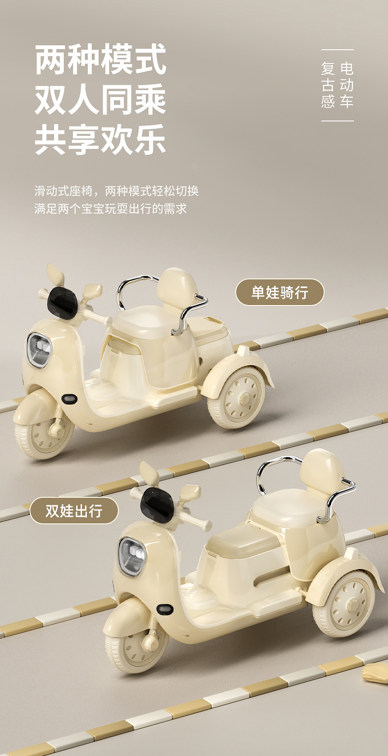 双人儿童电动摩托车三轮车男女孩宝宝车小孩可坐人充电遥控玩具车
