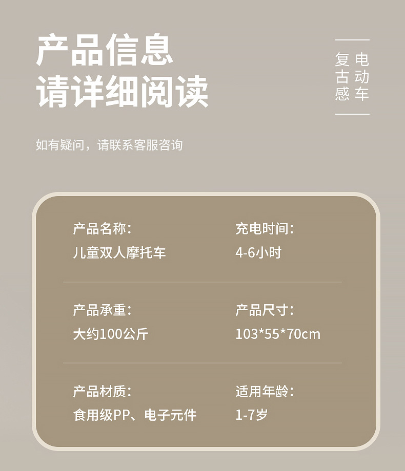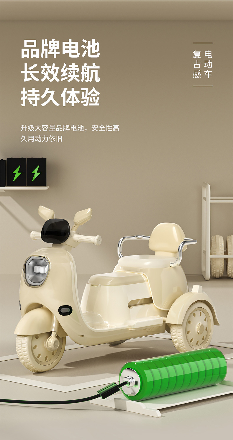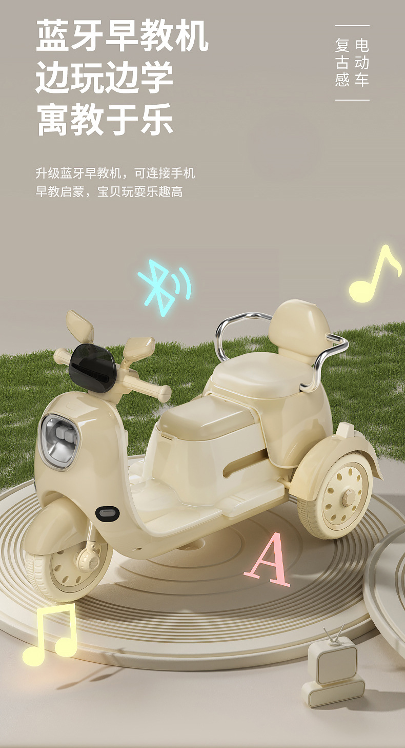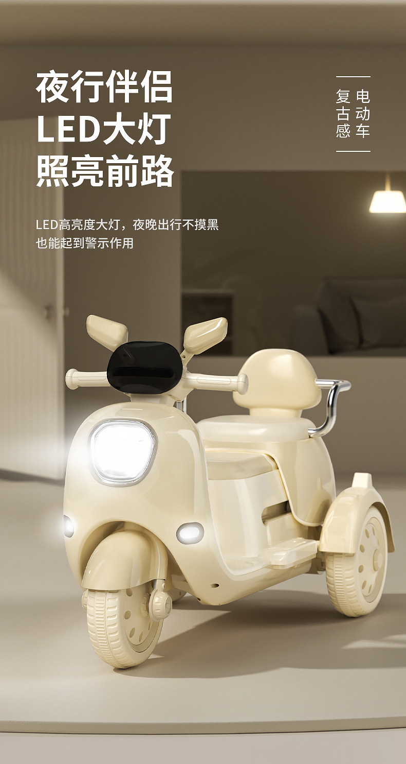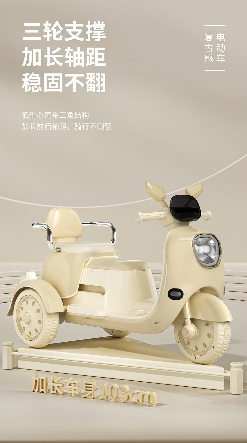 双人儿童电动摩托车三轮车男女孩宝宝车小孩可坐人充电遥控玩具车