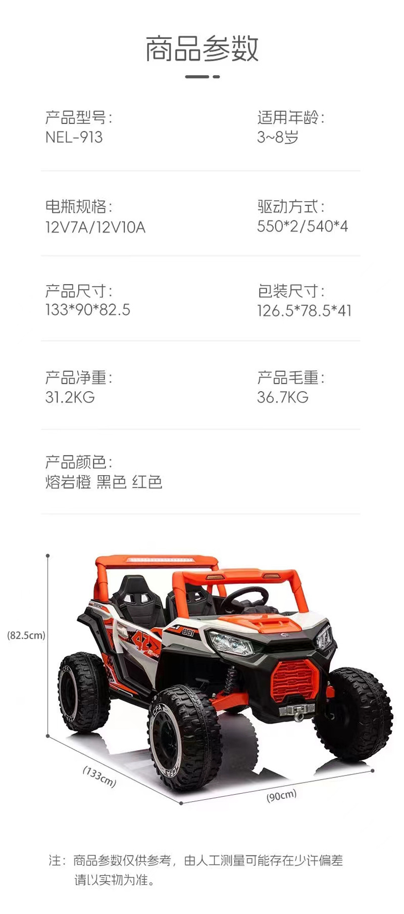 双人座儿童电动汽车四轮越野沙滩车可坐大人小孩遥控玩具车可坐人