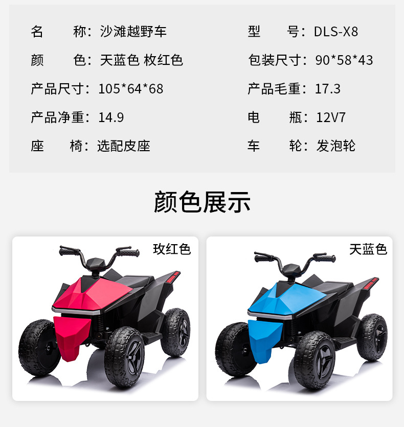 特斯拉儿童电动车沙滩车儿童电动汽车越野车四轮驱动遥控宝宝玩具