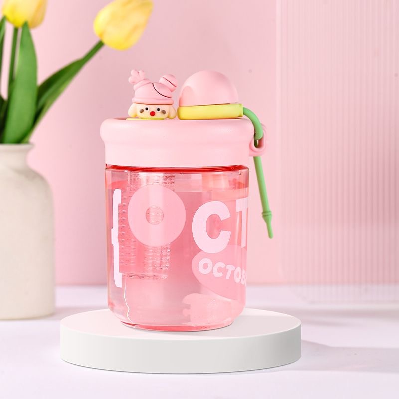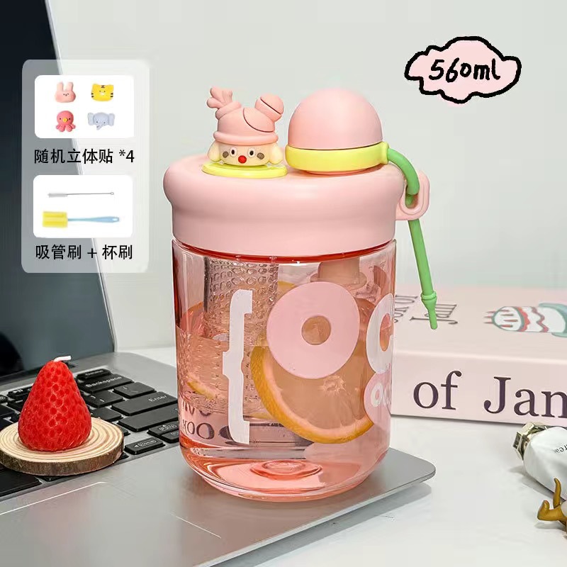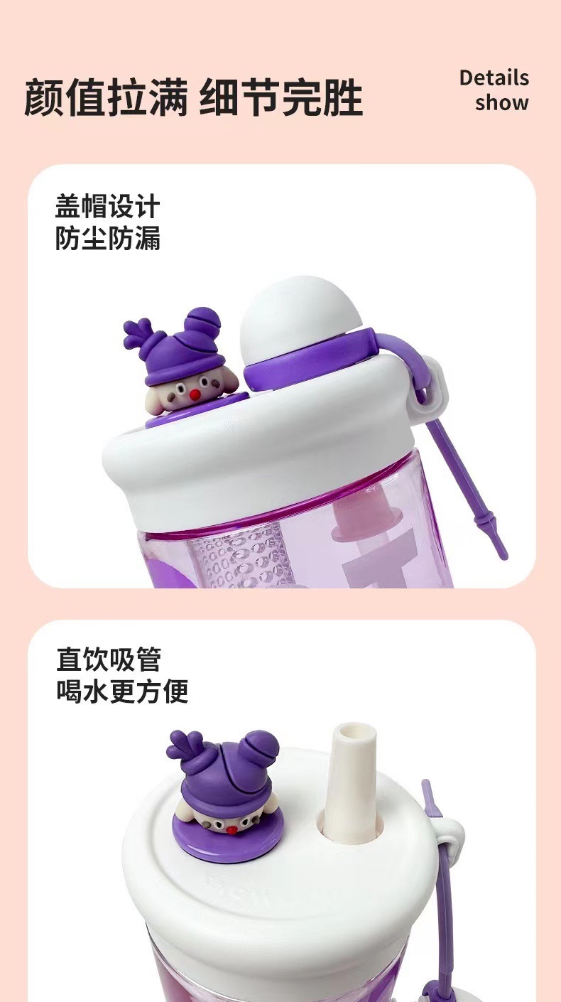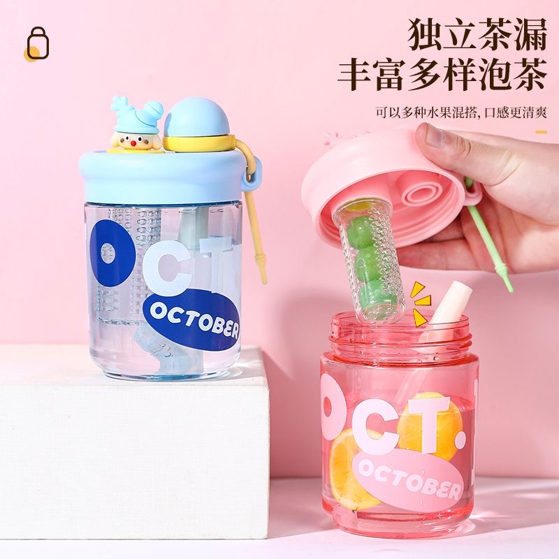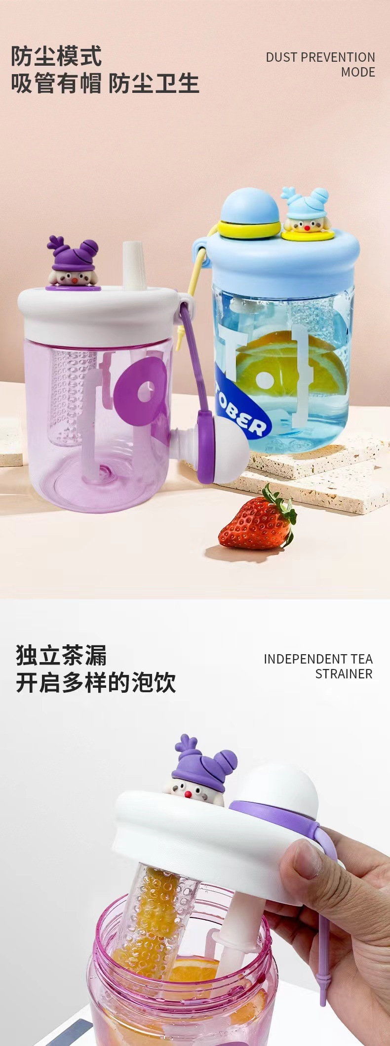 2024年网红高颜值可爱公仔啵啵杯带茶仓双饮吸管杯耐高温防摔水杯