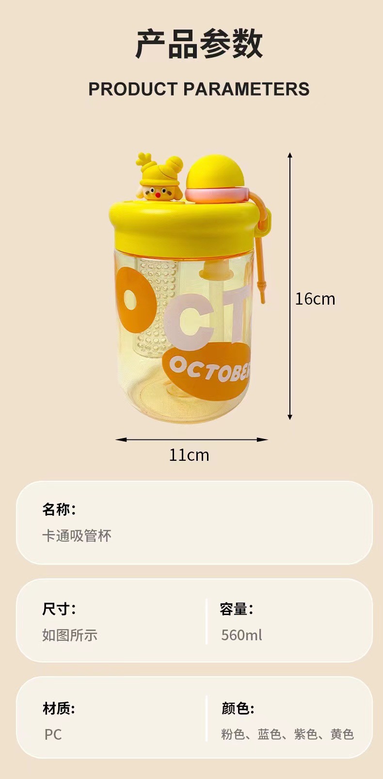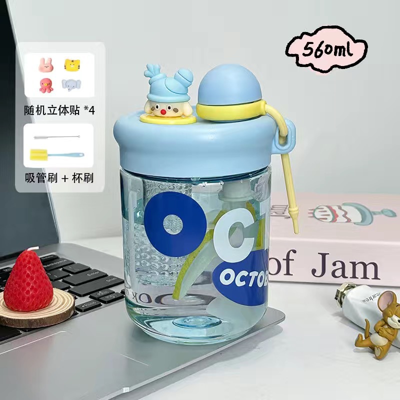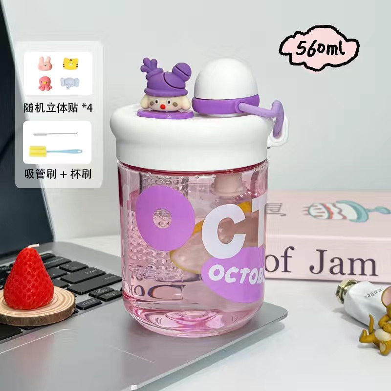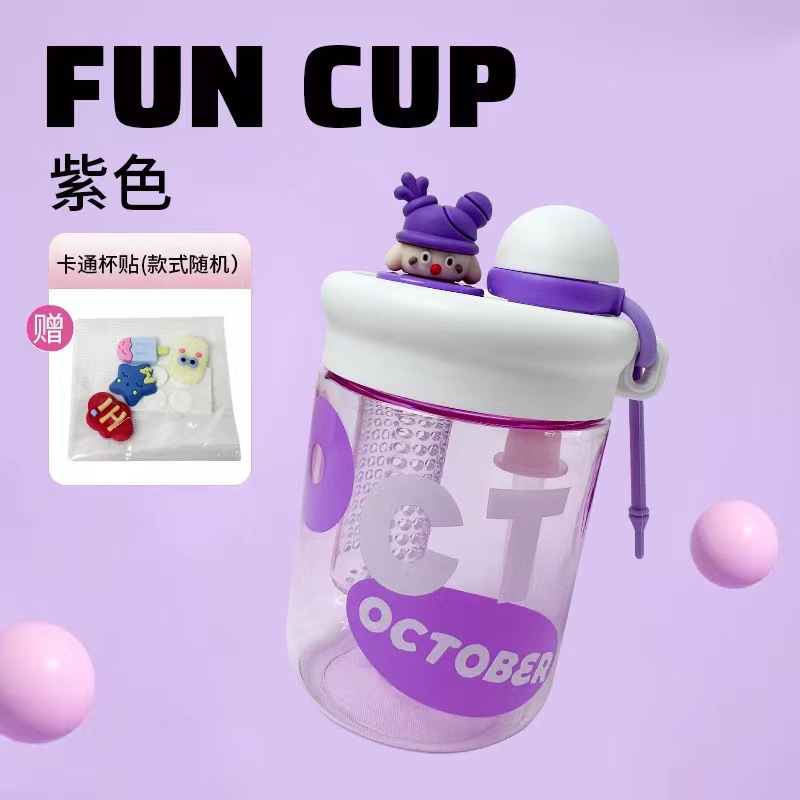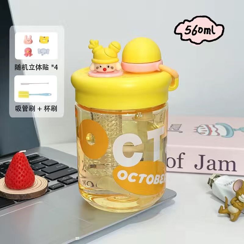 2024年网红高颜值可爱公仔啵啵杯带茶仓双饮吸管杯耐高温防摔水杯