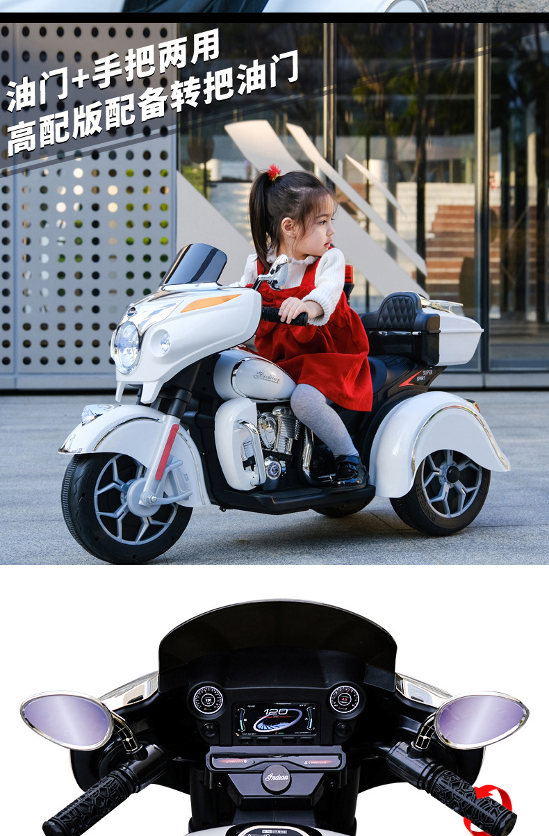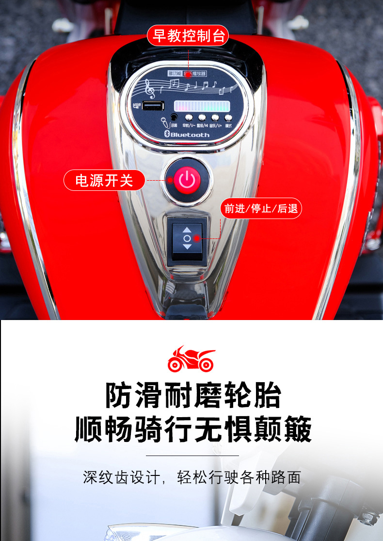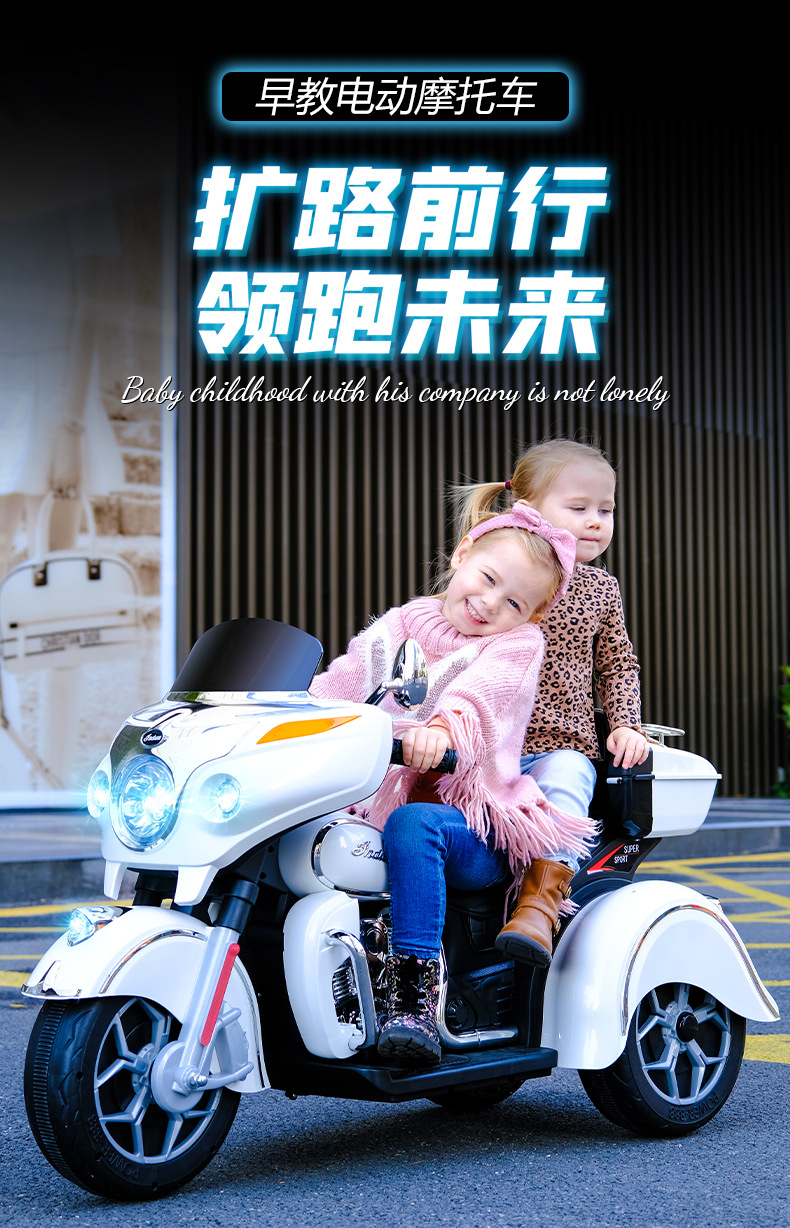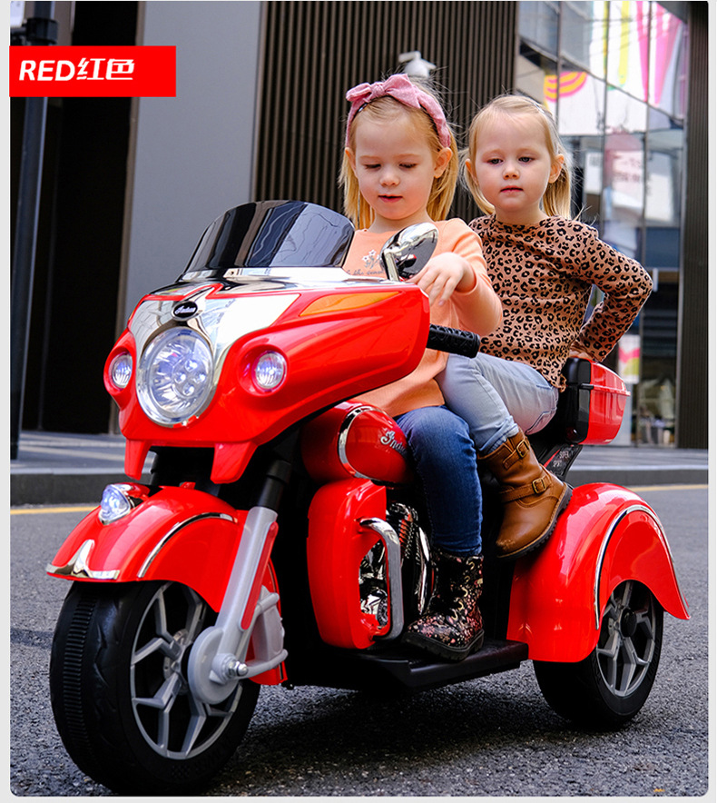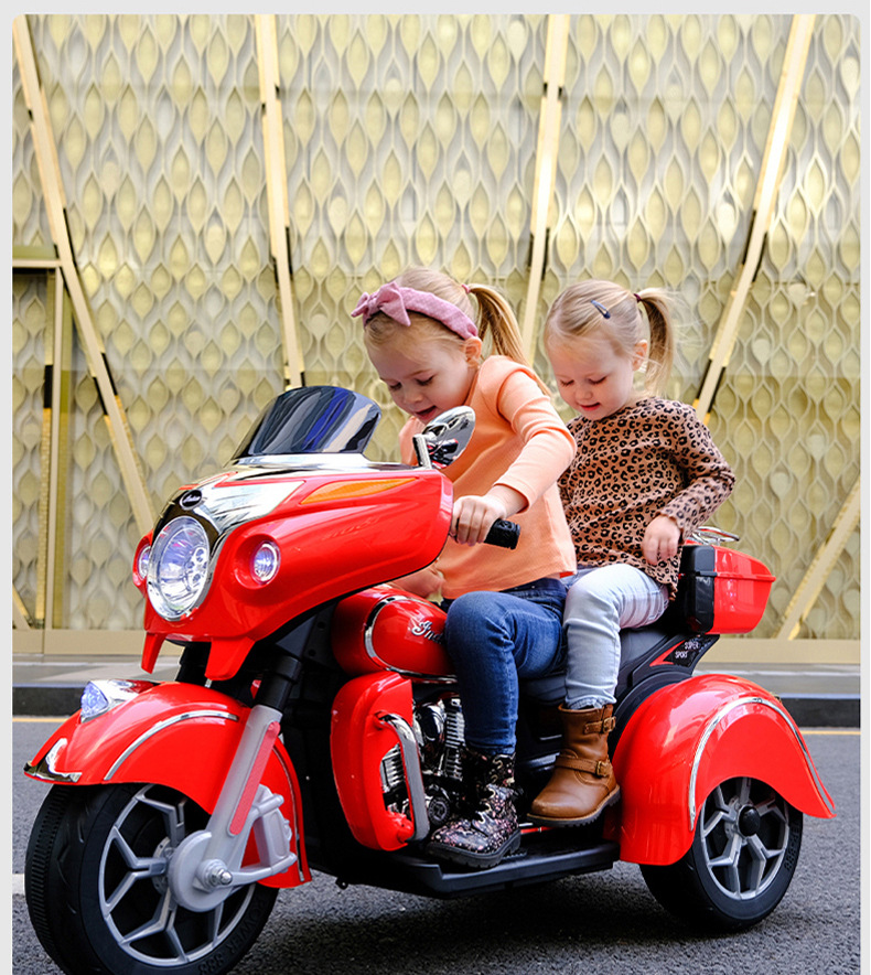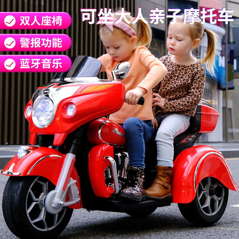 儿童电动摩托车可坐大人亲子三轮车小孩双人充电玩具车男孩双驱车