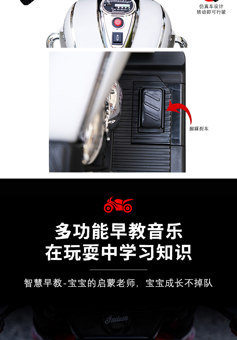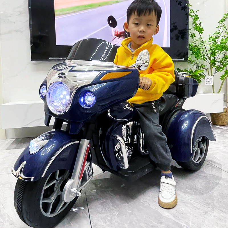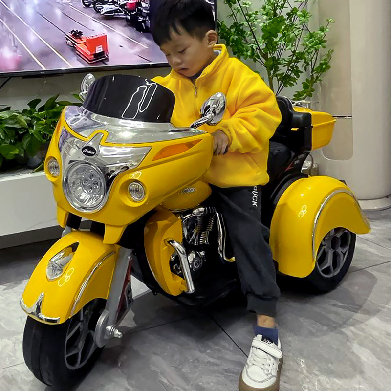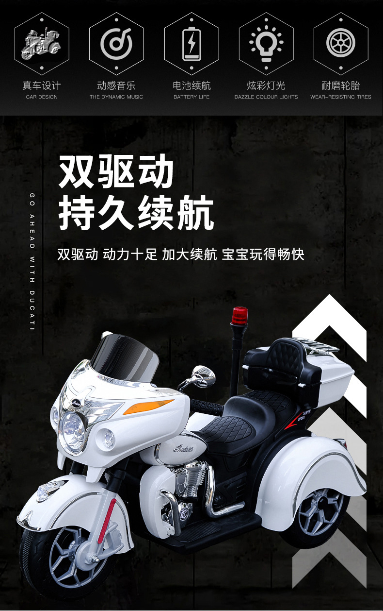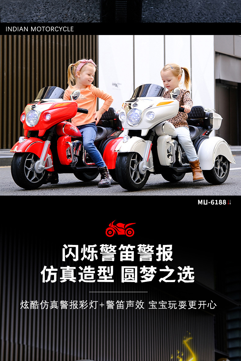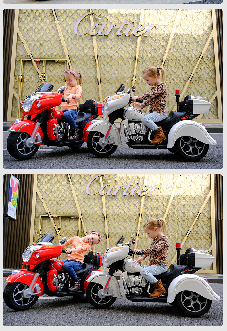 儿童电动摩托车可坐大人亲子三轮车小孩双人充电玩具车男孩双驱车