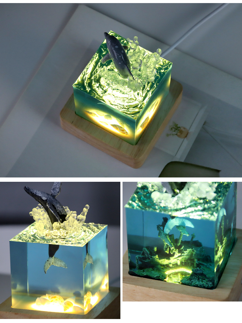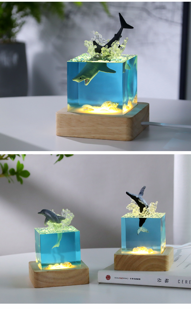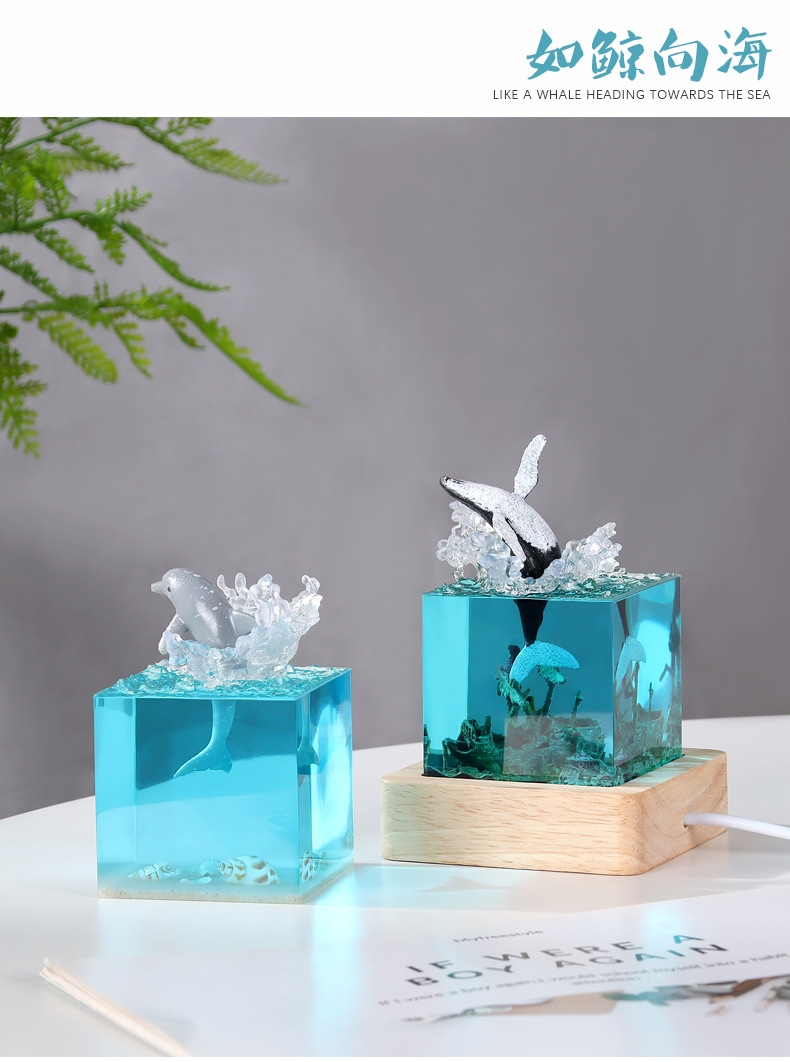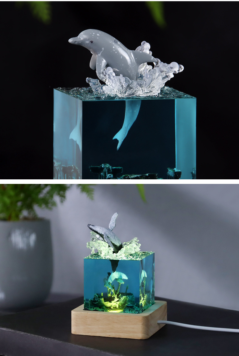 外贸专供海洋手工艺品树脂鲸鱼座头鲸海豚巨齿鲨厅家居小夜灯