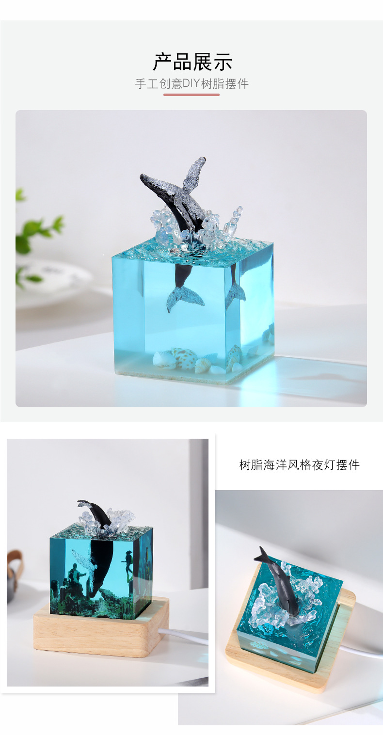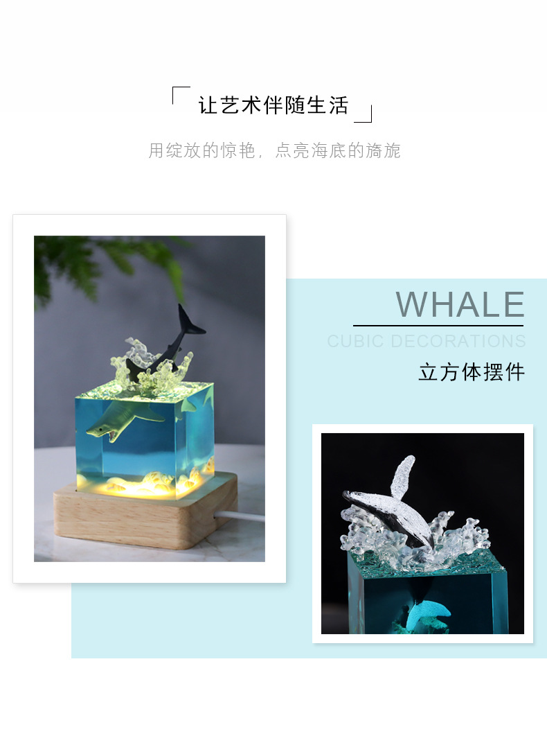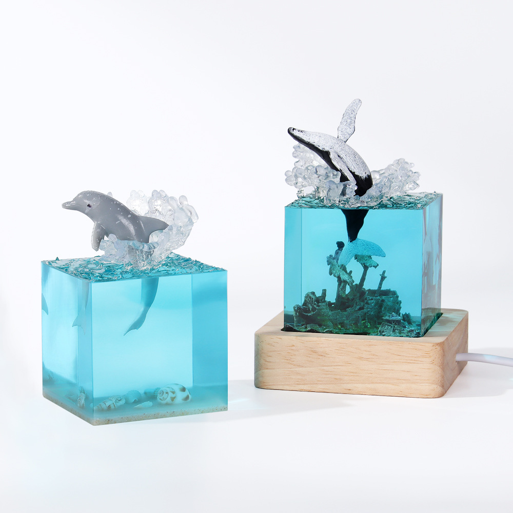 外贸专供海洋手工艺品树脂鲸鱼座头鲸海豚巨齿鲨厅家居小夜灯
