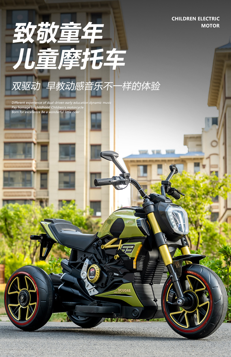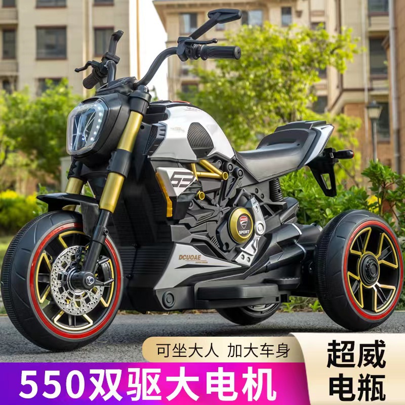 儿童电动摩托车可坐大人三轮摩托车小孩大号双驱玩具车宝宝电瓶车
