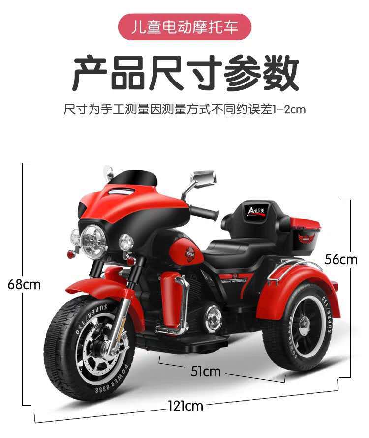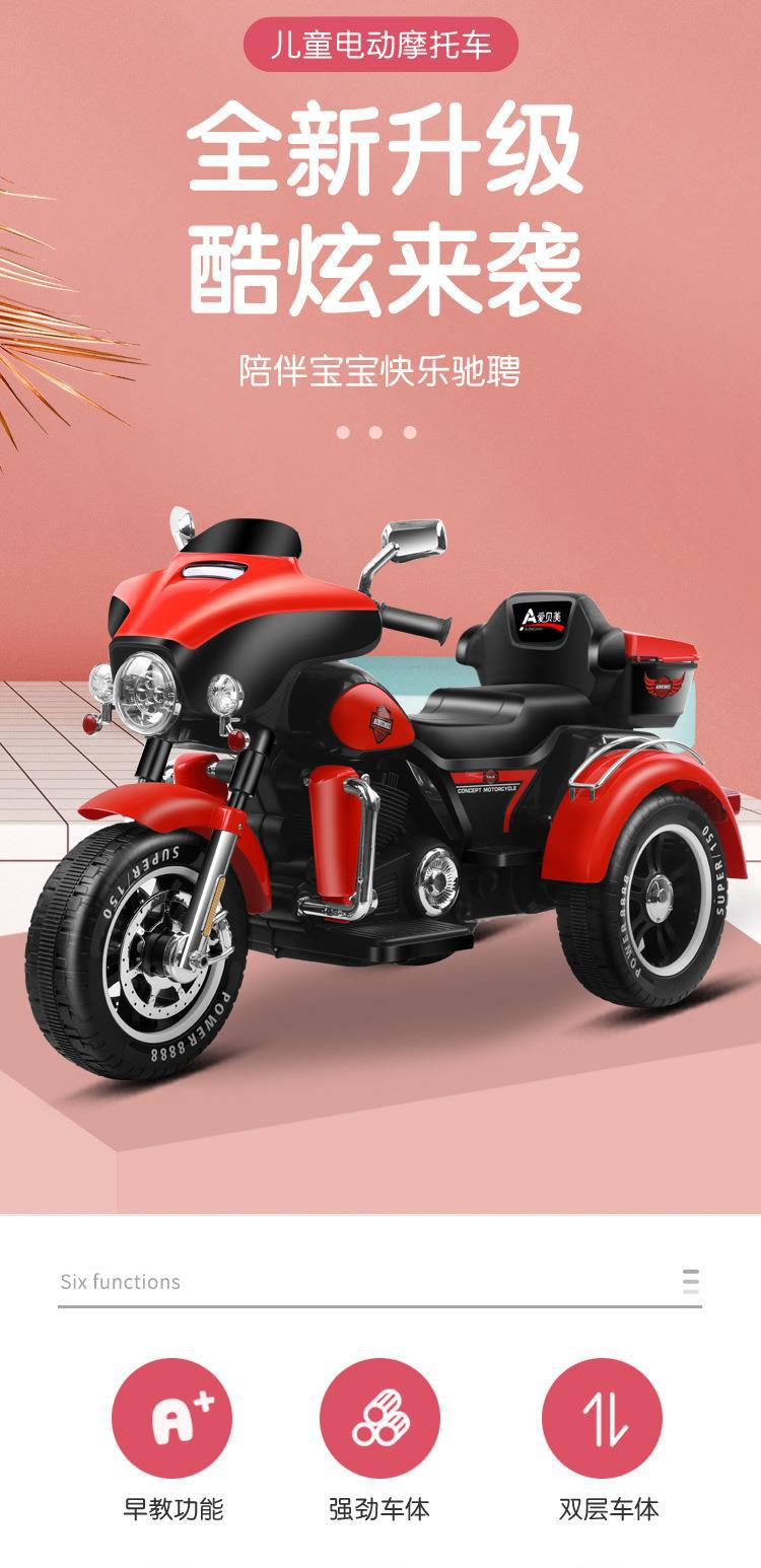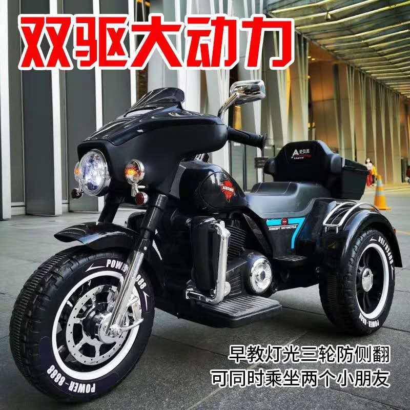儿童哈雷电动摩托车三轮车男女宝宝双驱动童车玩具车大号可坐双人