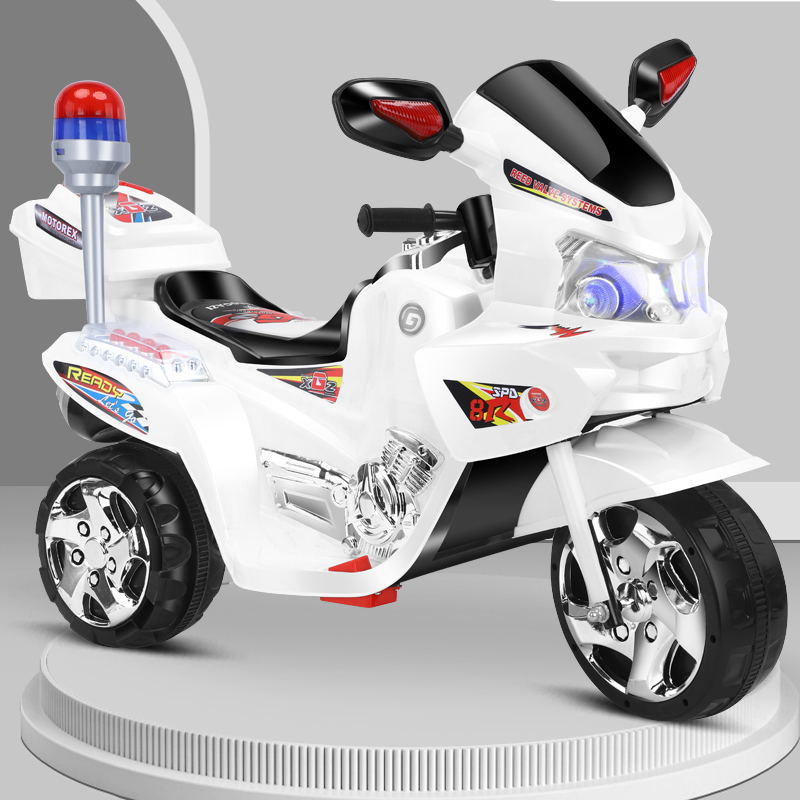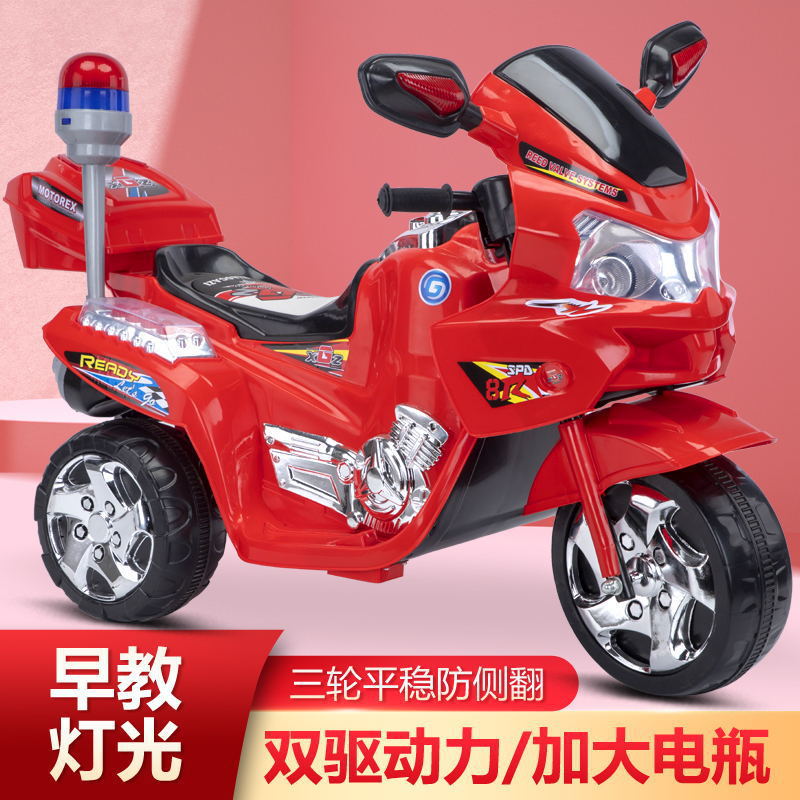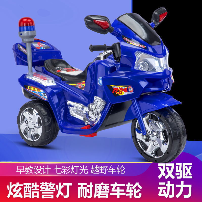 新款儿童电动摩托车三轮车大号警车男女童车宝宝可坐玩具车电瓶车