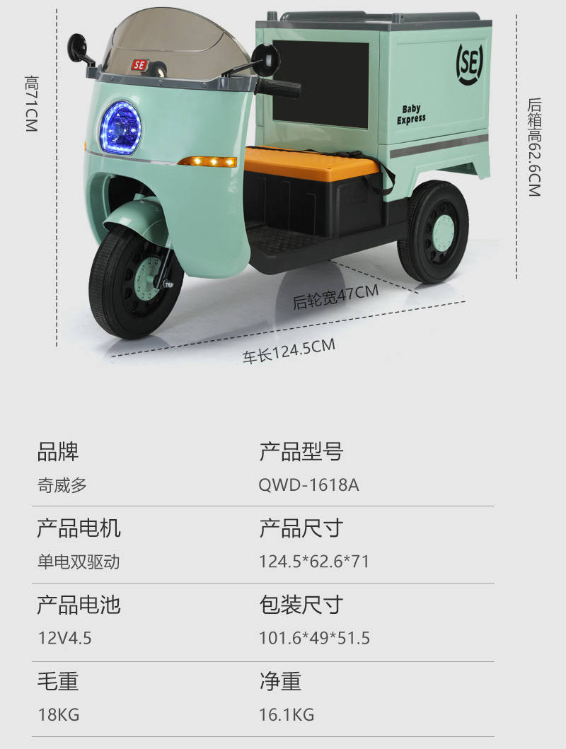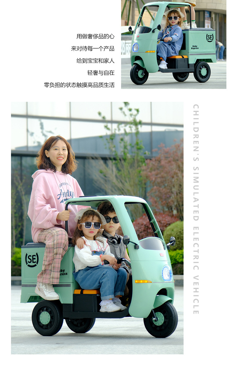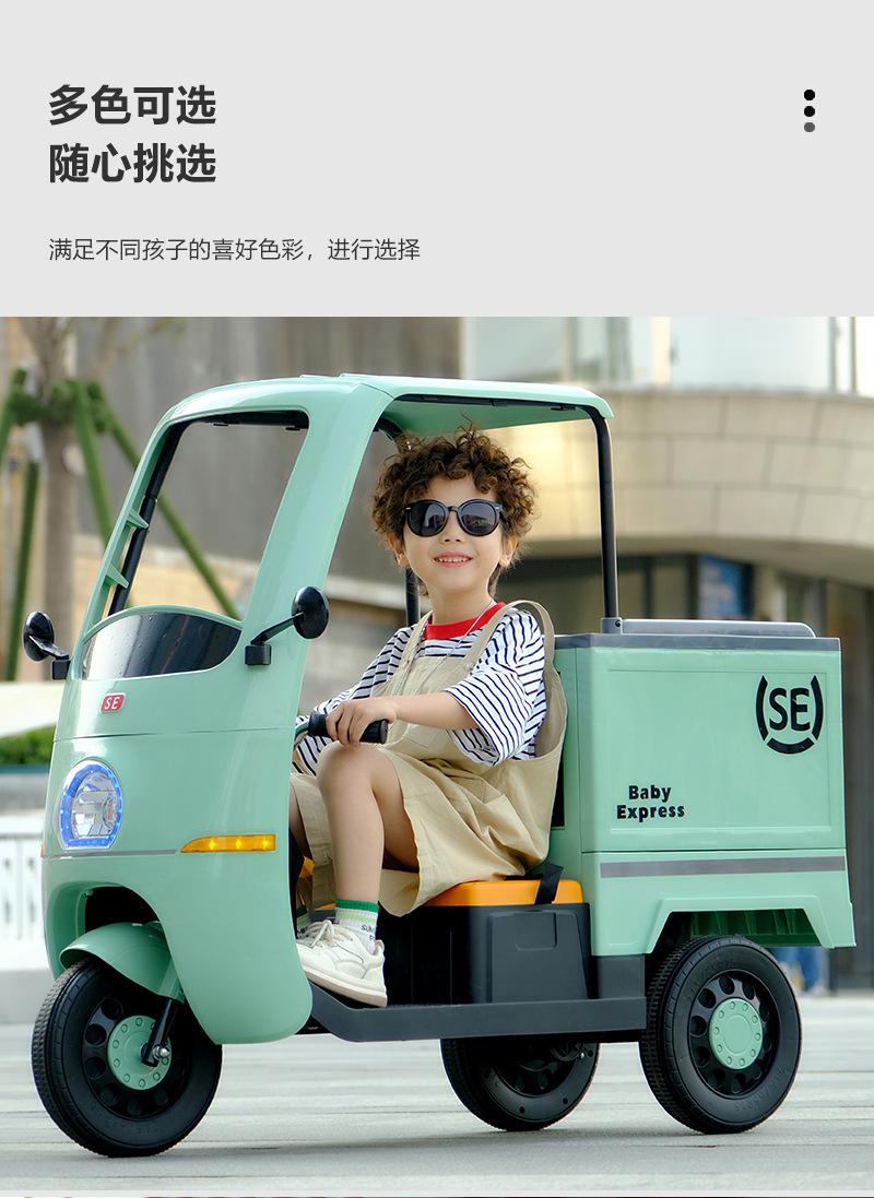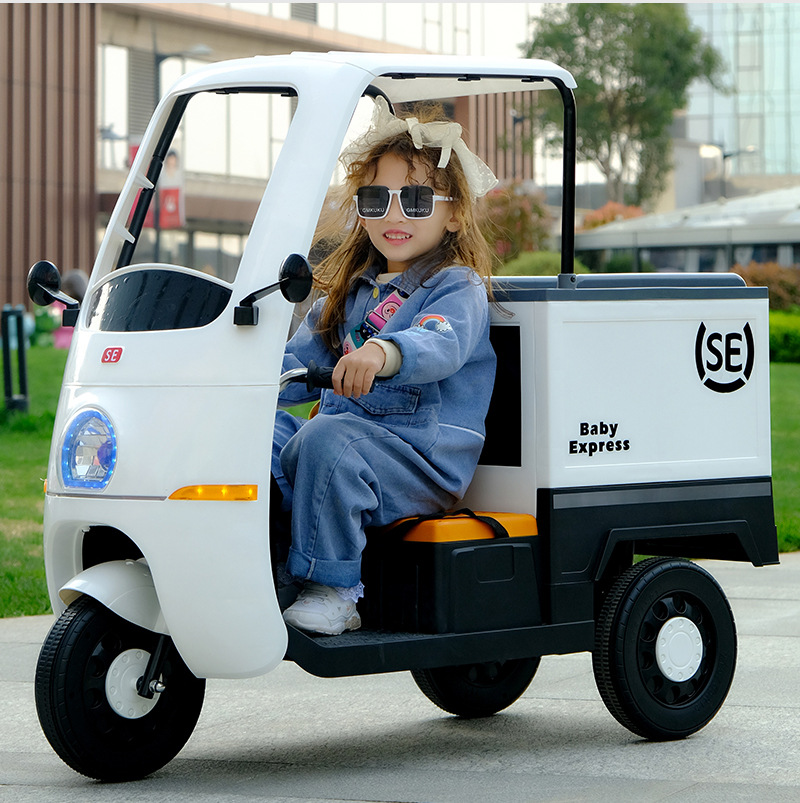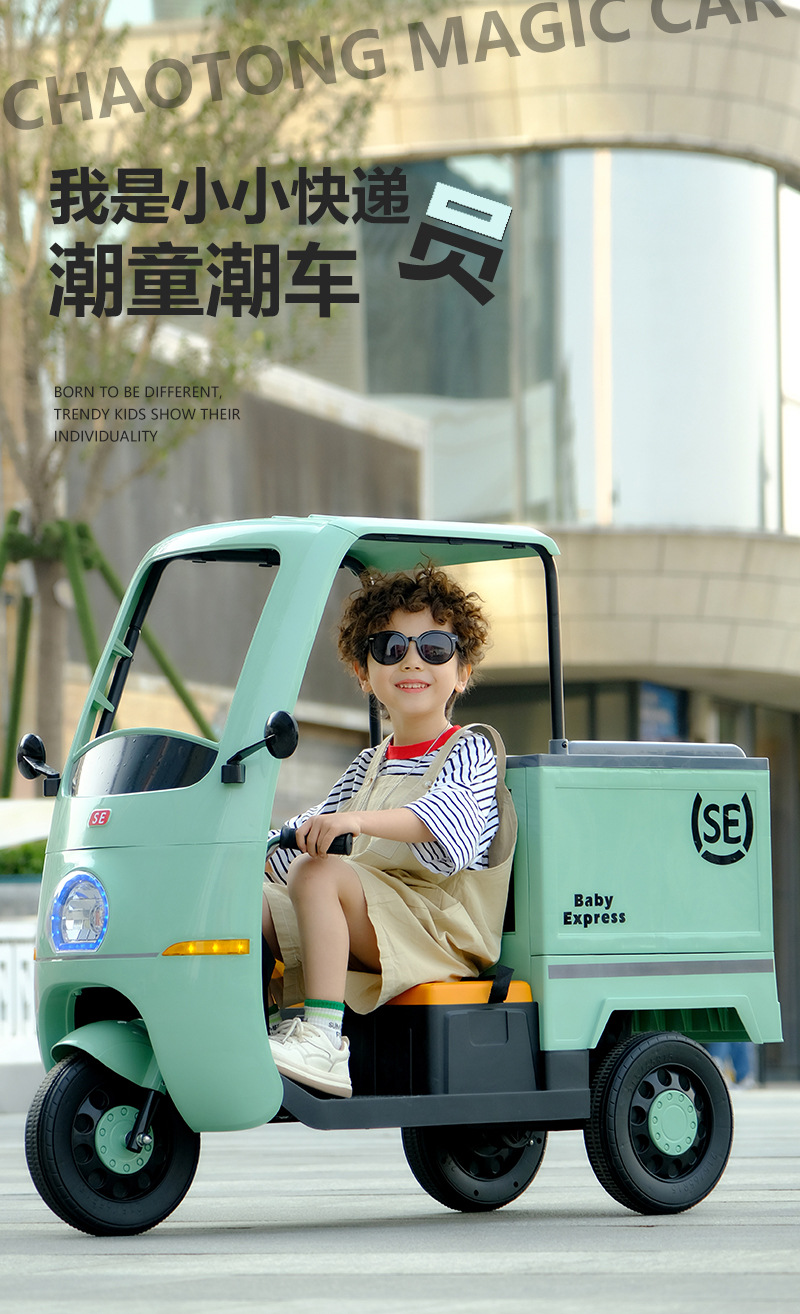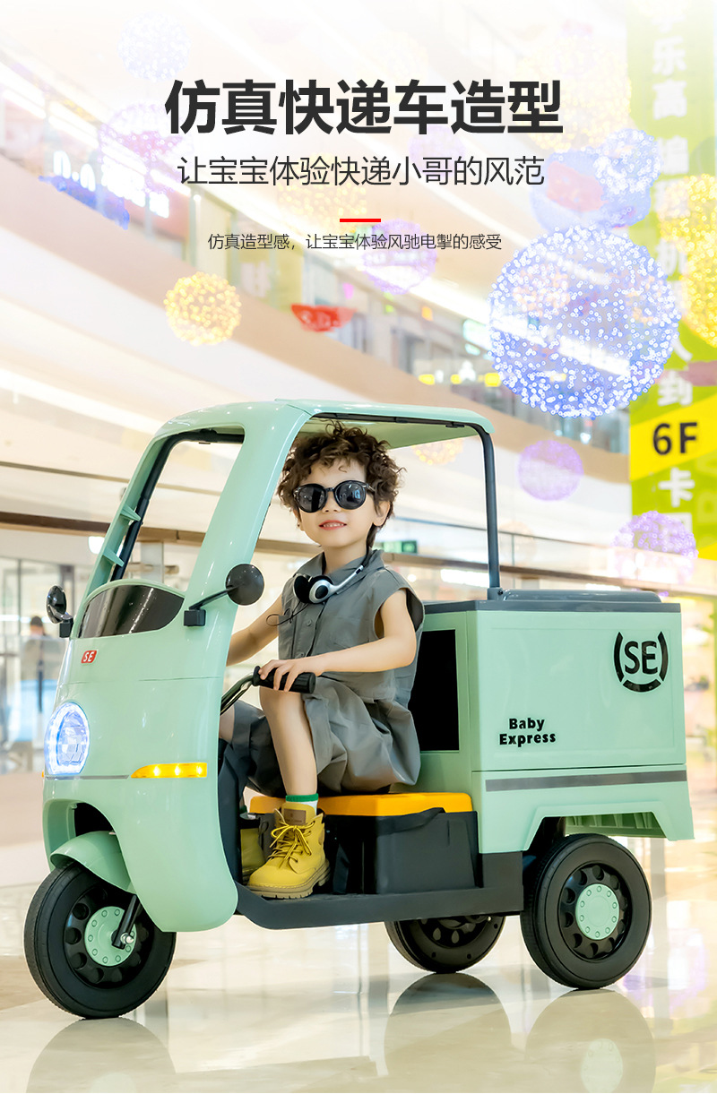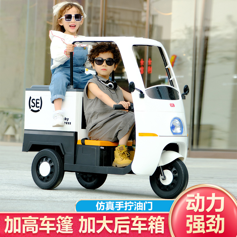 儿童电动三轮摩托车男女宝宝快递玩具小车带顶配汽车电动车仿真快