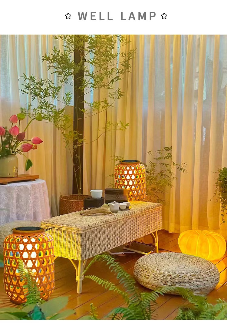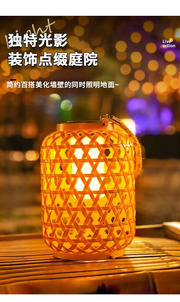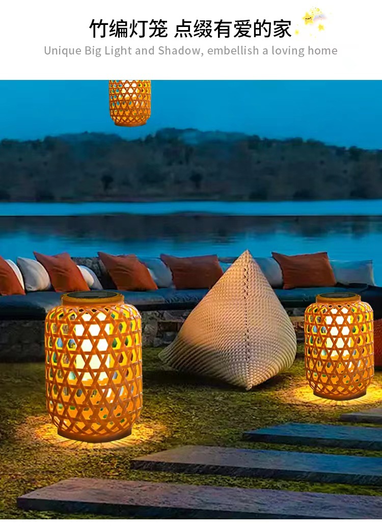 外贸专供户外仿竹编太阳能灯笼造景布置花园吊挂手提灯新年灯