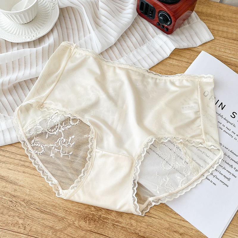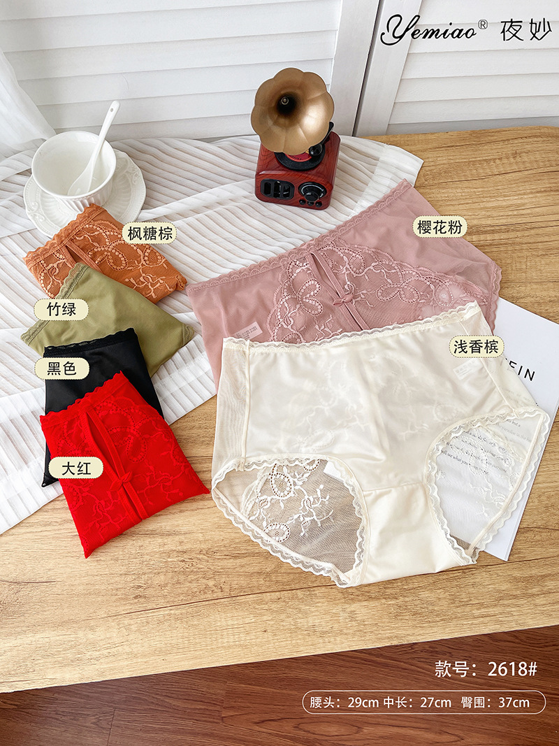 冰丝蕾丝纯色性感透明包臀透气中腰无痕女士内裤本命年内裤女纯欲