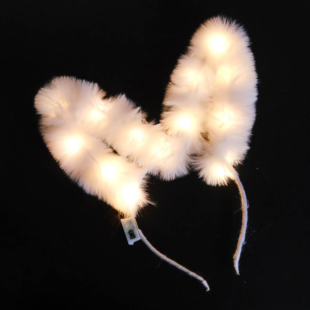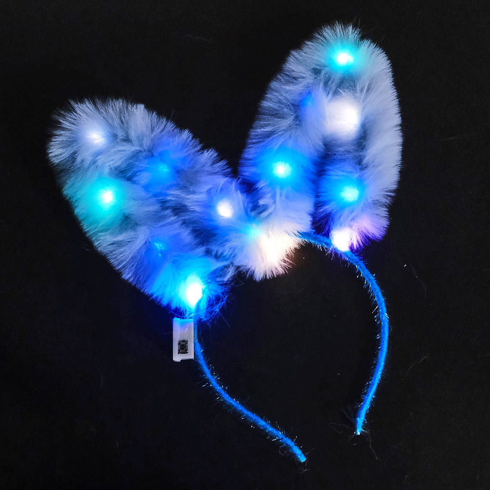 新款加长水貂绒兔耳朵发箍毛绒头箍闪光头饰羽毛发光发卡地摊玩具
