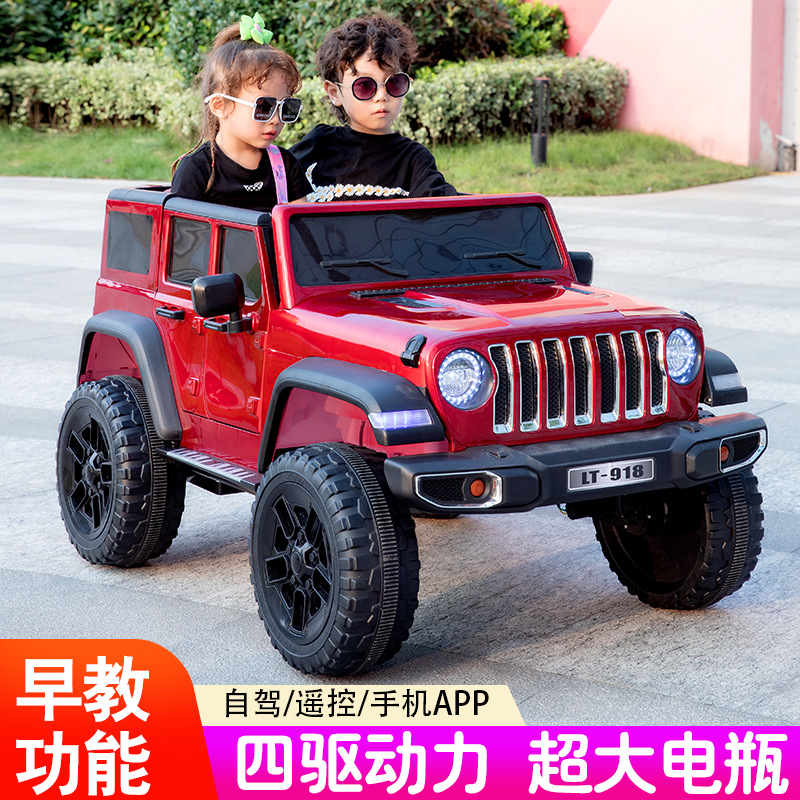 儿童电动车小孩双人四驱四轮越野车小孩宝宝可坐大人遥控玩具童车