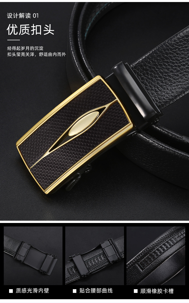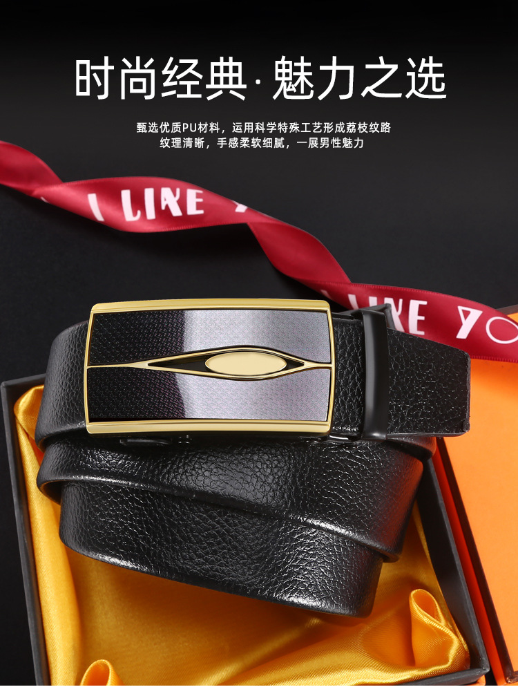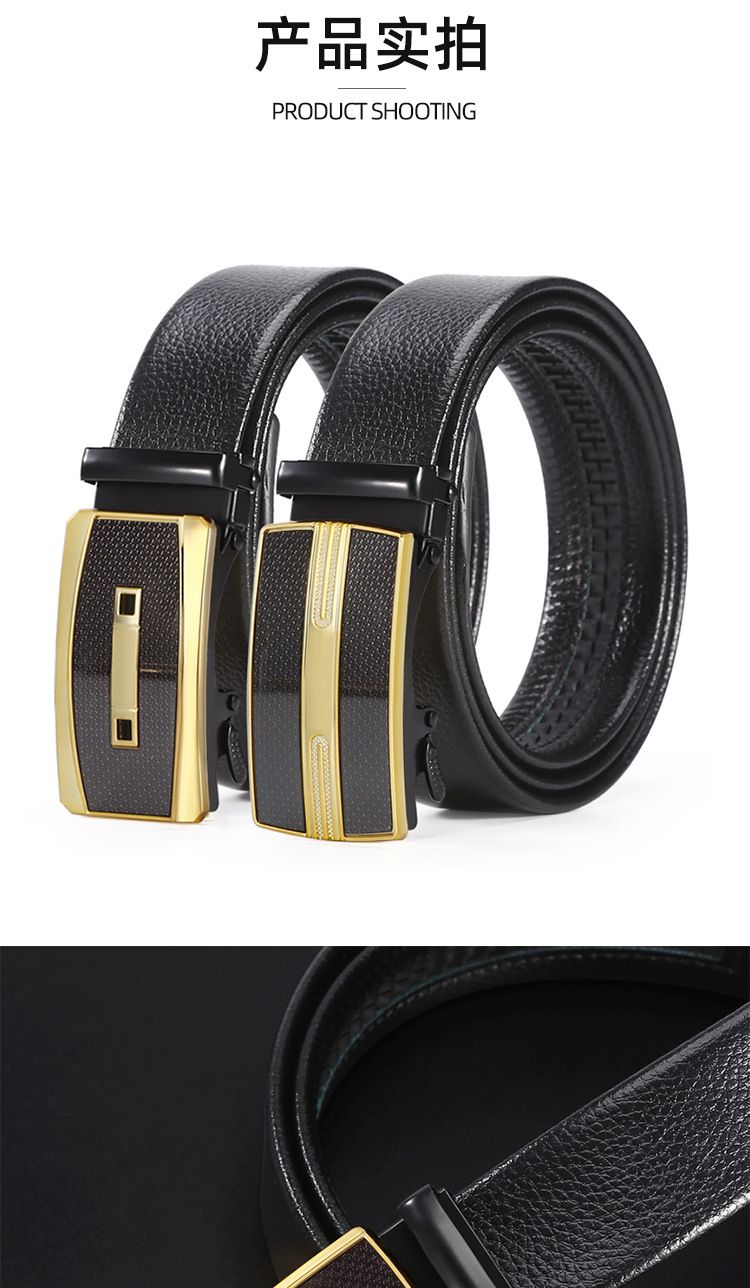 男士自动扣铁扣包边荔枝纹皮带男式商务百搭款牛仔裤腰带现货批发