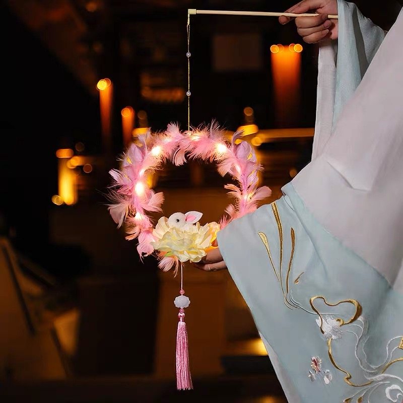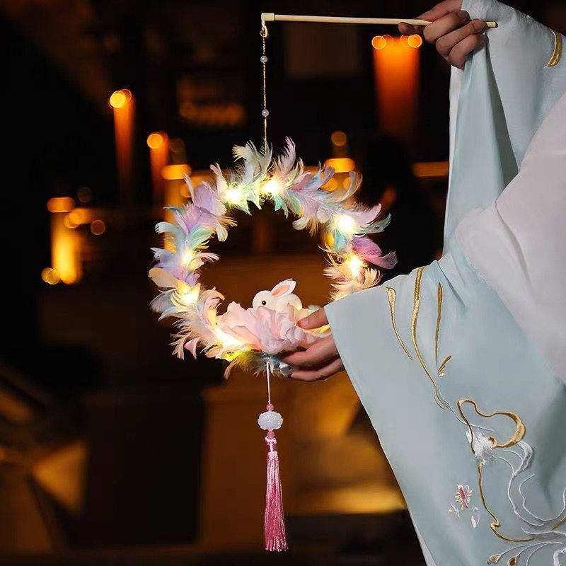 儿童手提发光玉兔灯笼古风手工兔子灯发箍发卡中秋节花灯幼儿园