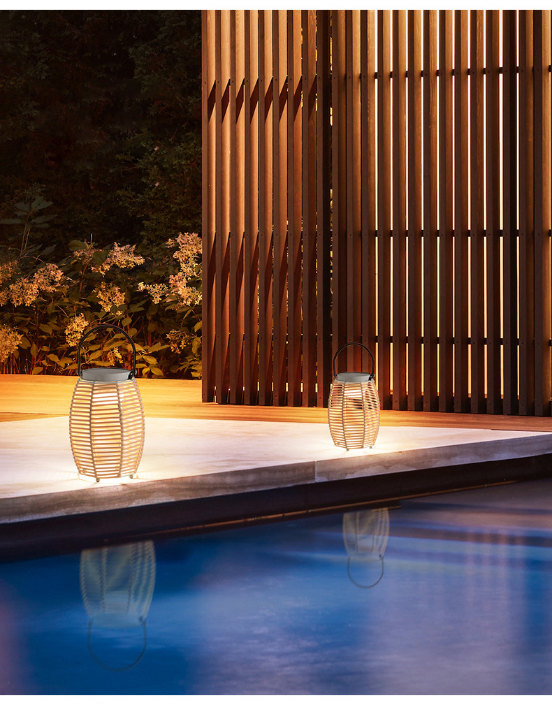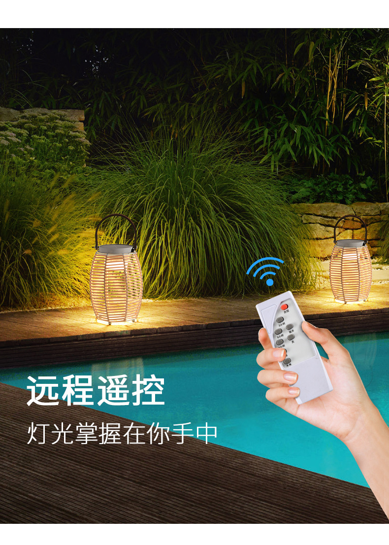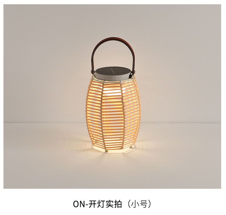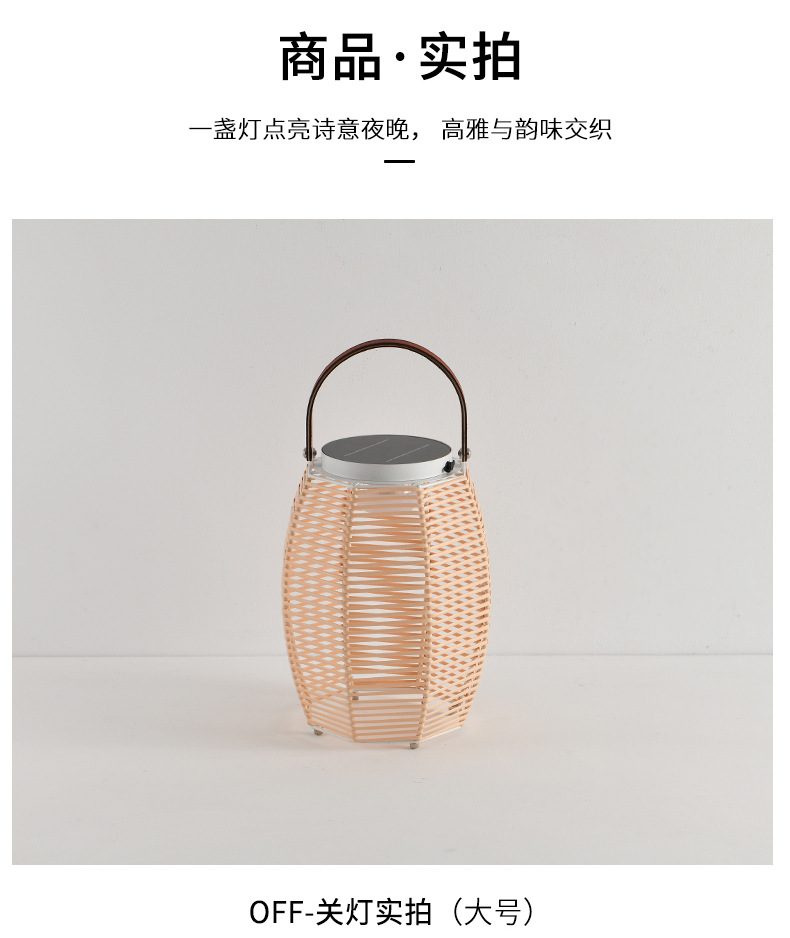 外贸专供户外太阳能+充电两用款不锈钢藤编手提手提灯笼别墅