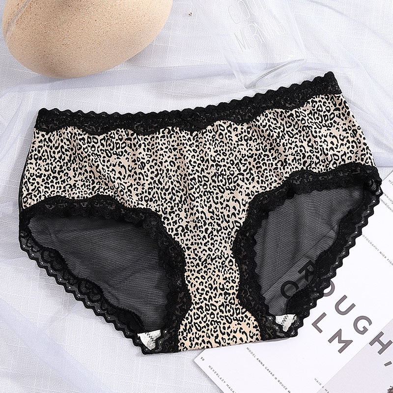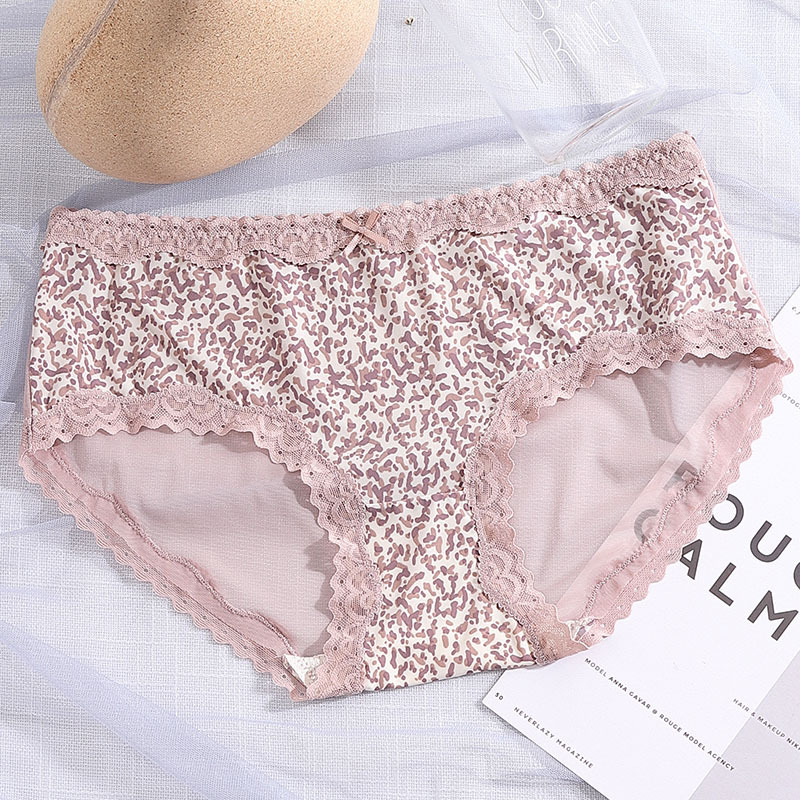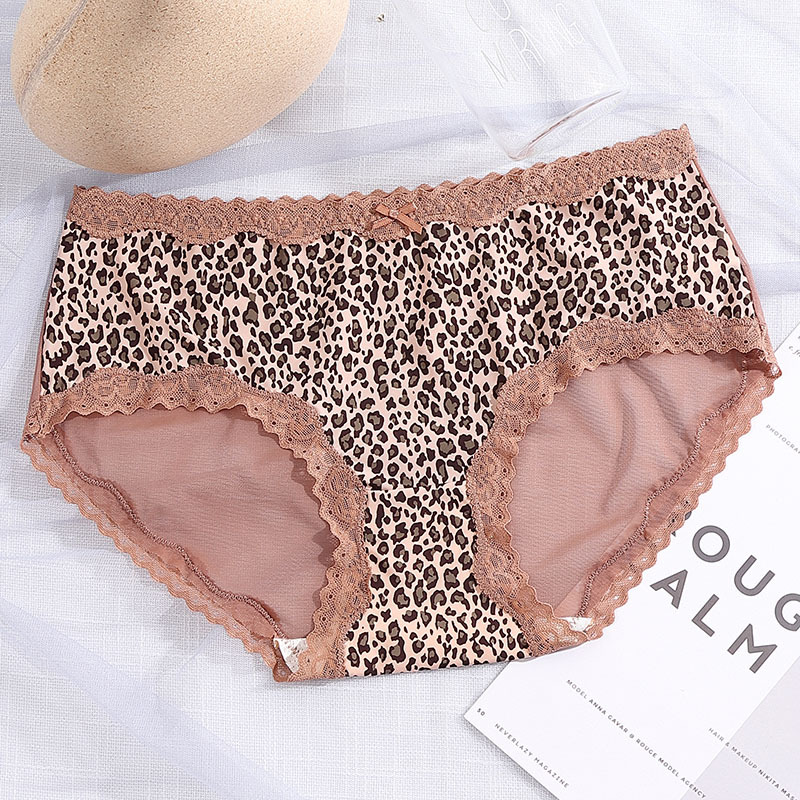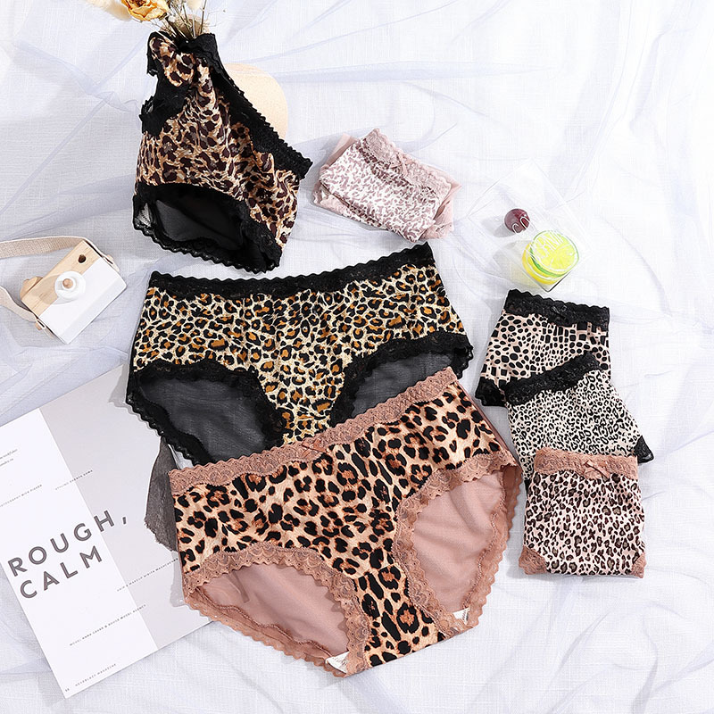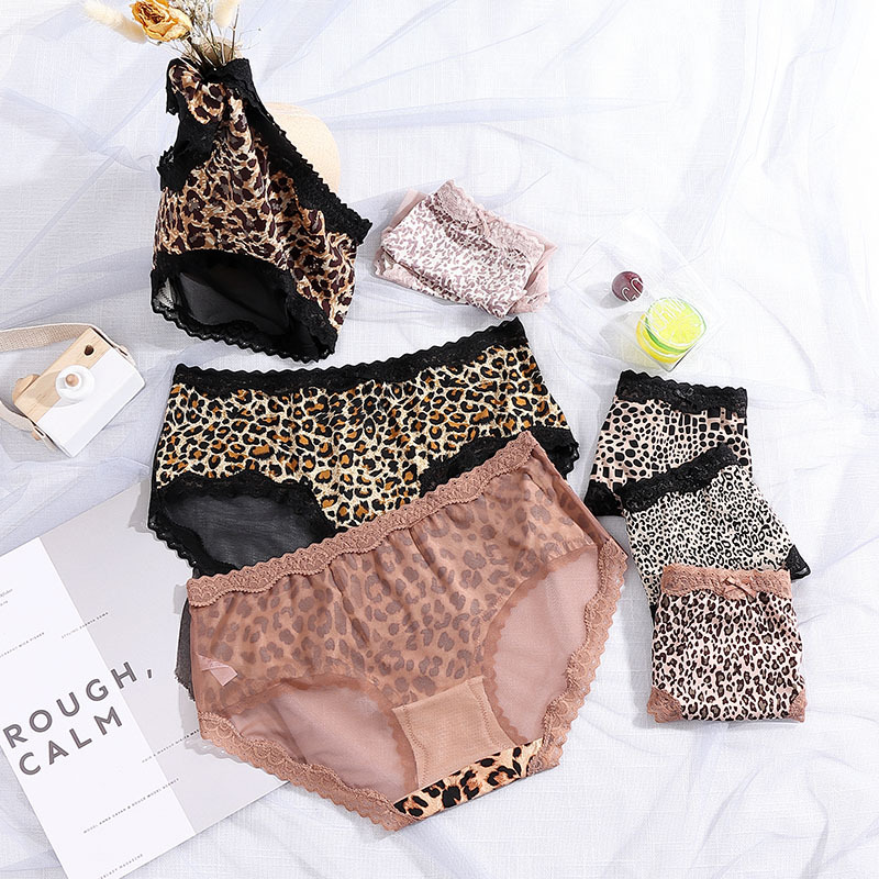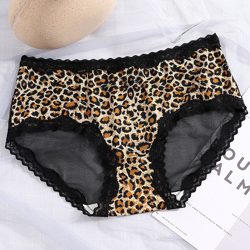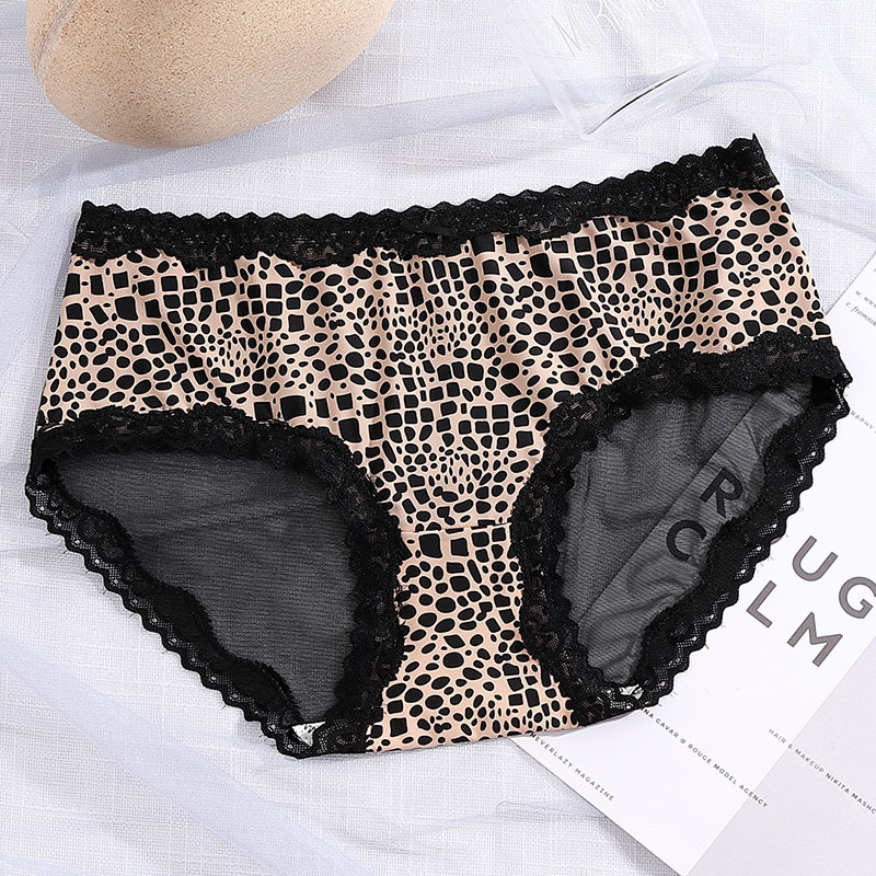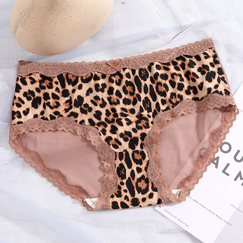 豹纹冰丝内裤女清凉性感透明火辣中腰无痕三角裤头蝴蝶结女生内裤