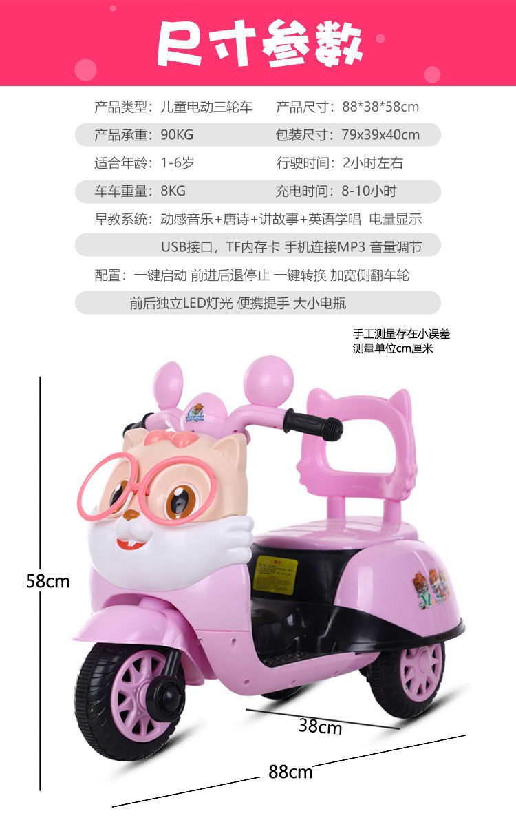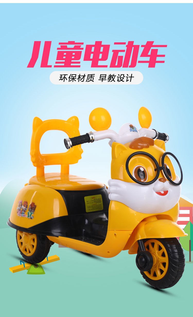 儿童电动摩托车三轮车男女孩宝宝电瓶车小孩可坐人充电电动玩具车