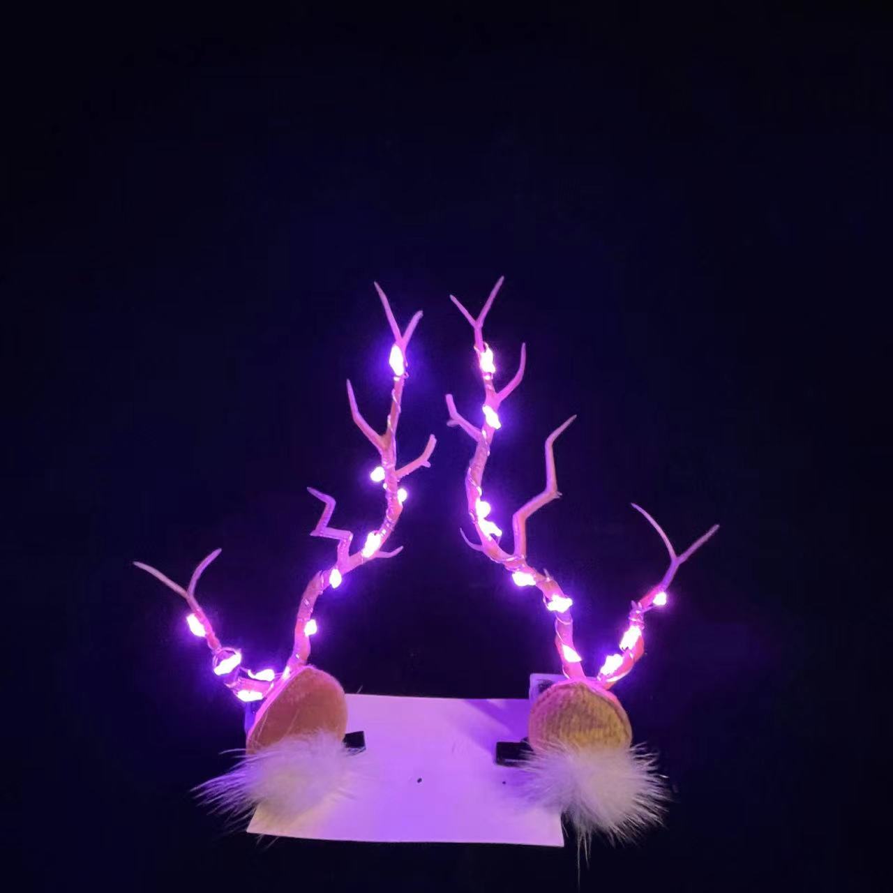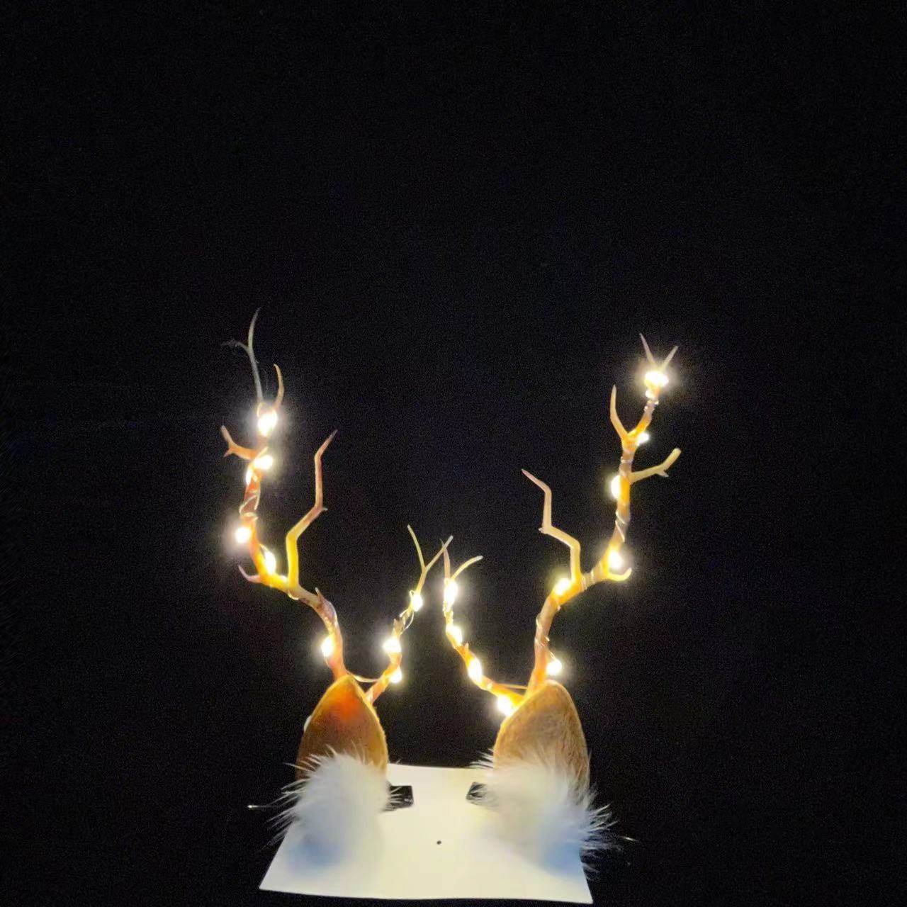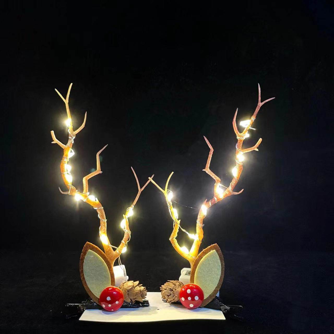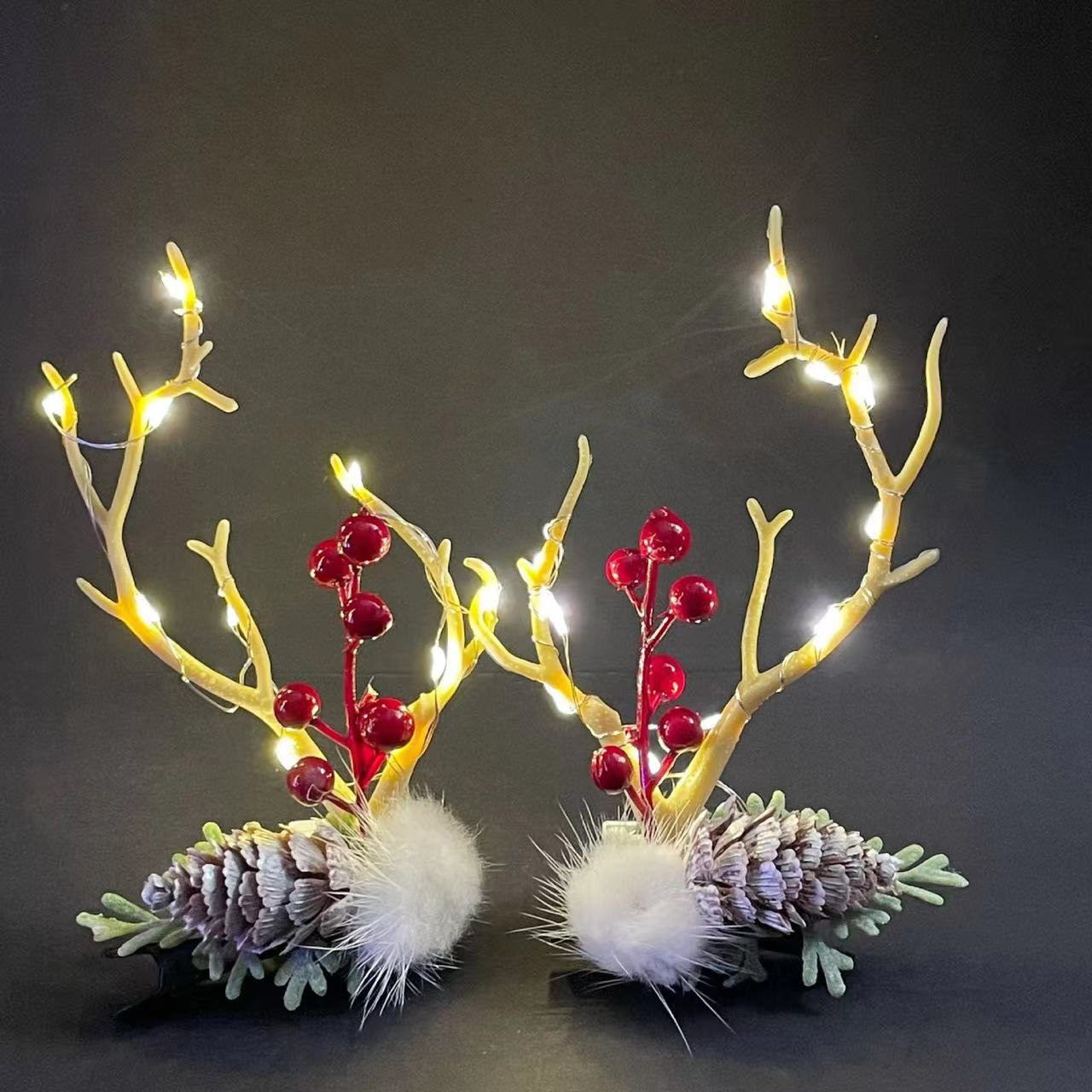 发光圣诞节对夹头饰女鹿角头箍化妆舞会装扮发饰发卡圣诞节小礼物