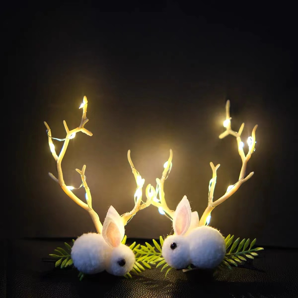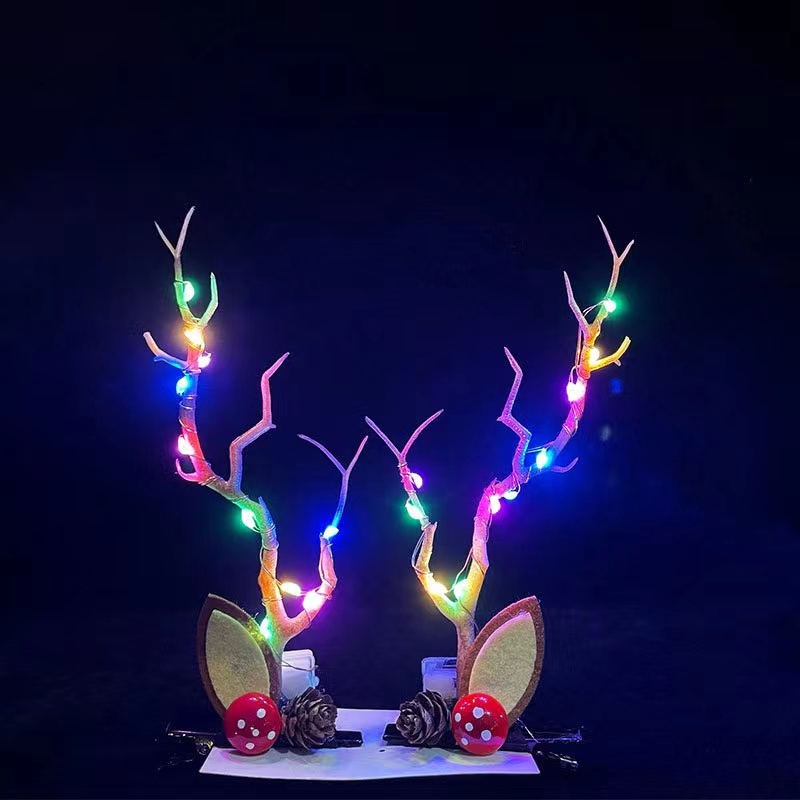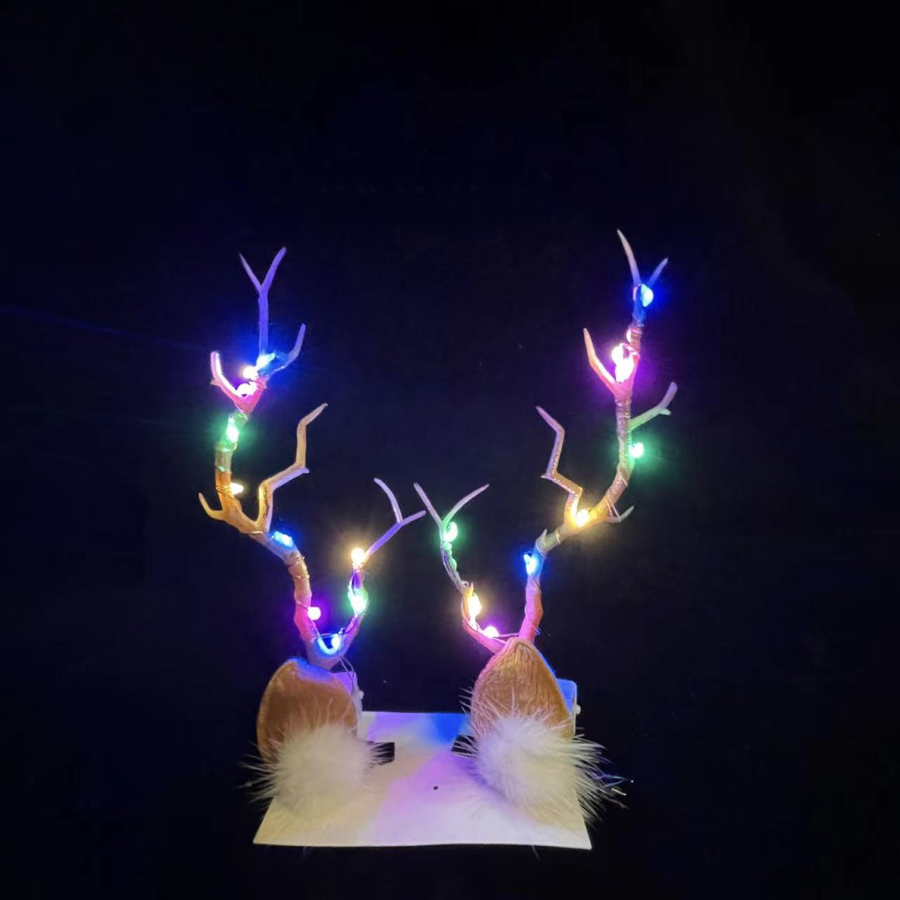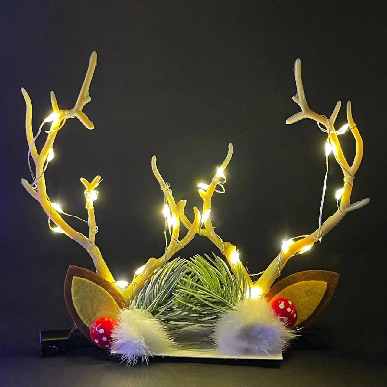 发光圣诞节对夹头饰女鹿角头箍化妆舞会装扮发饰发卡圣诞节小礼物