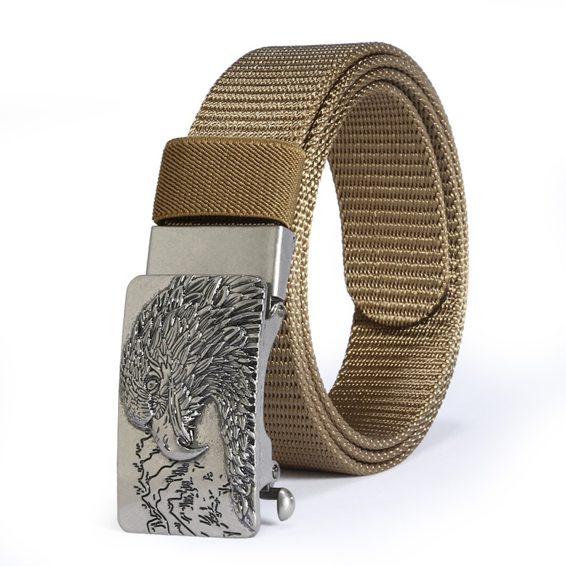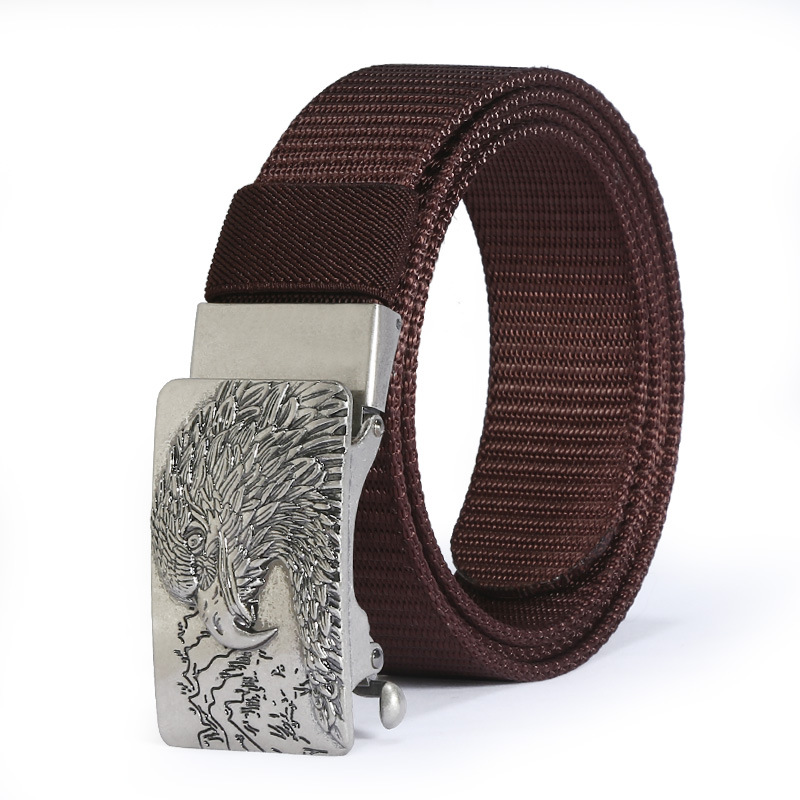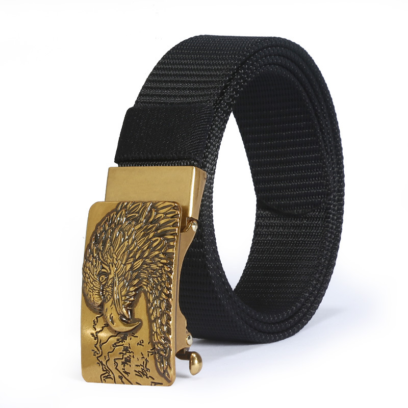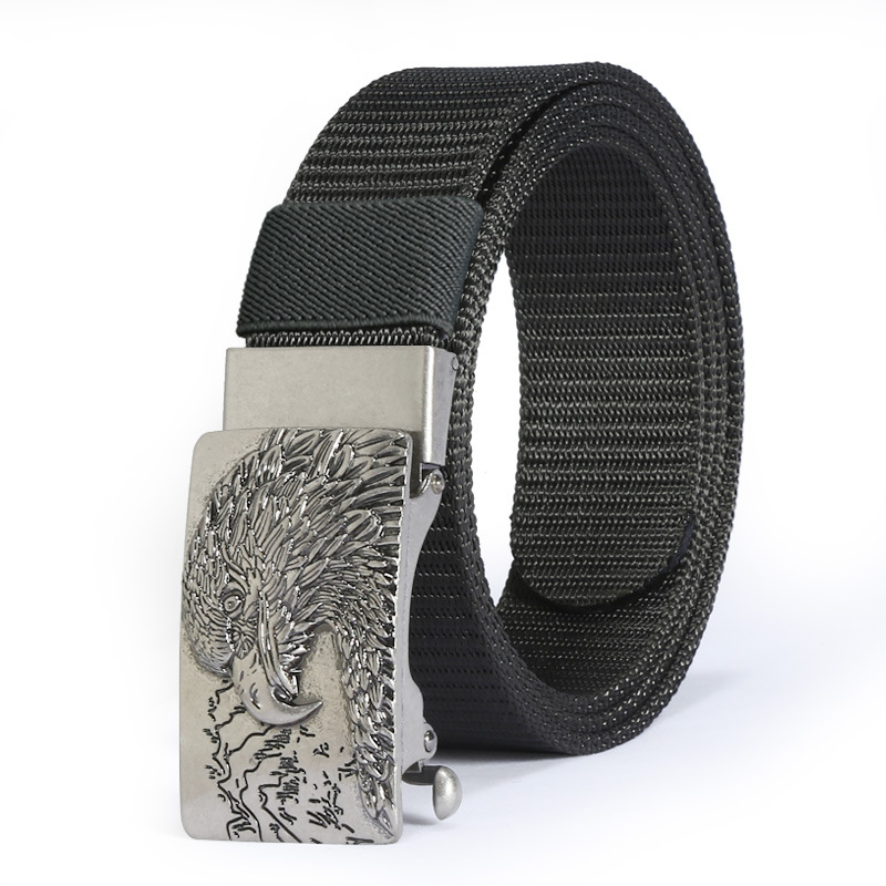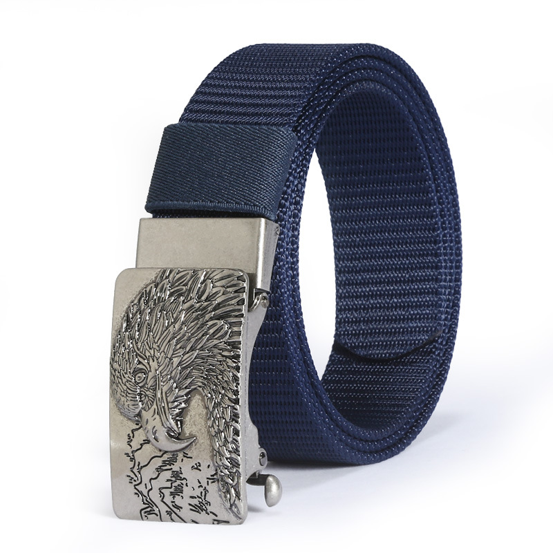 个性休闲皮带雄鹰图腾合金自动扣裤腰带青年男士尼龙腰带现货批发