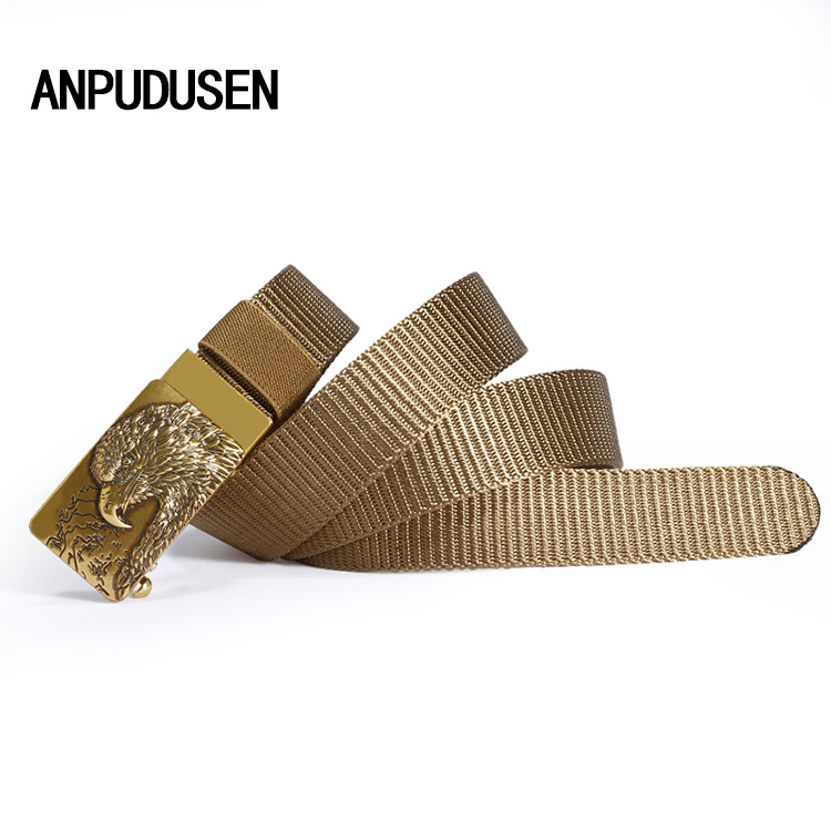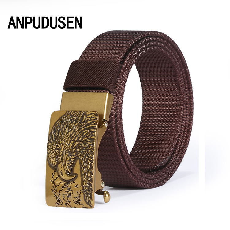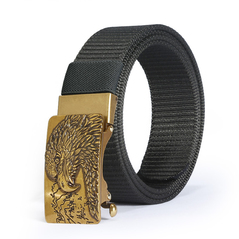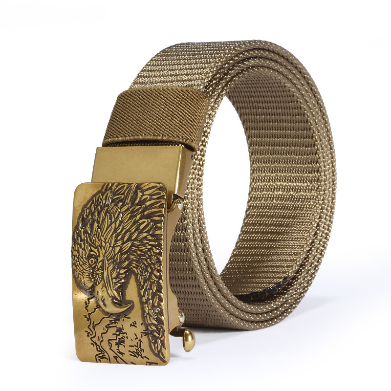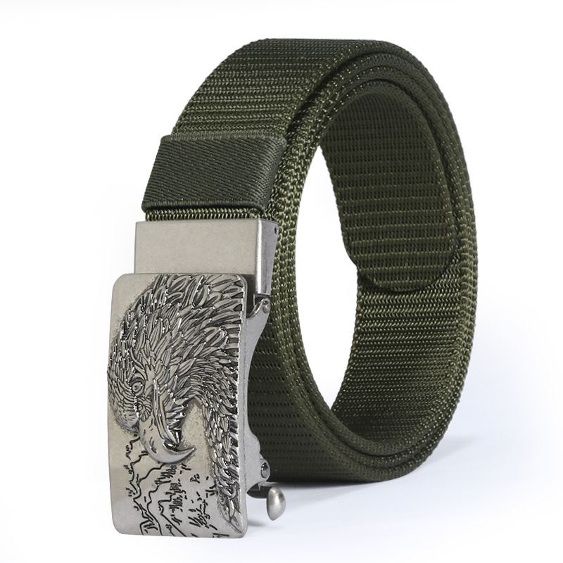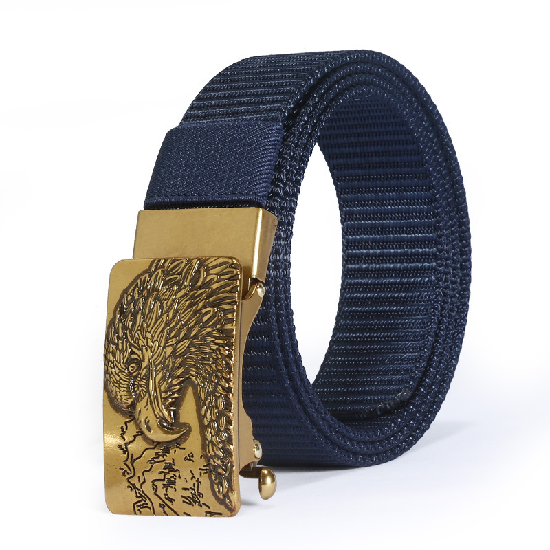 个性休闲皮带雄鹰图腾合金自动扣裤腰带青年男士尼龙腰带现货批发