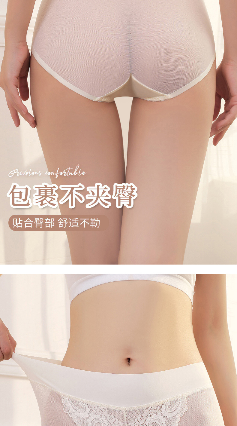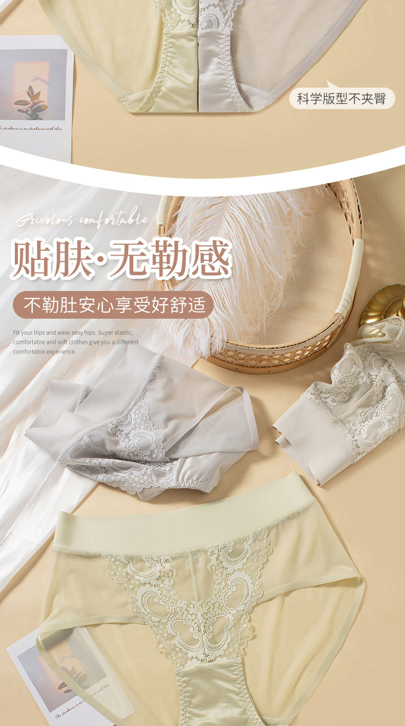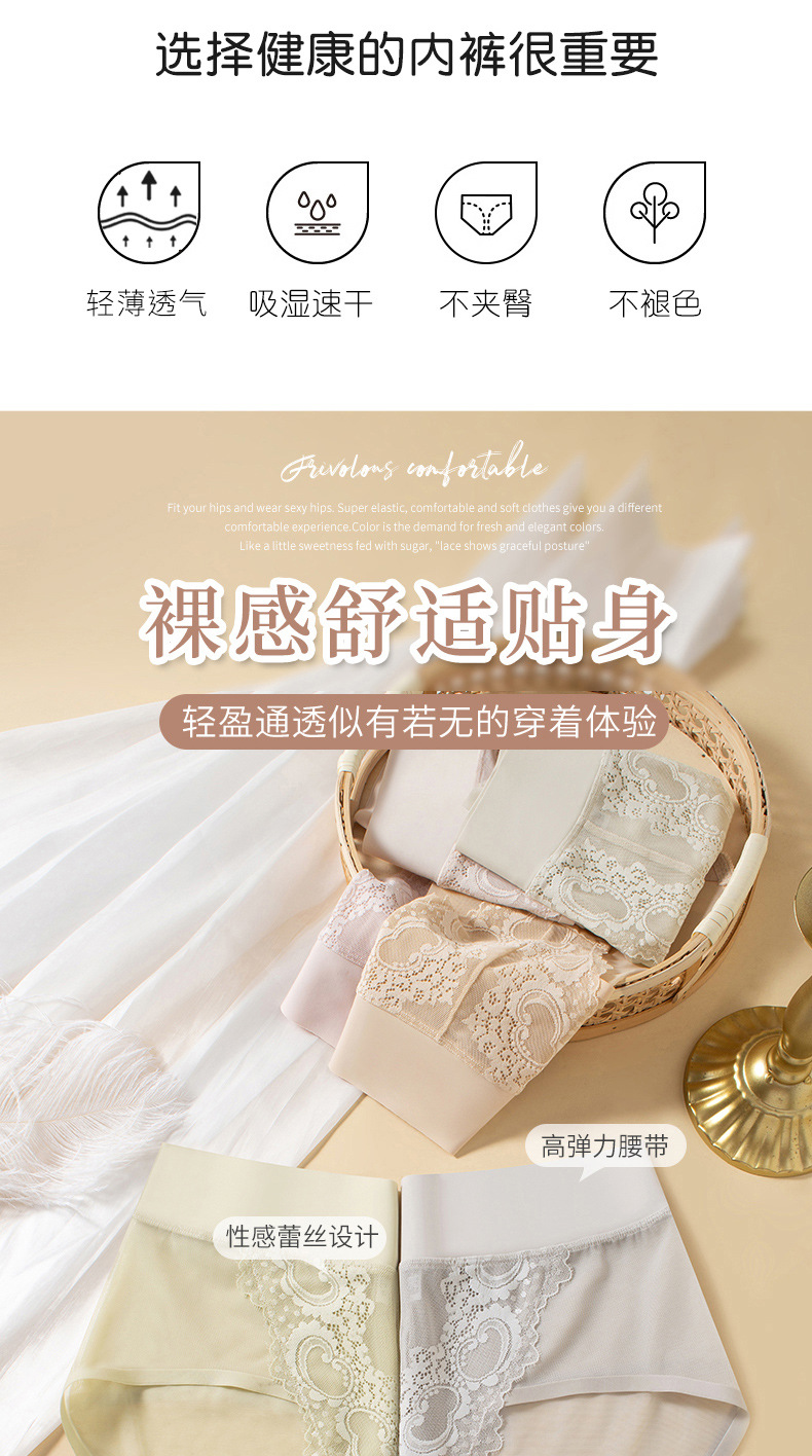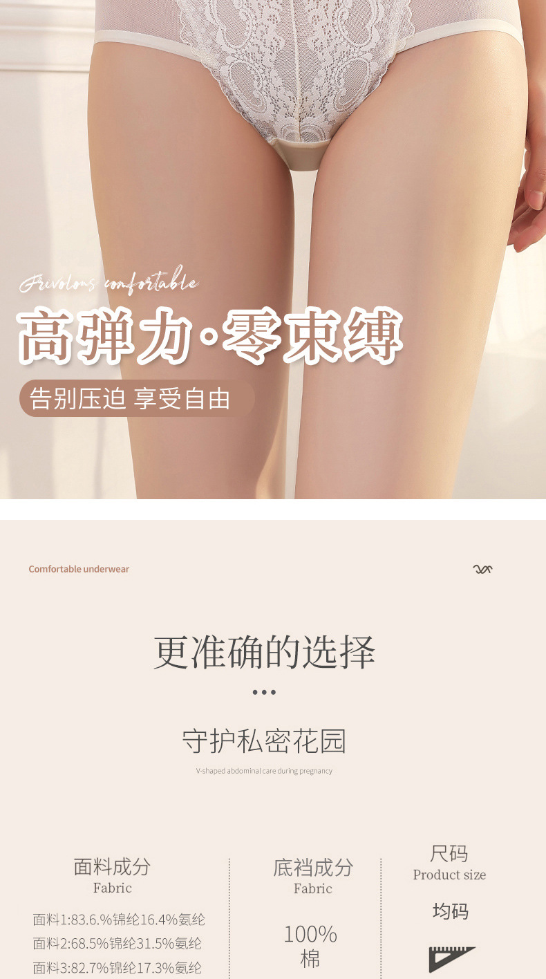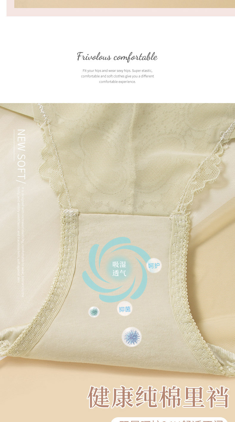 蕾丝内裤女性感高开叉纯欲透气轻薄中腰纯棉裆三角裤女生无痕内裤