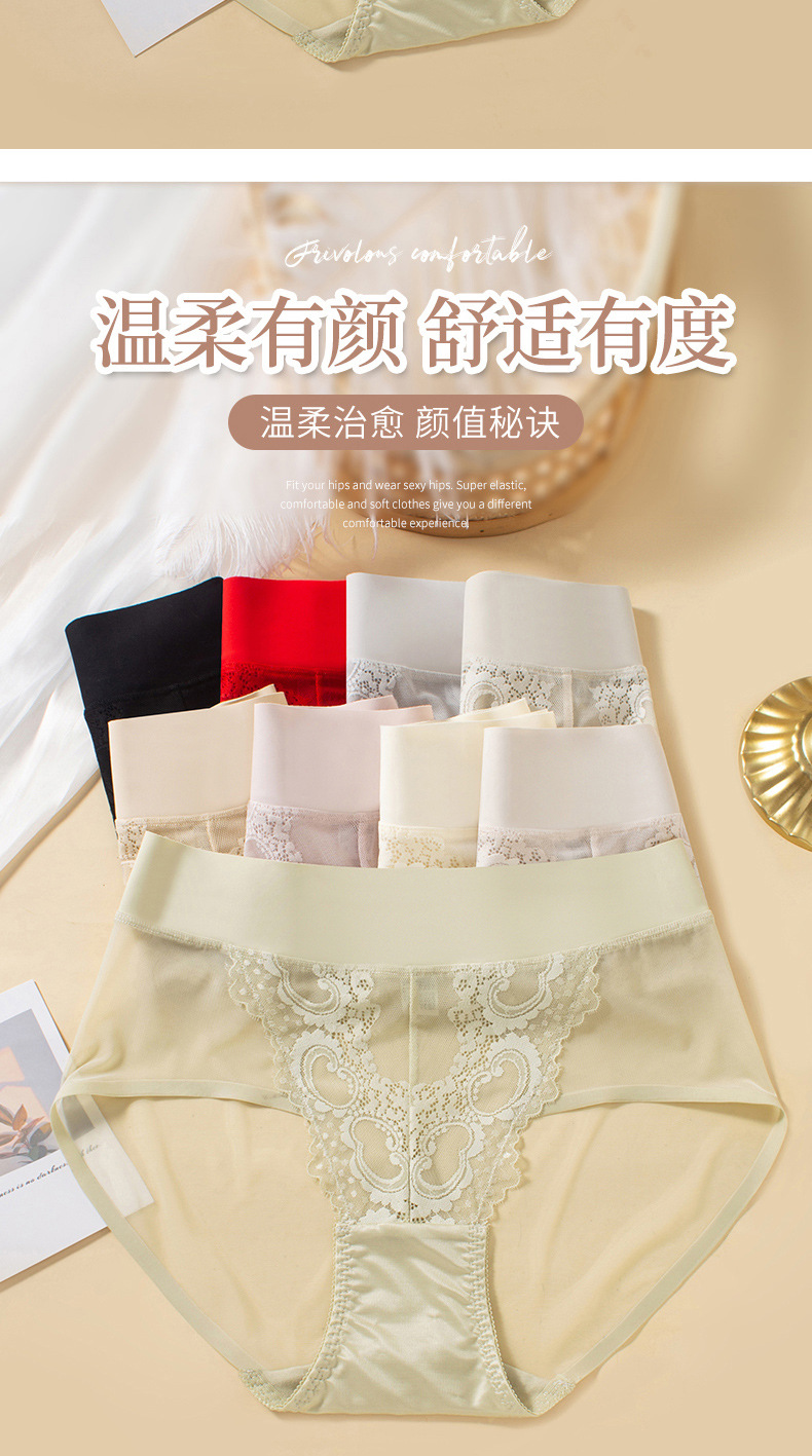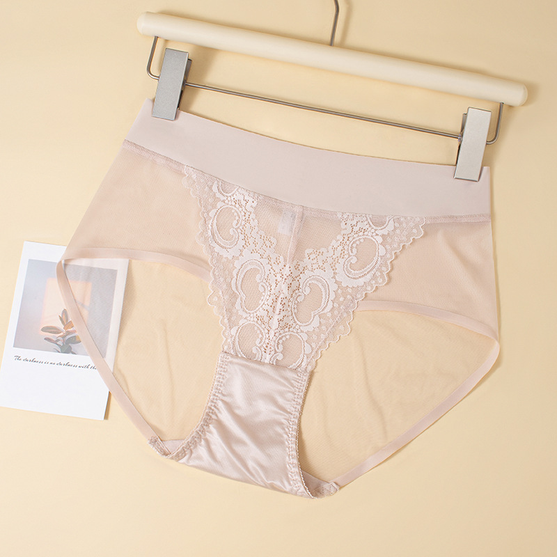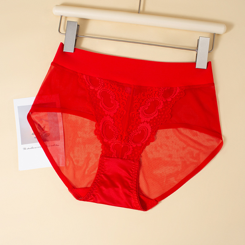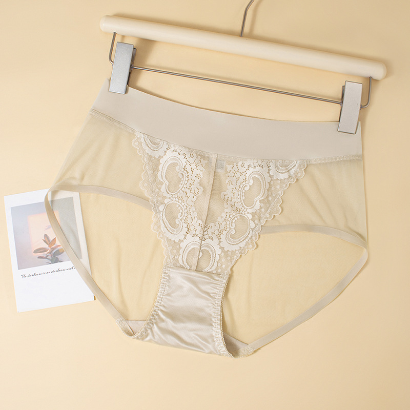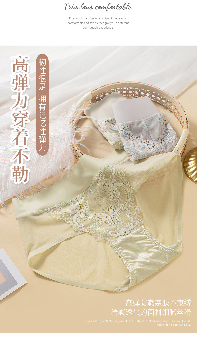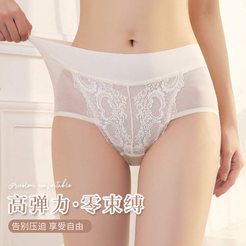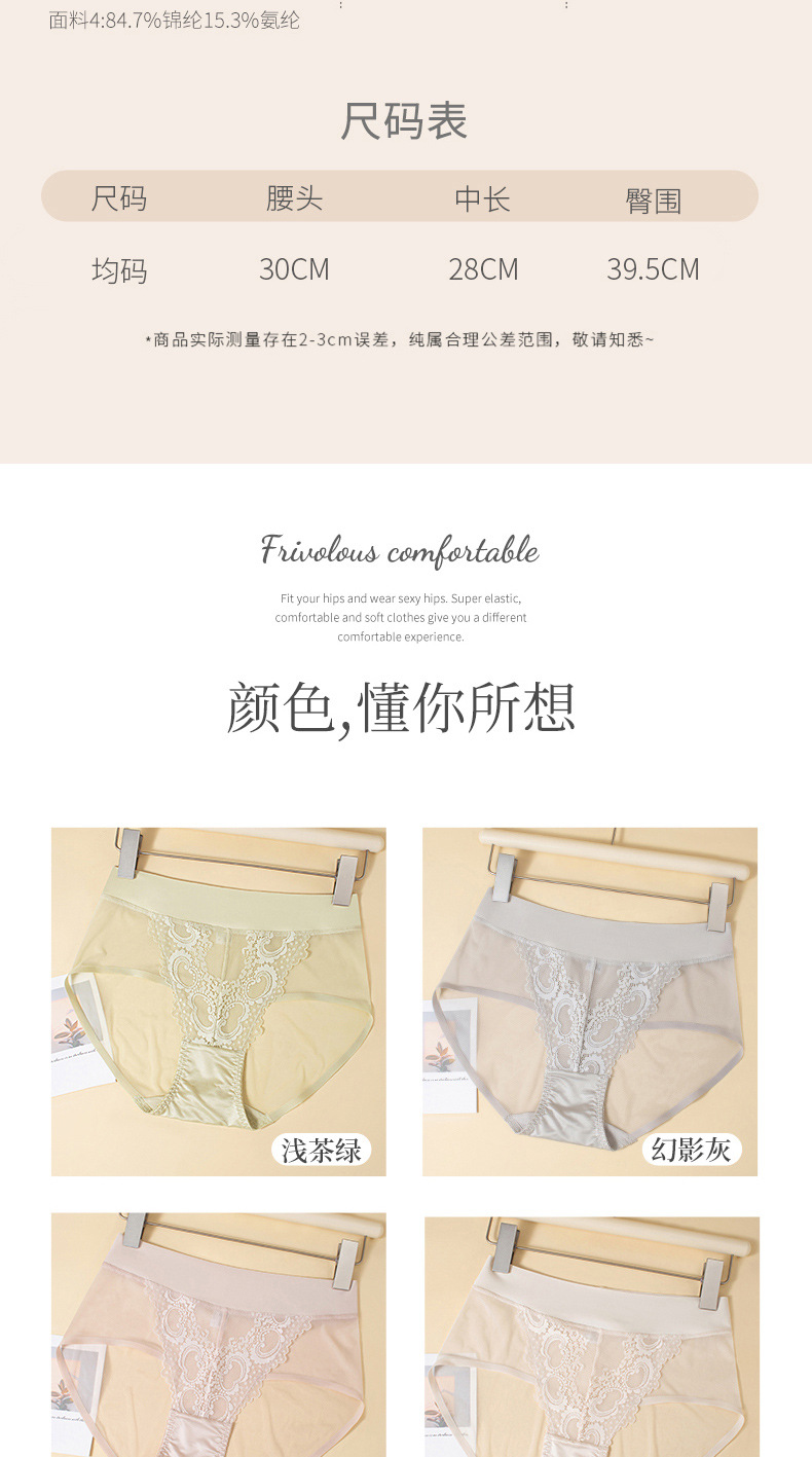 蕾丝内裤女性感高开叉纯欲透气轻薄中腰纯棉裆三角裤女生无痕内裤