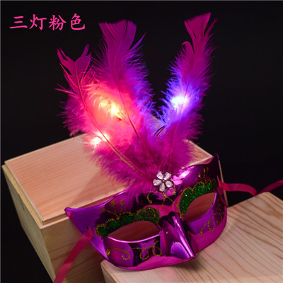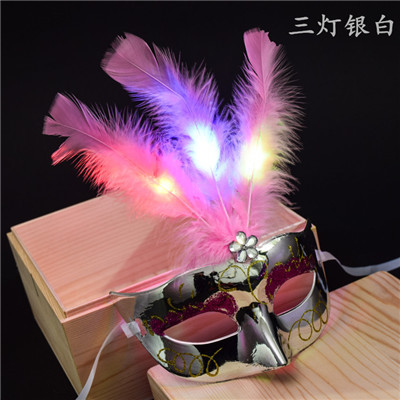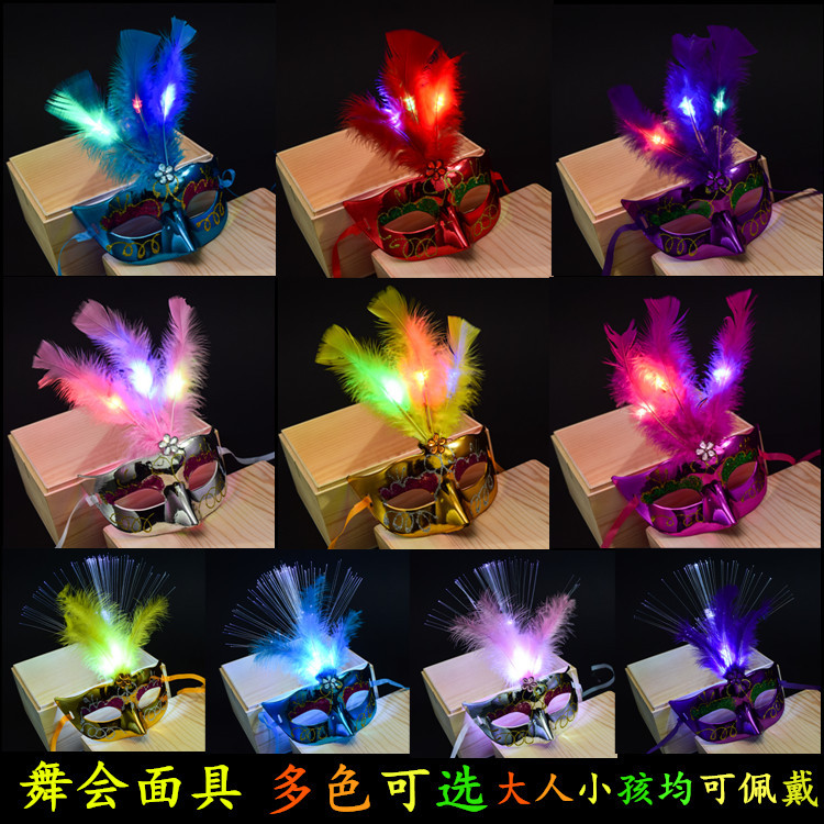 万圣节发光绒毛光纤面具舞会led羽毛面具热销儿童玩具批发