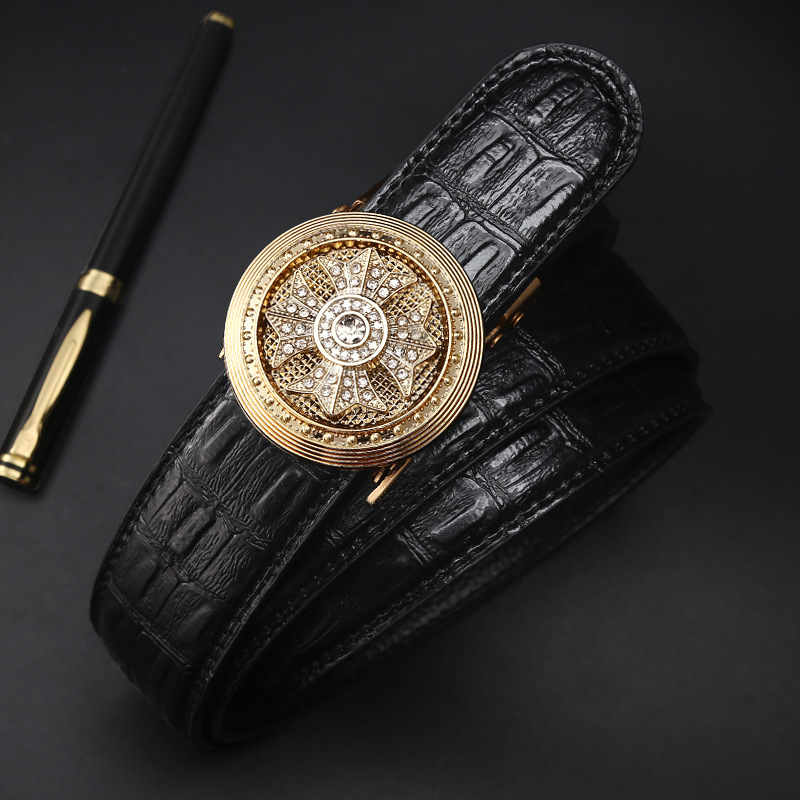 皮带男潮瓜子纹商务休闲百搭韩版休闲青年自动扣时来运转牛皮腰带