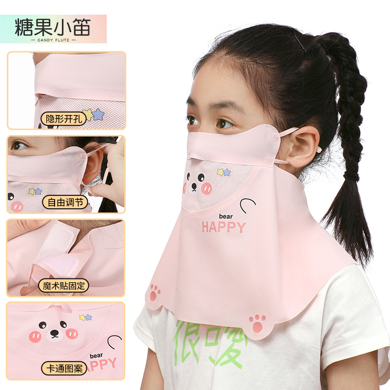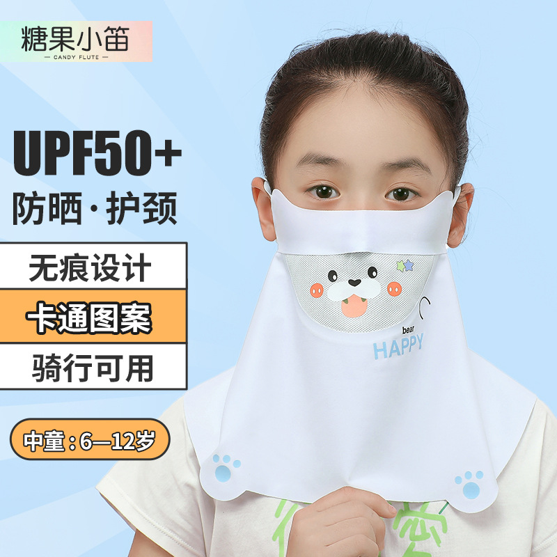 儿童防晒面罩全脸防紫外线卡通印花防尘护颈无痕口罩护眼角口罩