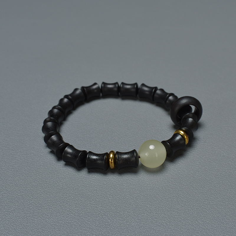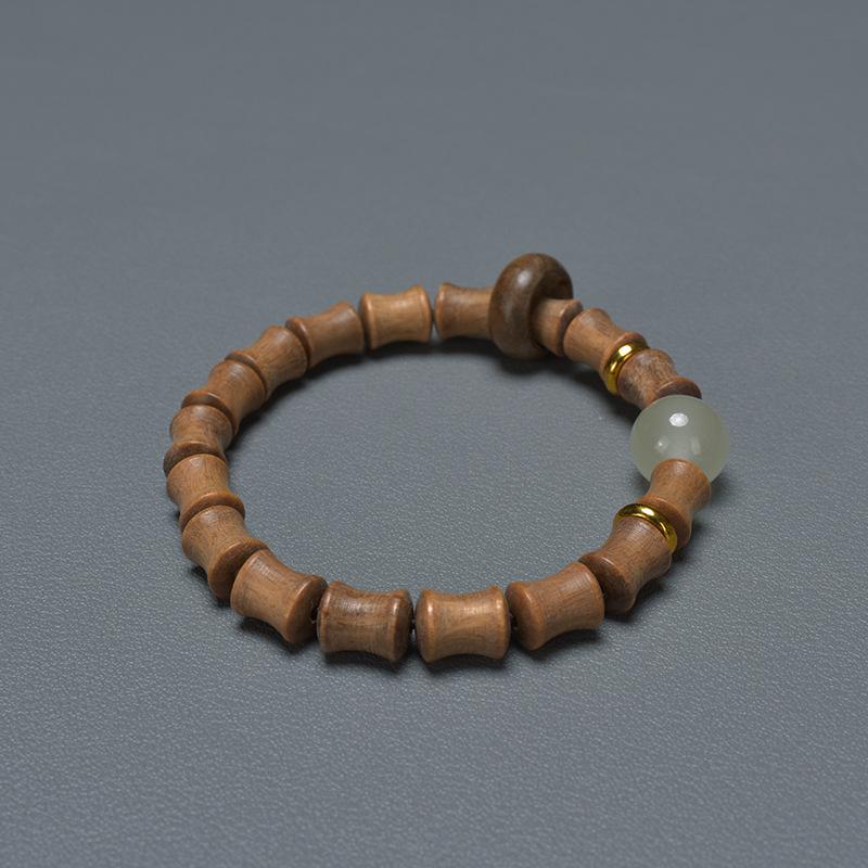diy绿檀香木竹节节高升月光石手串跑环款手串男女士手链文玩佛珠