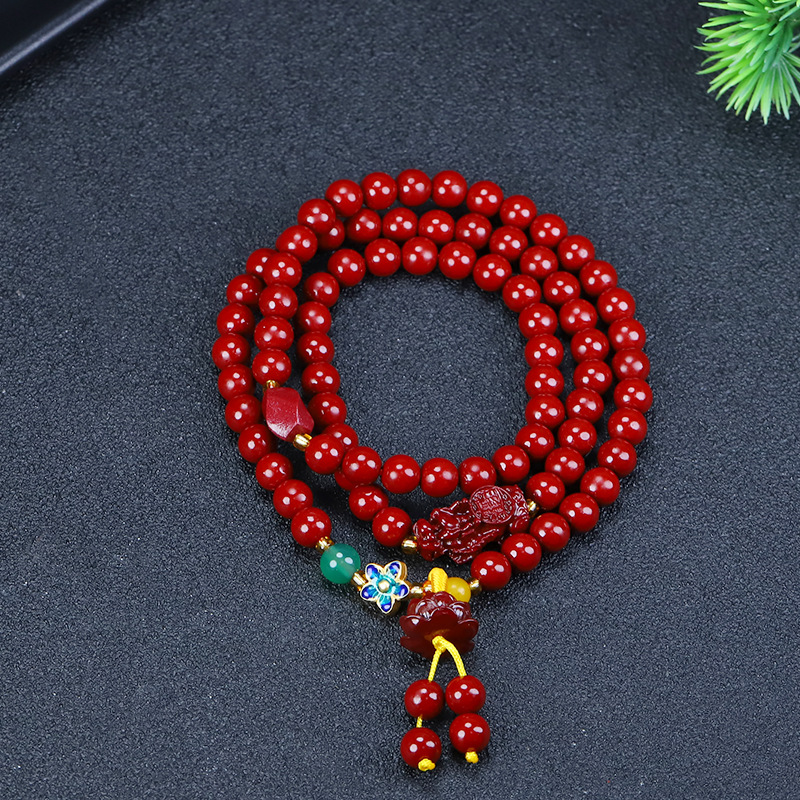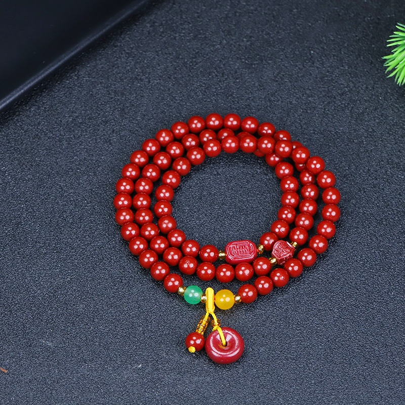 天然朱砂手串手工多圈高含量紫金砂平安扣手链女孩佛珠手串批发
